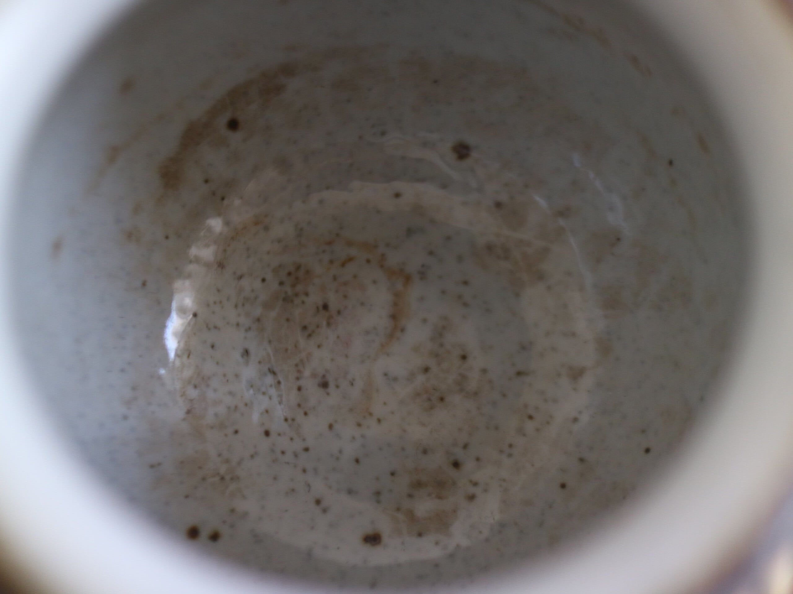 写真13-14枚目 縁に製造時に出来たピンホールがございます。これは素焼きの段階で器に含まれた空気が焼成時に釉薬の表面で気泡となって現れるものです。ヒビや欠けのような大きなダメージはなく、とても良いヴィンテージコンディションを保っています。