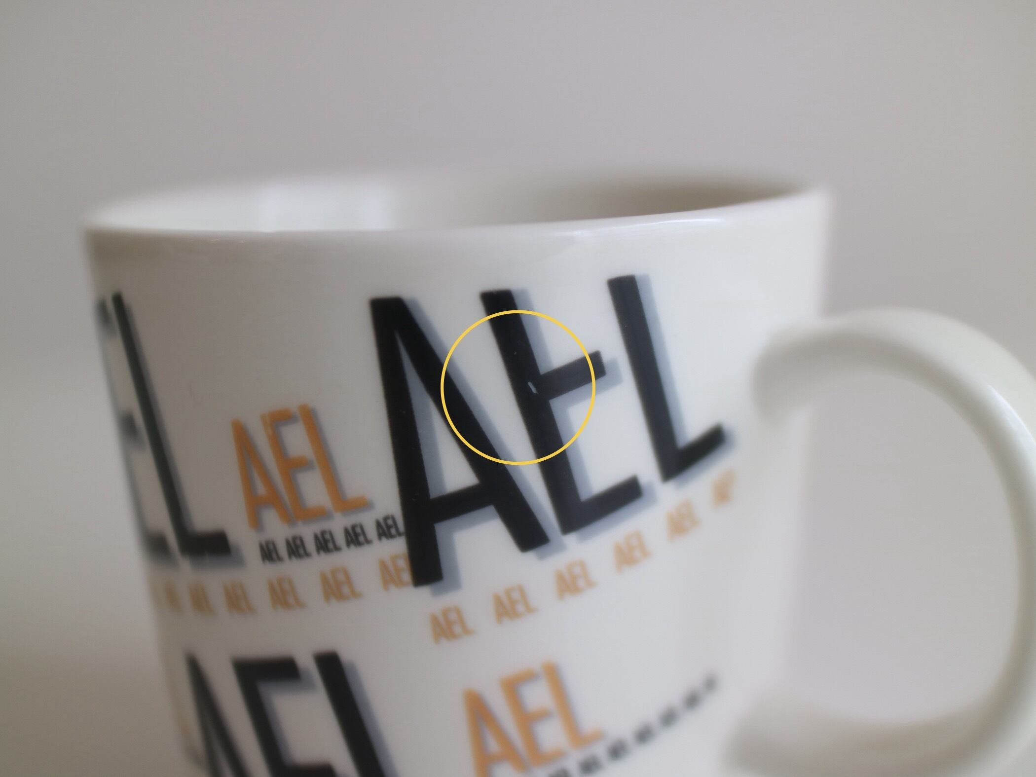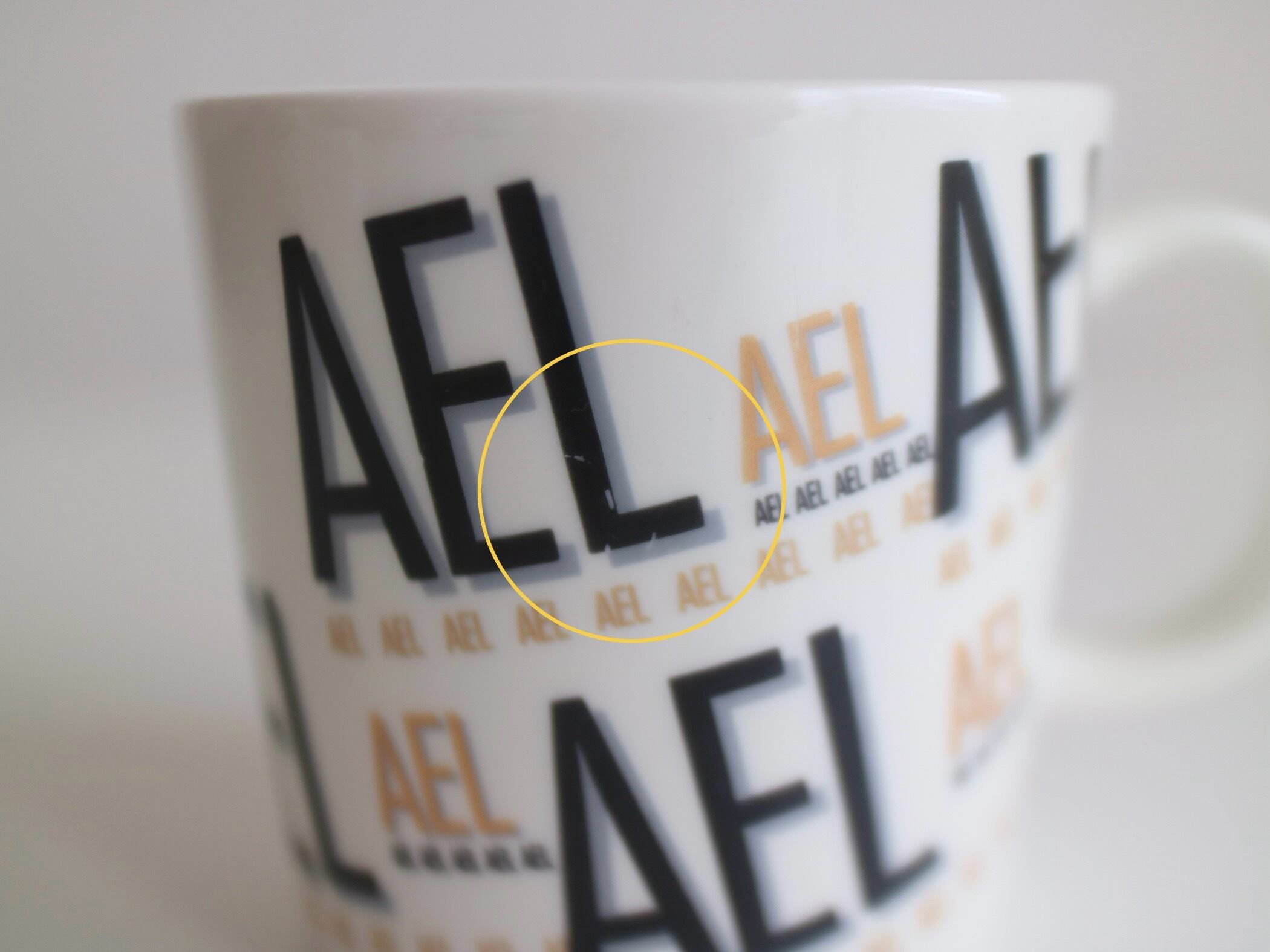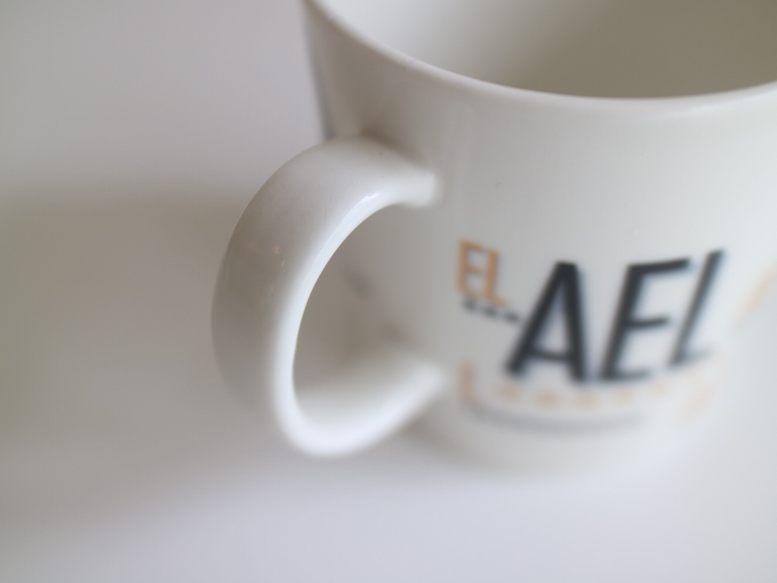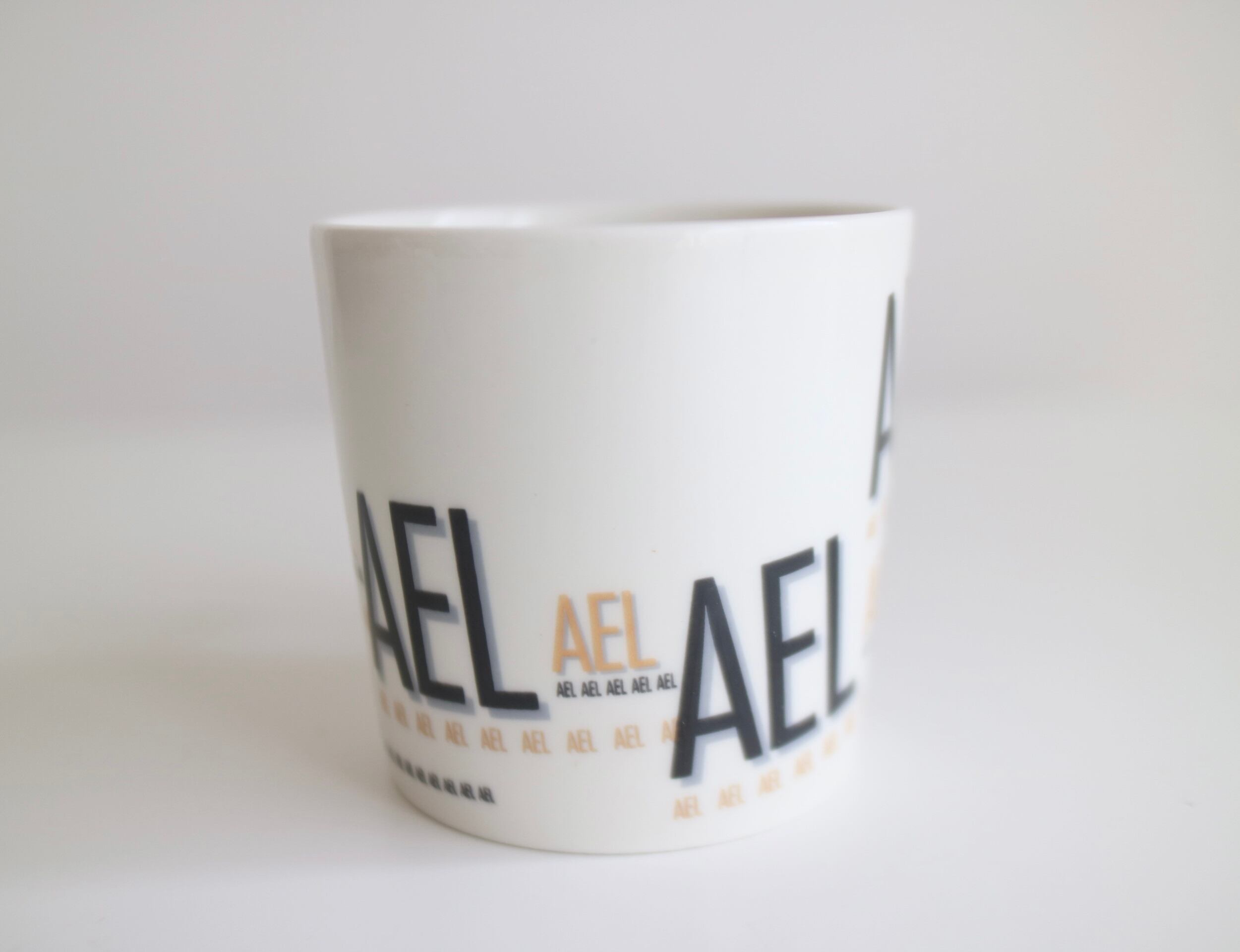 マグカップのフォルムは定番のTEEMAをベースに、カップ表面には職業訓練校の名称「AEL」が描かれており、どこかレトロで、タイポグラフィが可愛いらしデザインです。