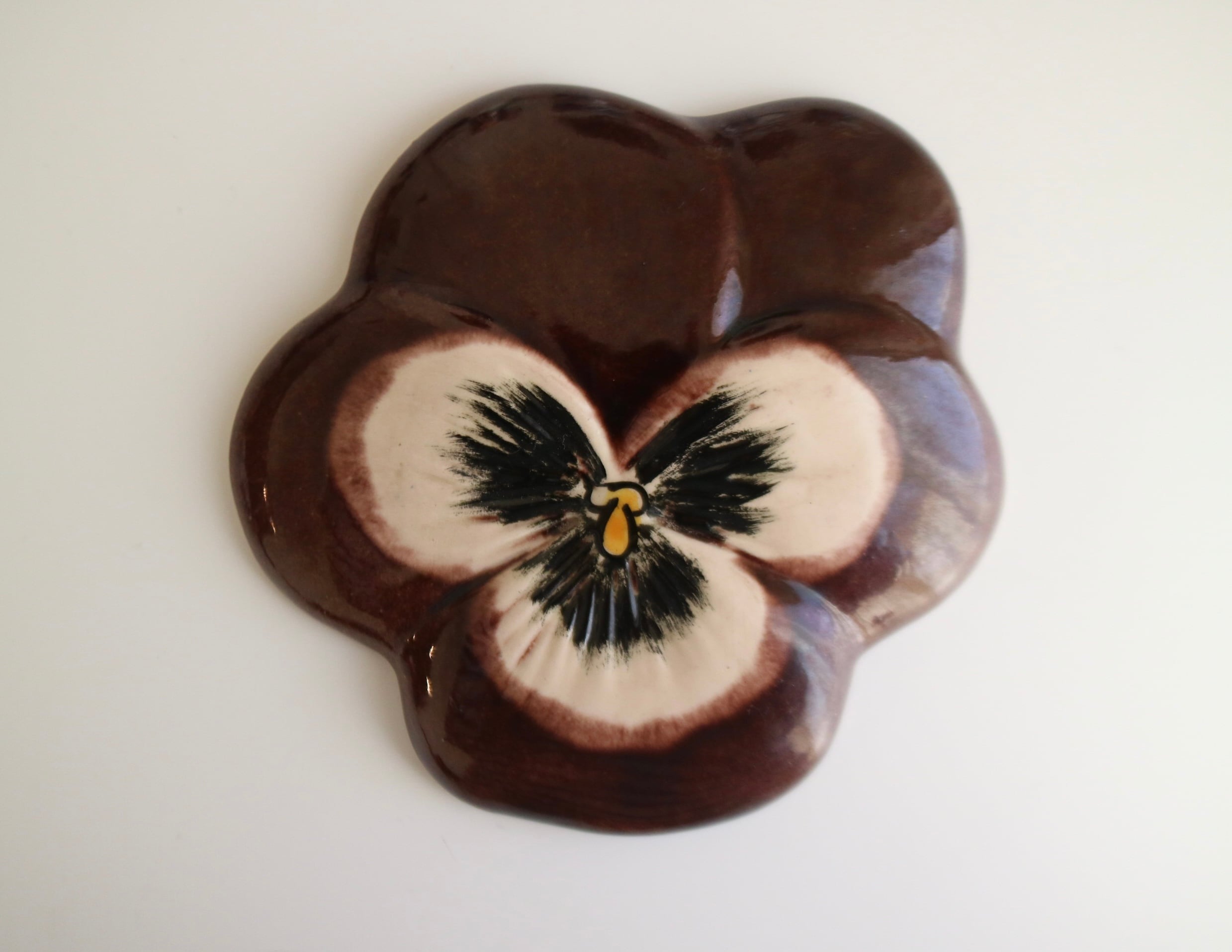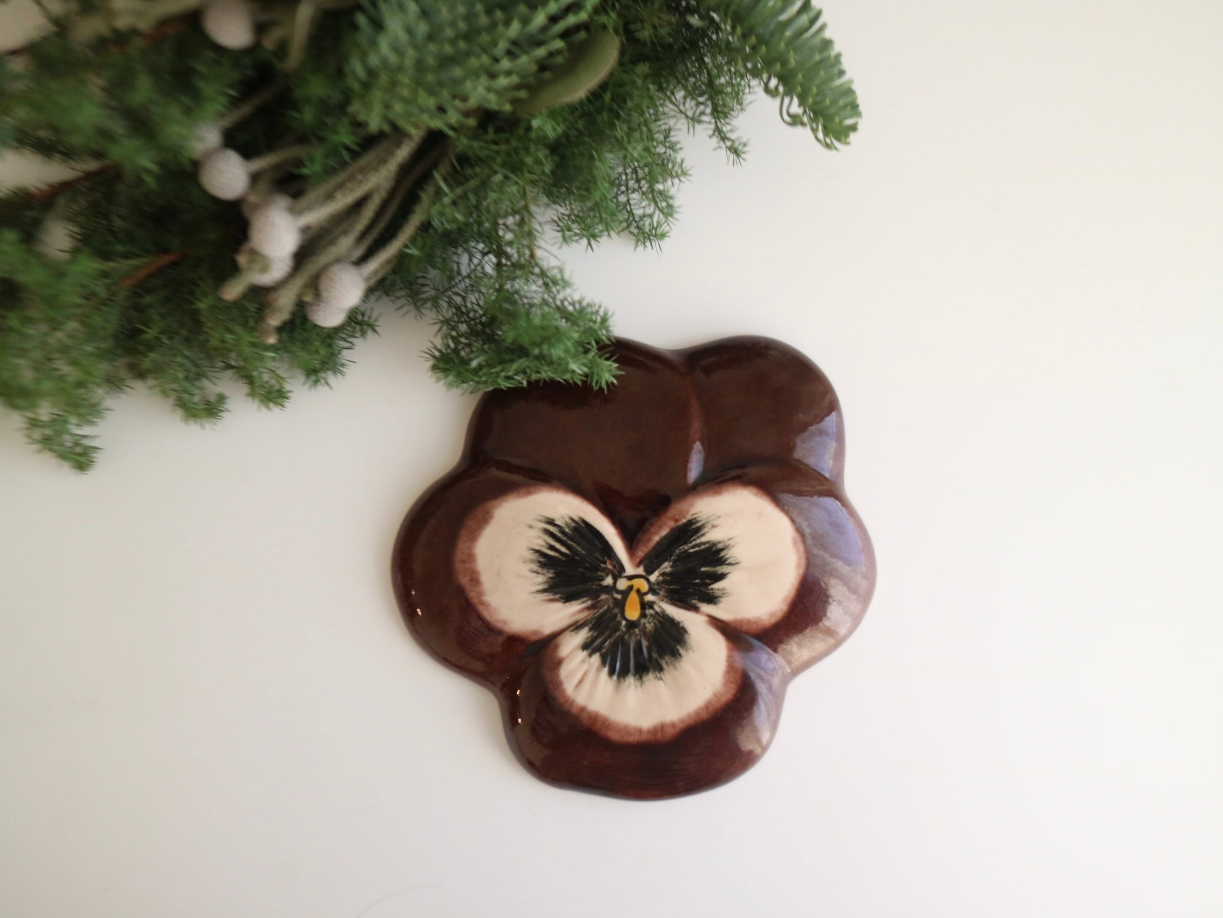 ビオラの陶板 / ウォールプレート ブラウン No.6433