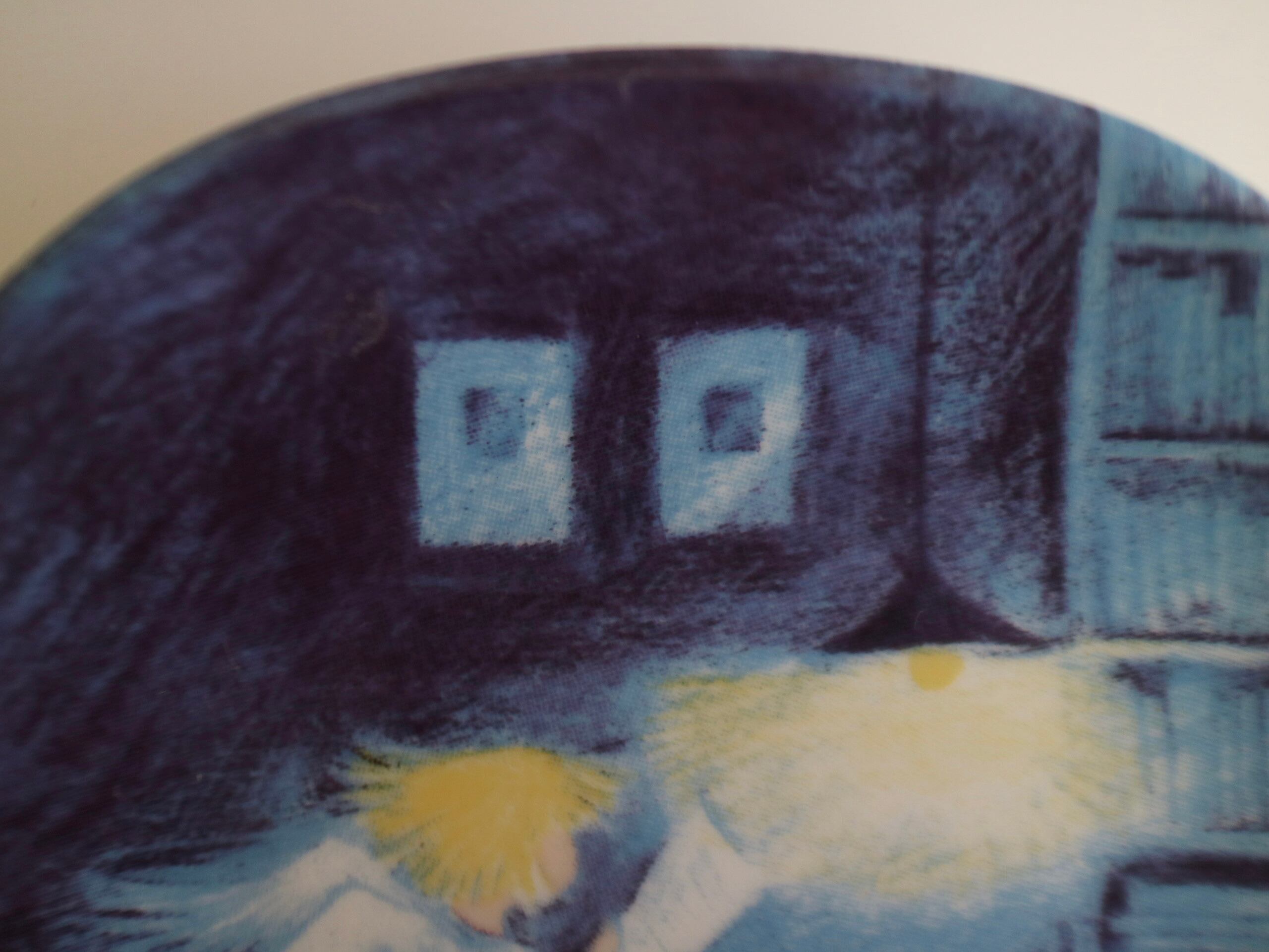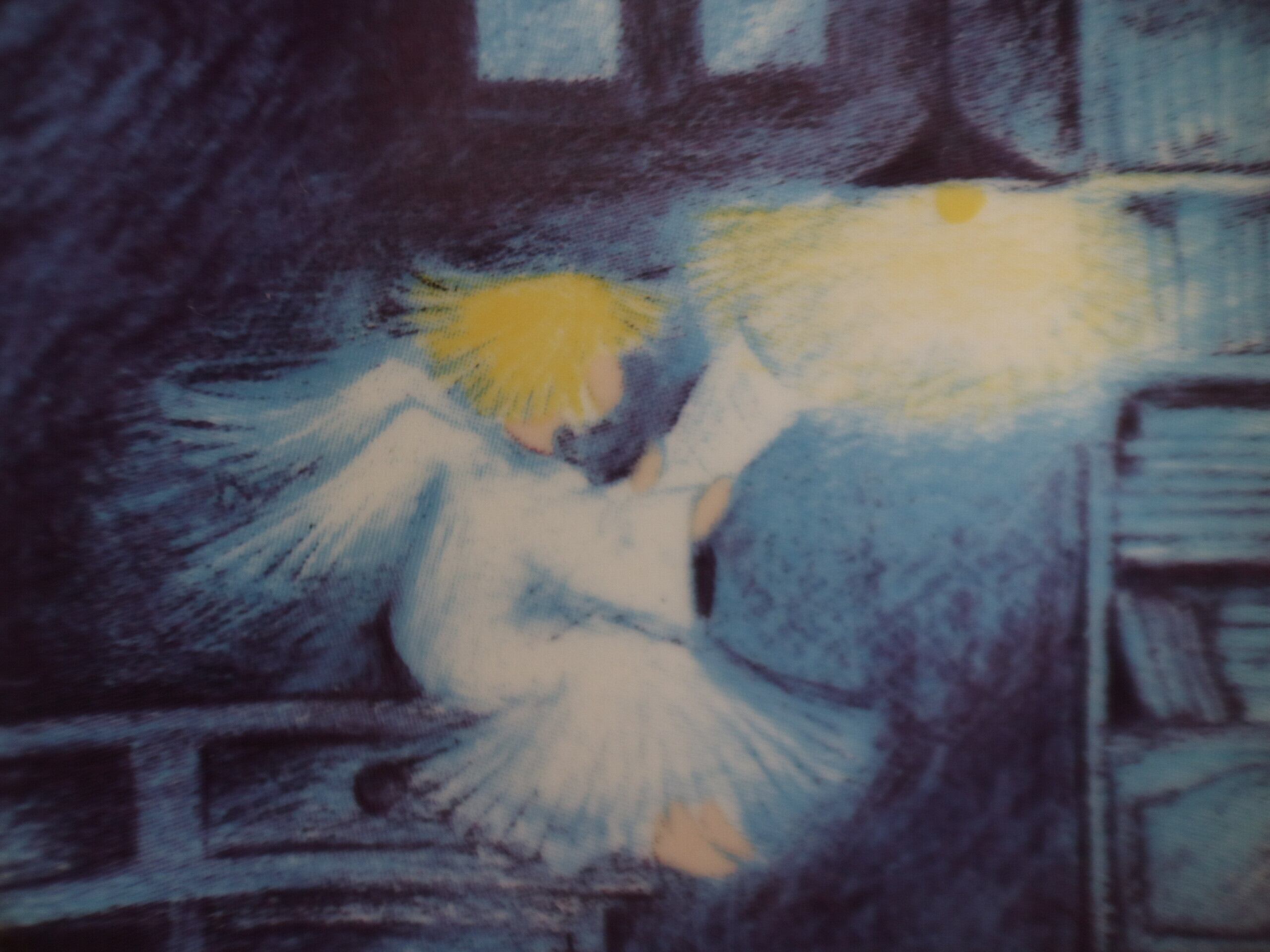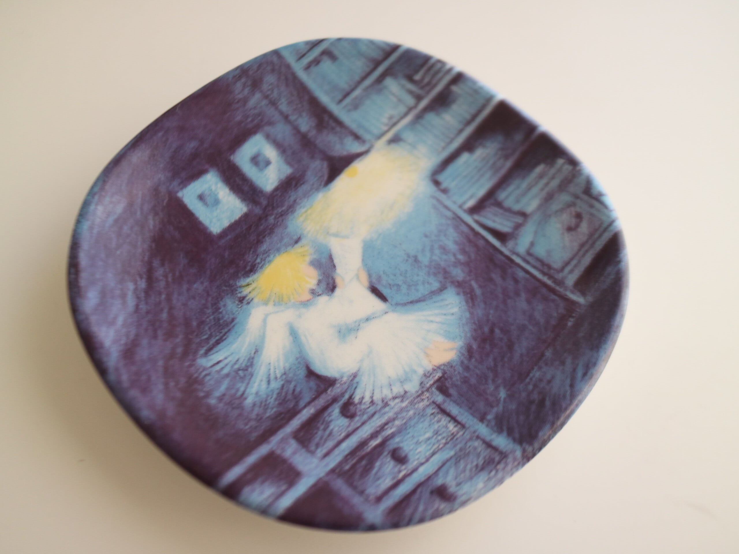 プレートにはランプの下で机に座って本を読んでいる天使が描かれています。みんなが寝静まった夜中にこっそりと読書を楽しんでいるのでしょうか。