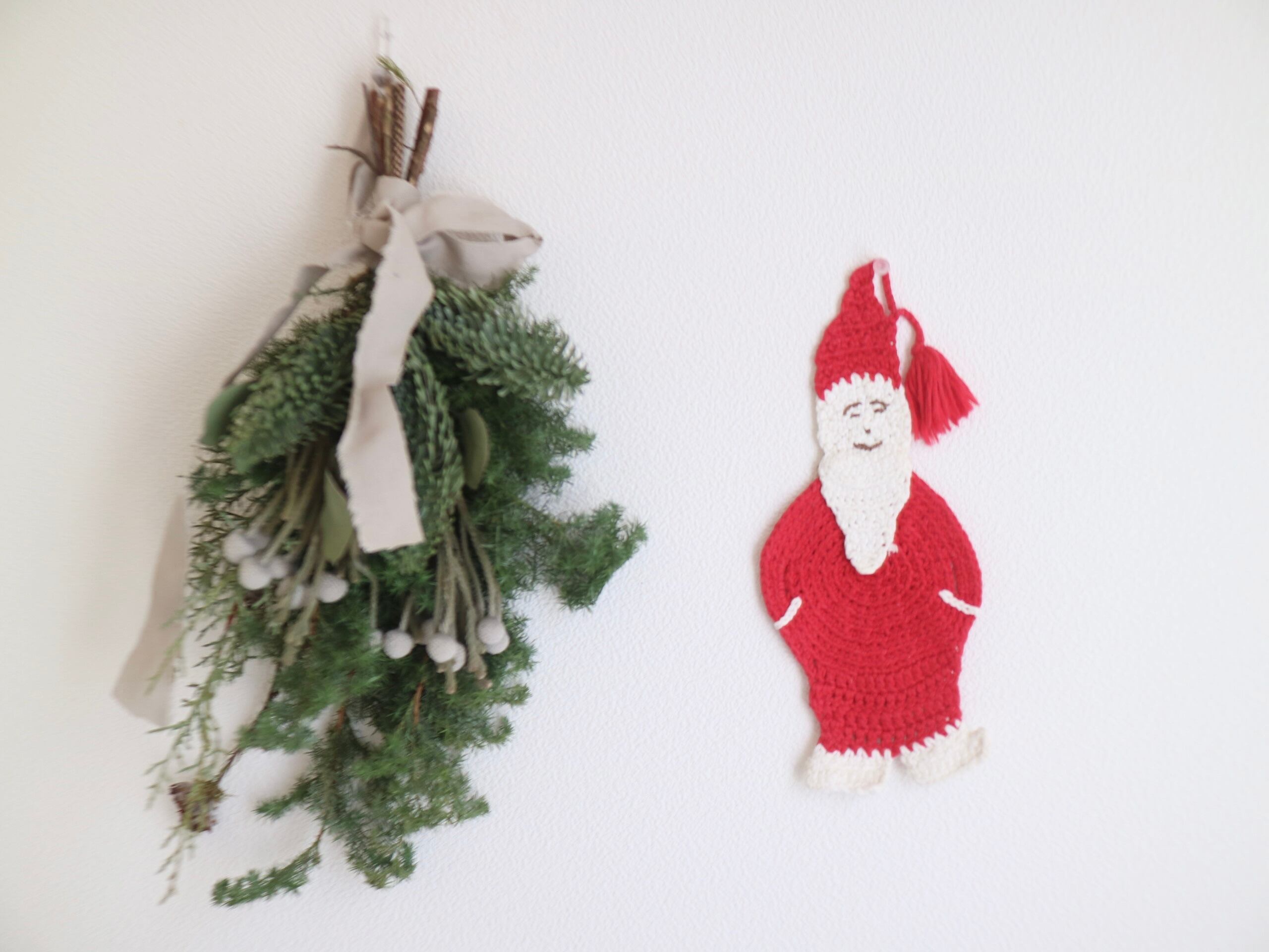 北欧ではよく見かける、かぎ針編みの素朴なサンタ。