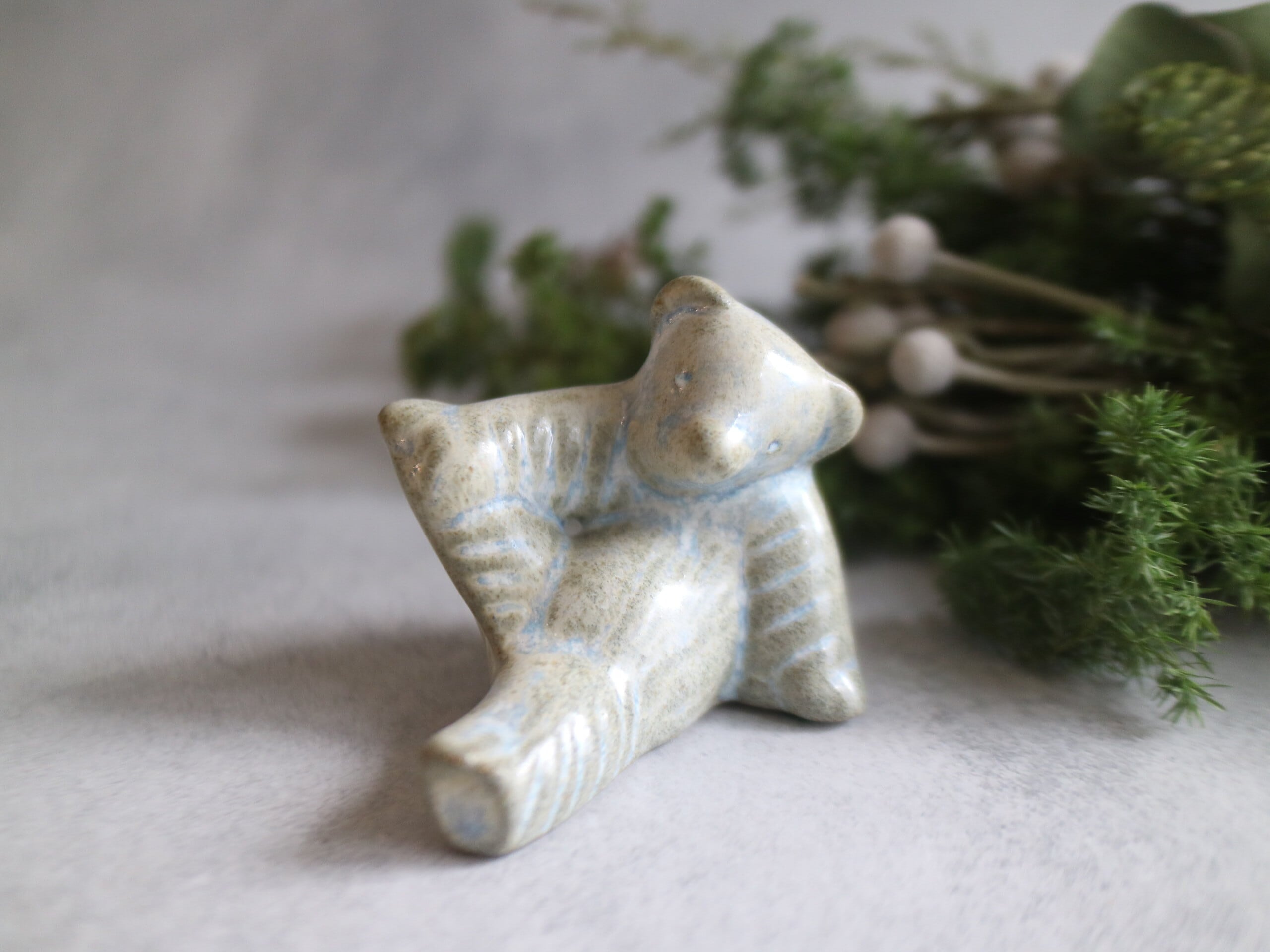 まるでひと休みしているかのような、リラックスした表情のクマのオブジェです。