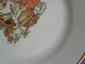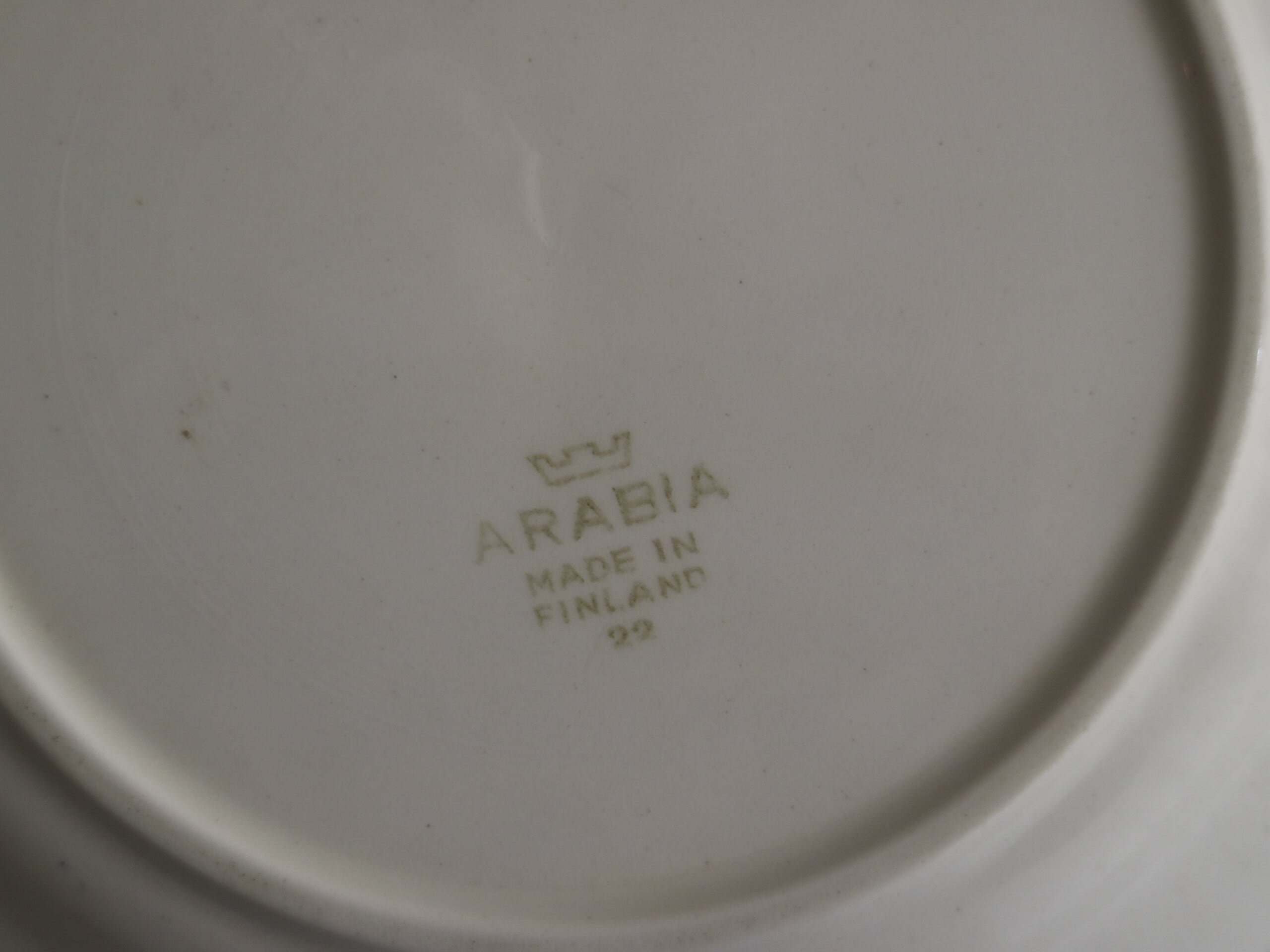 ARABIA社は1937年-1945年頃、ディズニーキャラクターの絵付けシリーズも製造していました。こちらのプレートはバックスタンプより、1932〜1949年に当時製造されていたお品と思われます。コレクターズアイテムとしてフィンランドでも入手困難な稀少なプレートとなっておりますので、お探しだった方は是非ご検討ください。