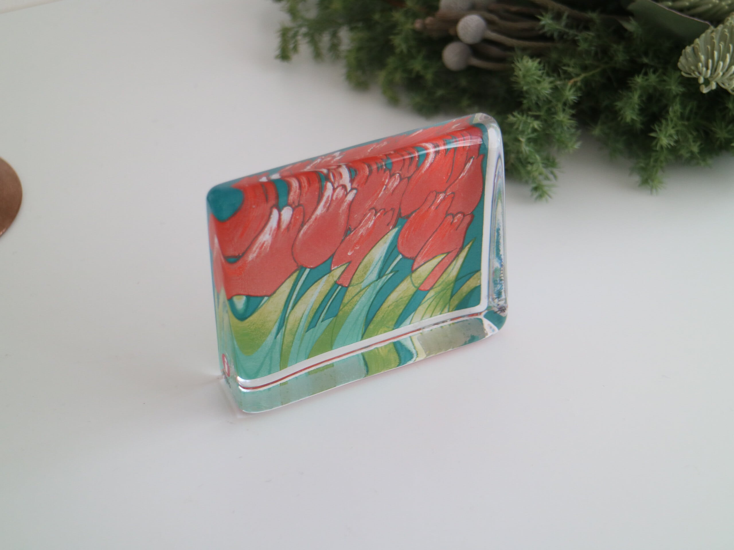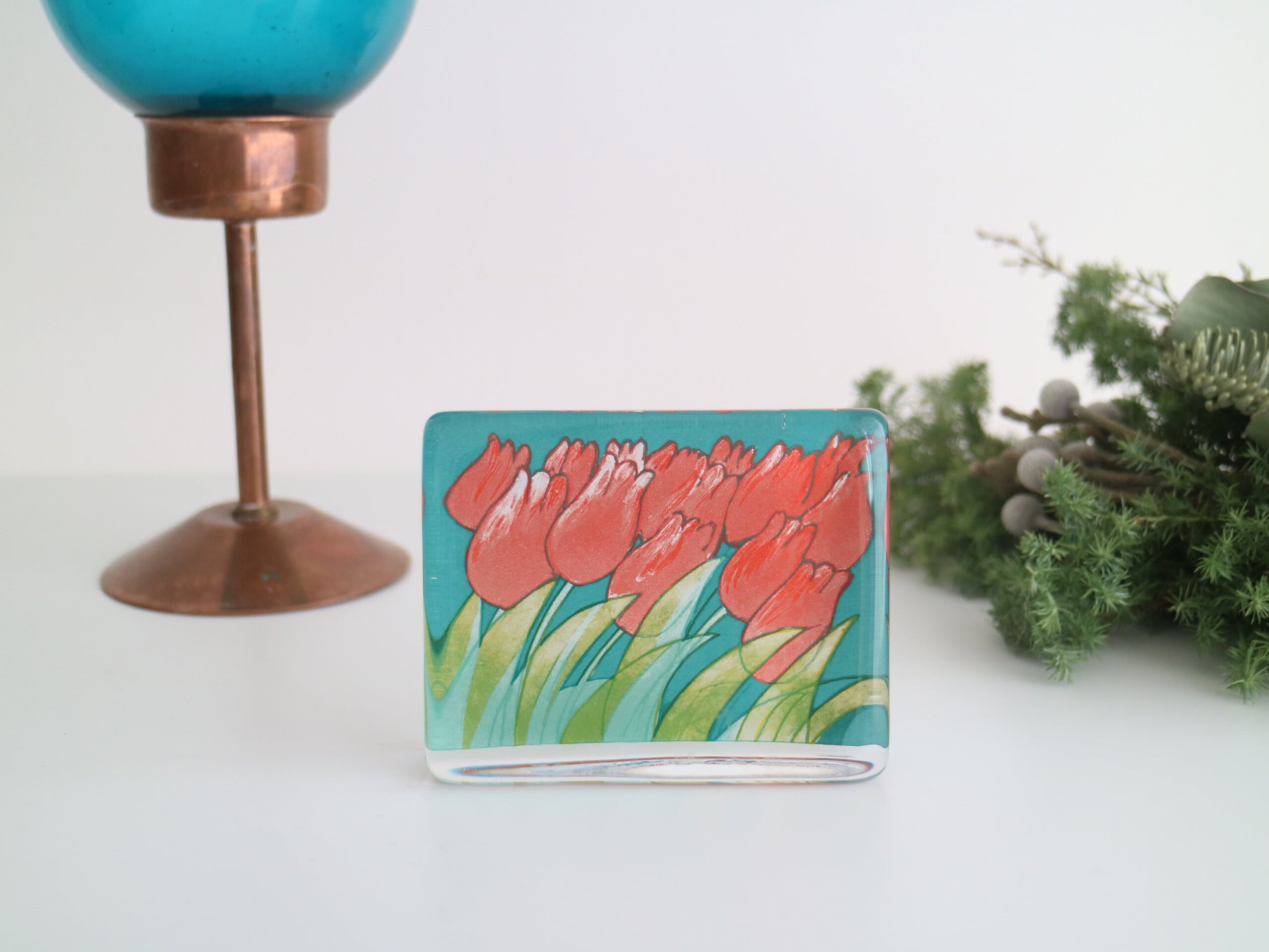 ARABIA社製 Heljä Liukko-Sundström(ヘルヤ・リウッコ・スンドストロム)が1990年代にデザインしたチューリップのガラスカードです。