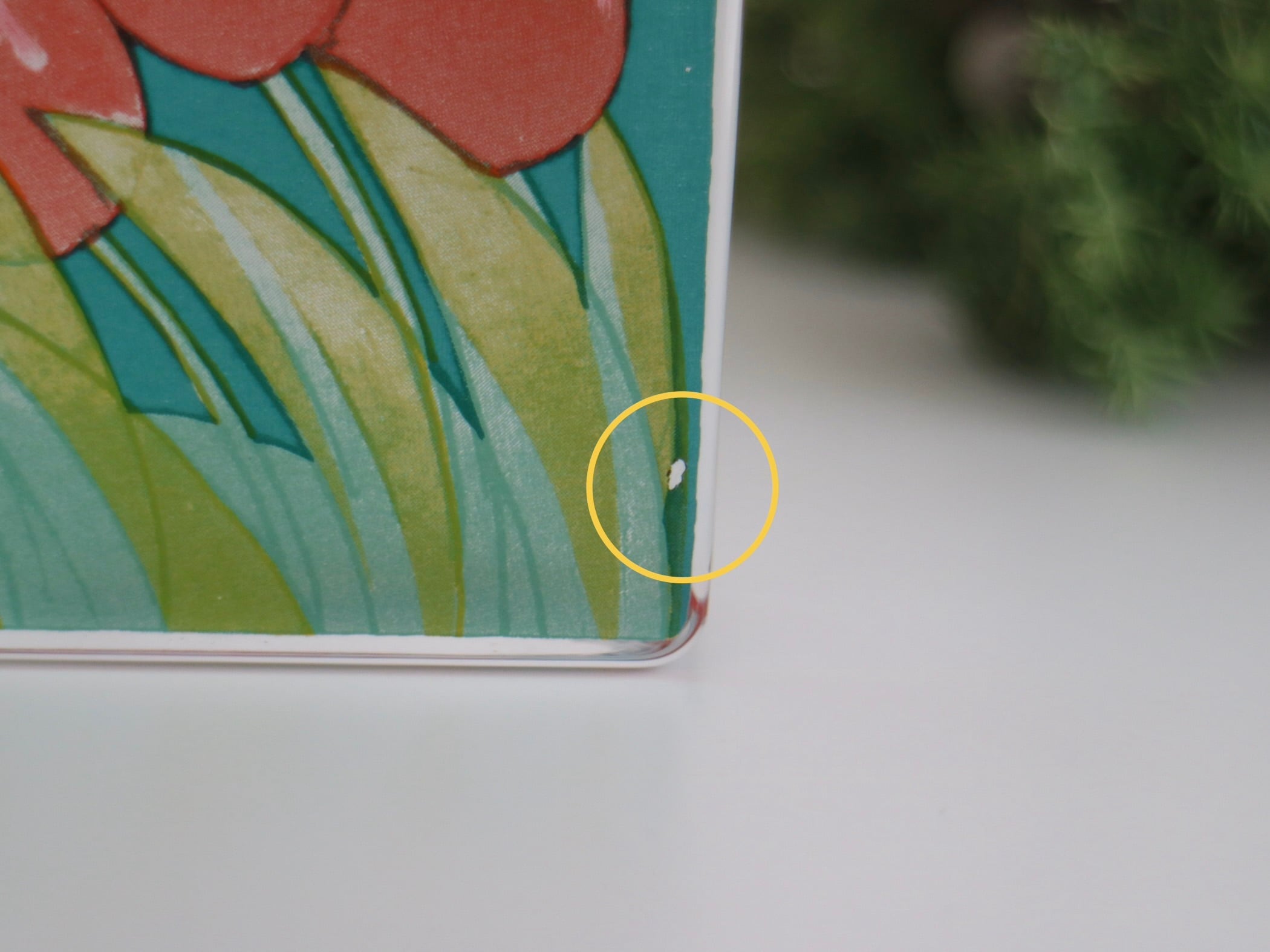 写真10枚目 ガラス裏面のプリント部分に小さな剥がれが見られます。製造時や経年によるものと思われます。表から見た際には大きく目立つものではありませんが、ヴィンテージ品の味わいとしてご理解いただけますと幸いです。その他、欠けやヒビなどの大きなダメージはなく良いコンディションを保っています。