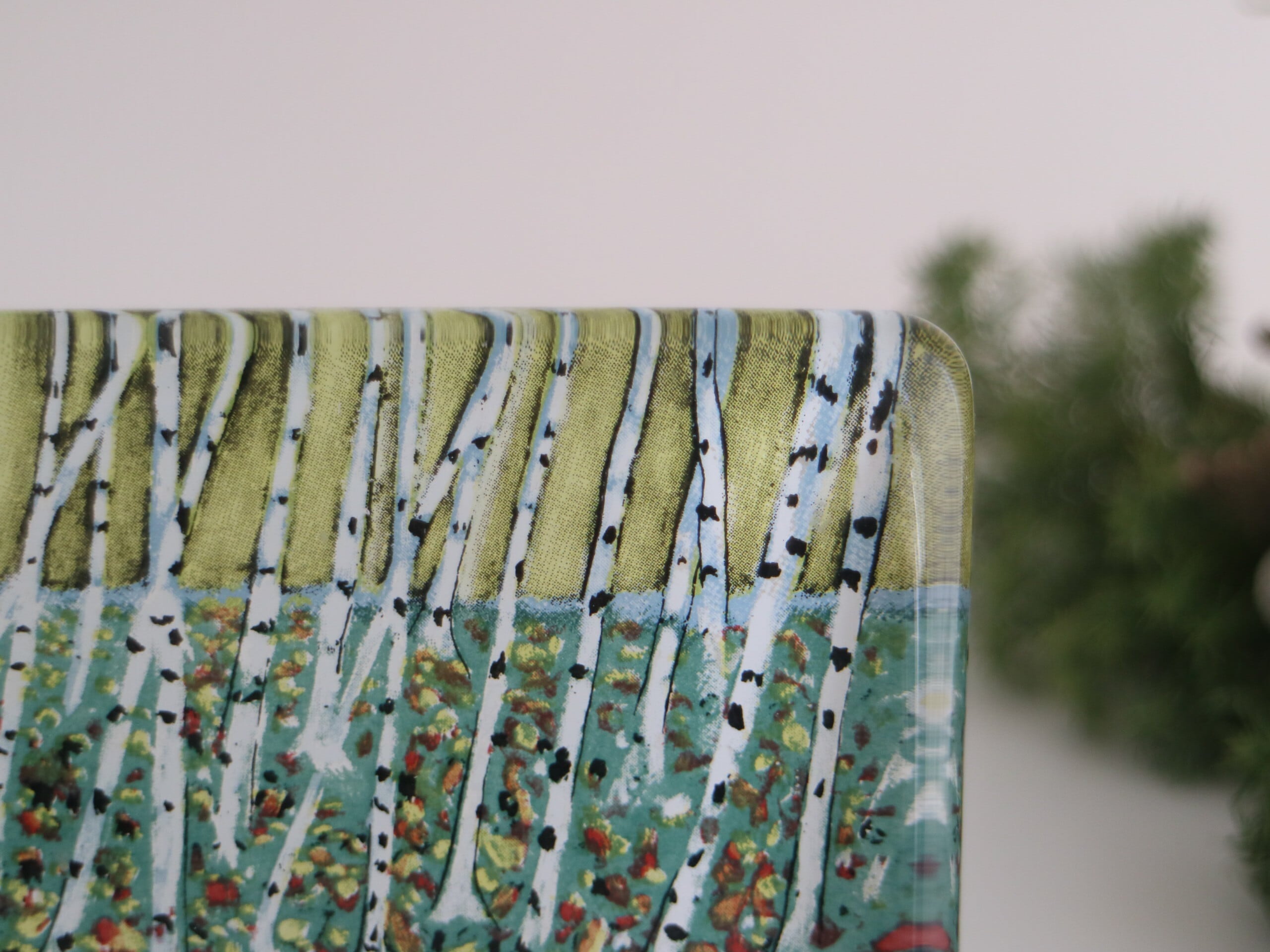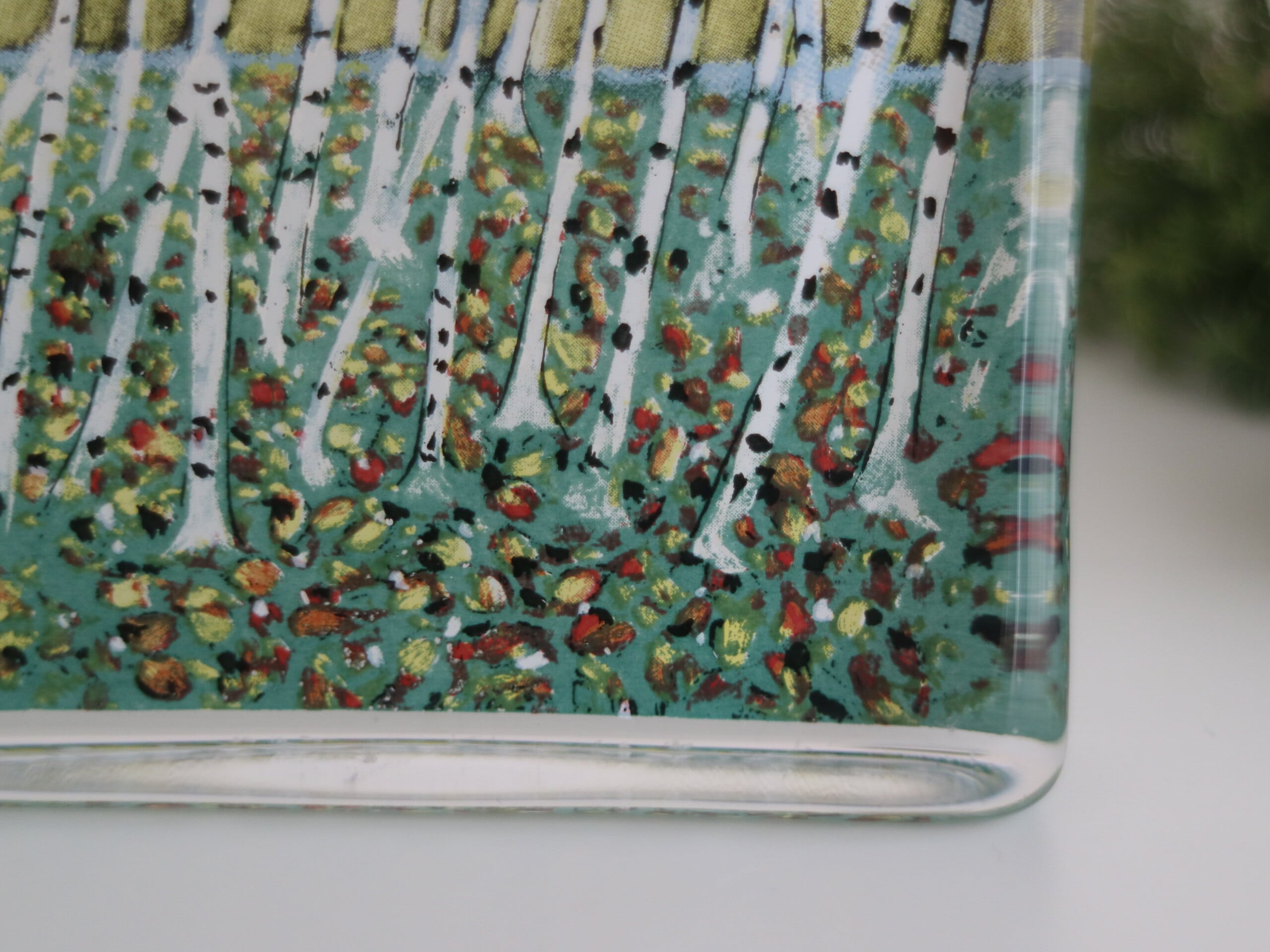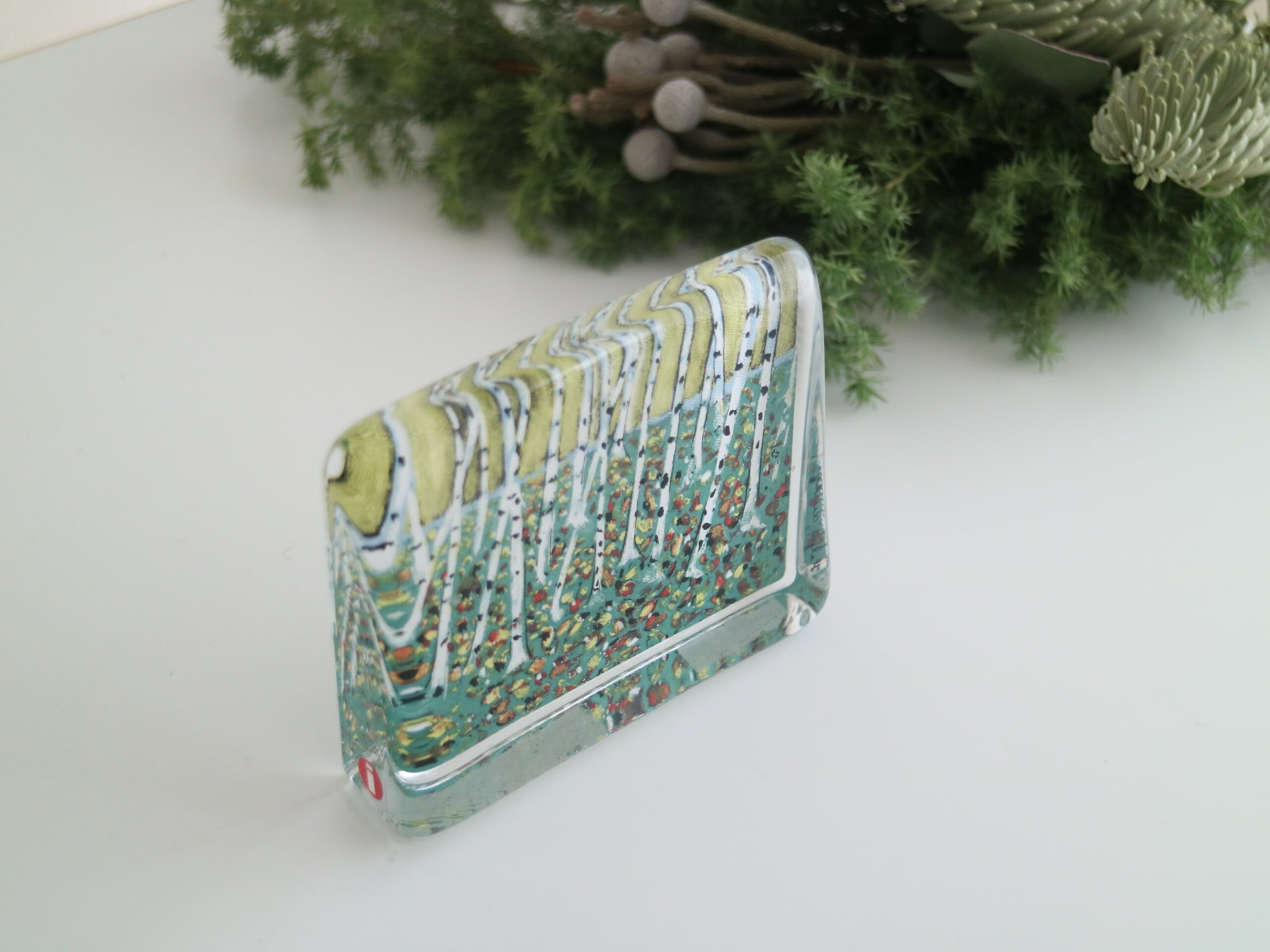 ARABIA社製 Heljä Liukko-Sundström(ヘルヤ・リウッコ・スンドストロム)が1990年代にデザインした Lehtien fanssi(葉のダンス)というタイトルのガラスカードです。
