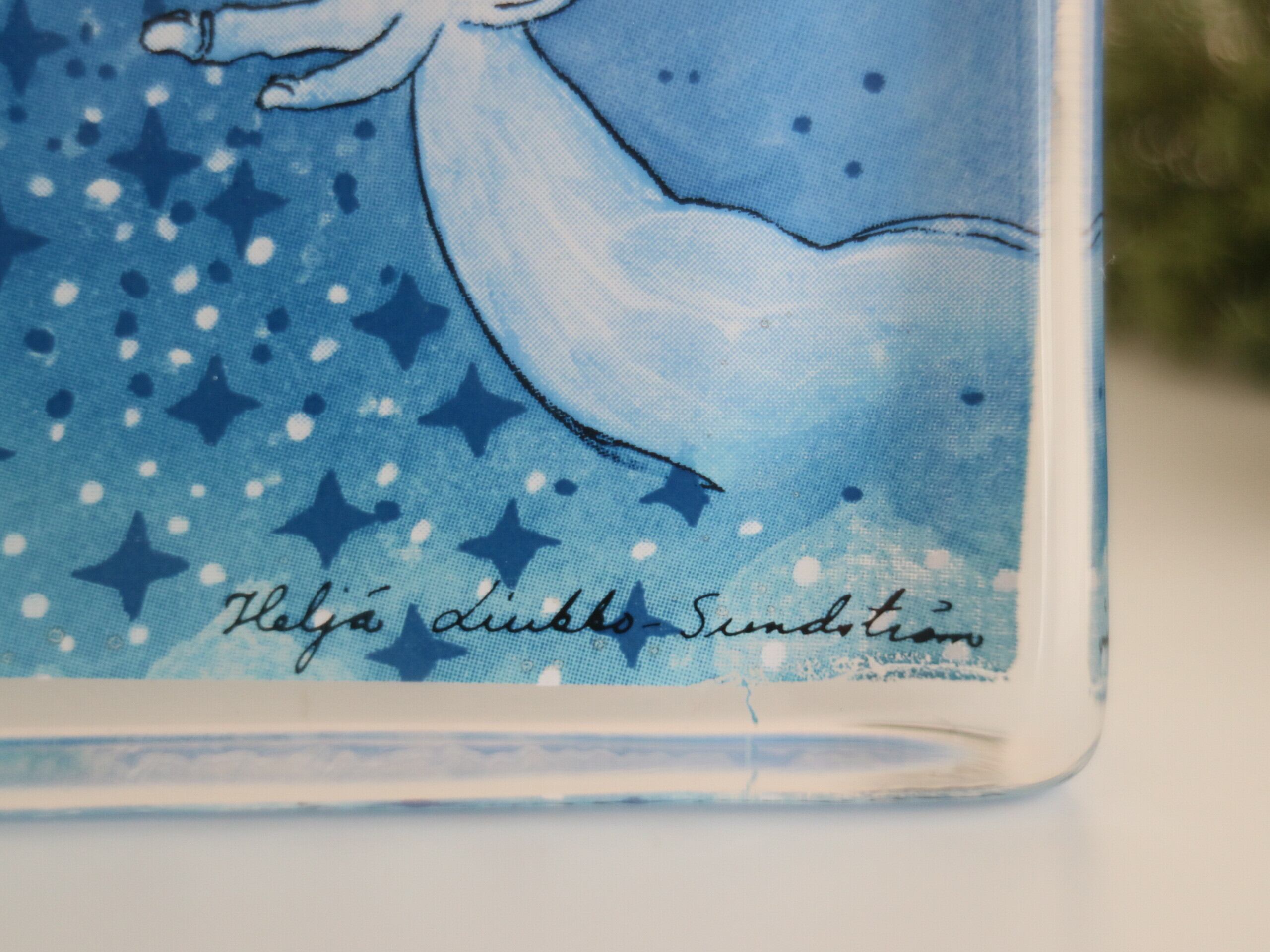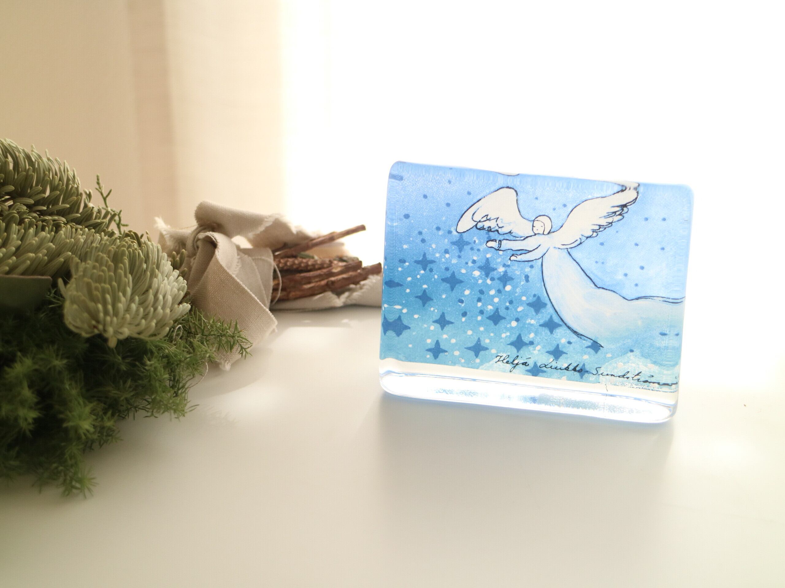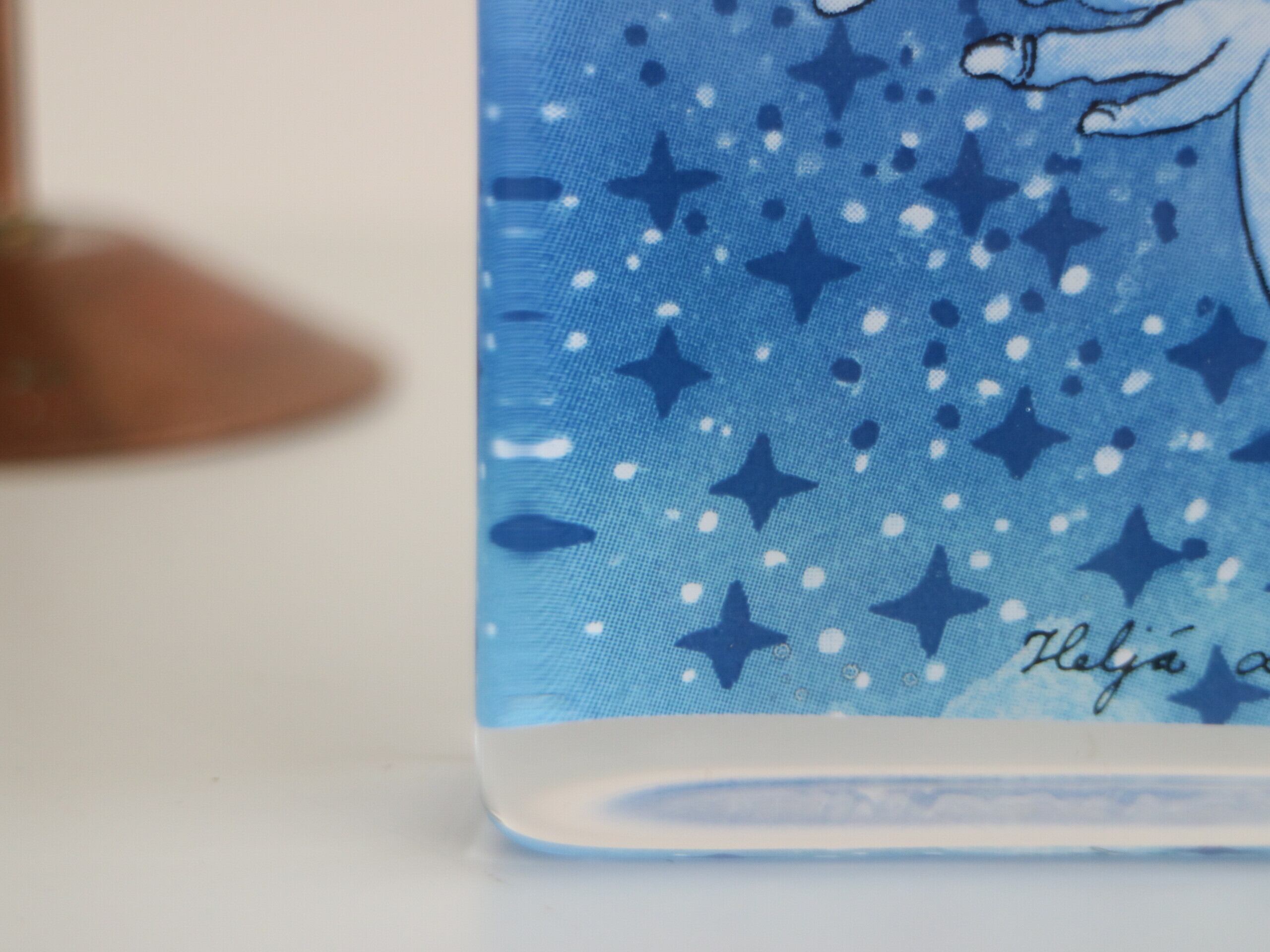 ARABIA社製 Heljä Liukko-Sundström(ヘルヤ・リウッコ・スンドストロム)が1990年代にデザインした Tähtisade(星の雨)というタイトルのガラスカードです。