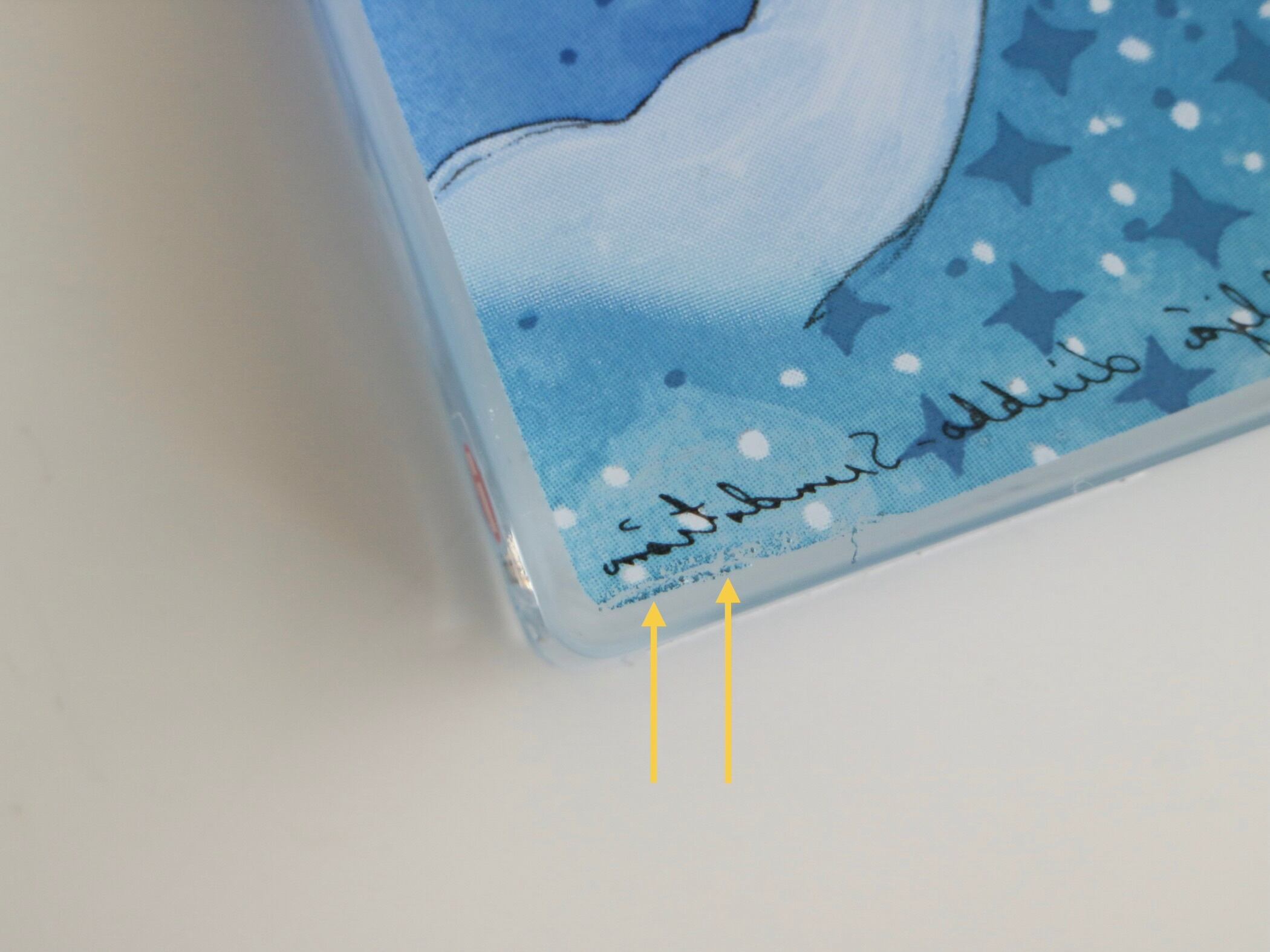 写真10枚目 ガラス裏面のプリント部分に小さなプリントの剥がれが見られます。