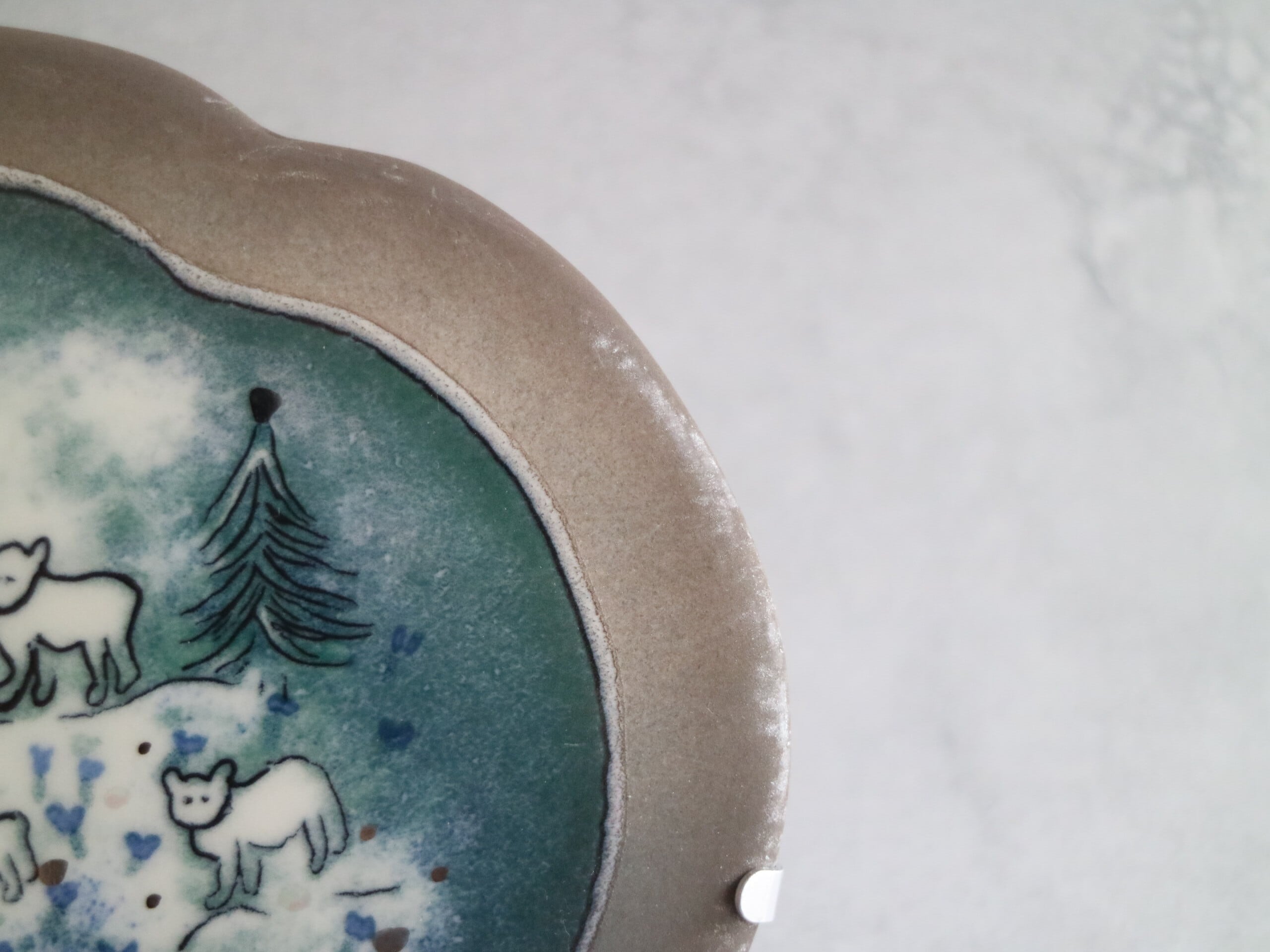 また、作品にはラスター彩(Lustre)と呼ばれる装飾が施されており(写真10枚目)光の角度によって雪の粒のようにきらきらと輝いて見えるのも魅力のひとつです。