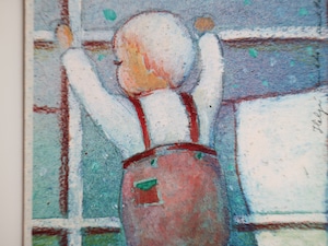 これから何かが起こるような、そんな小さな期待やぬくもりが感じられる一枚です。ヘルヤらしいやさしいタッチと、物語を想像させる余白のある世界観。