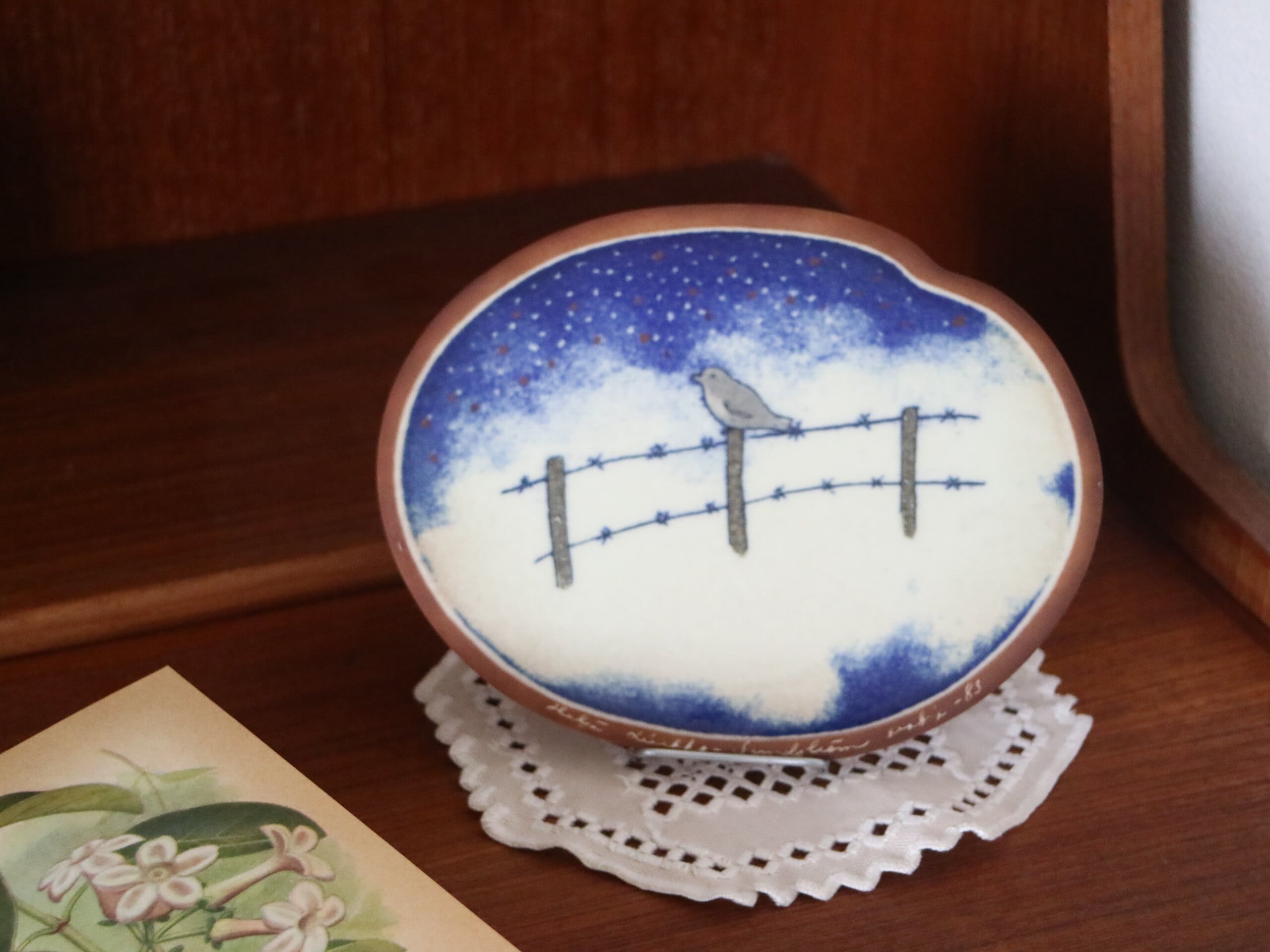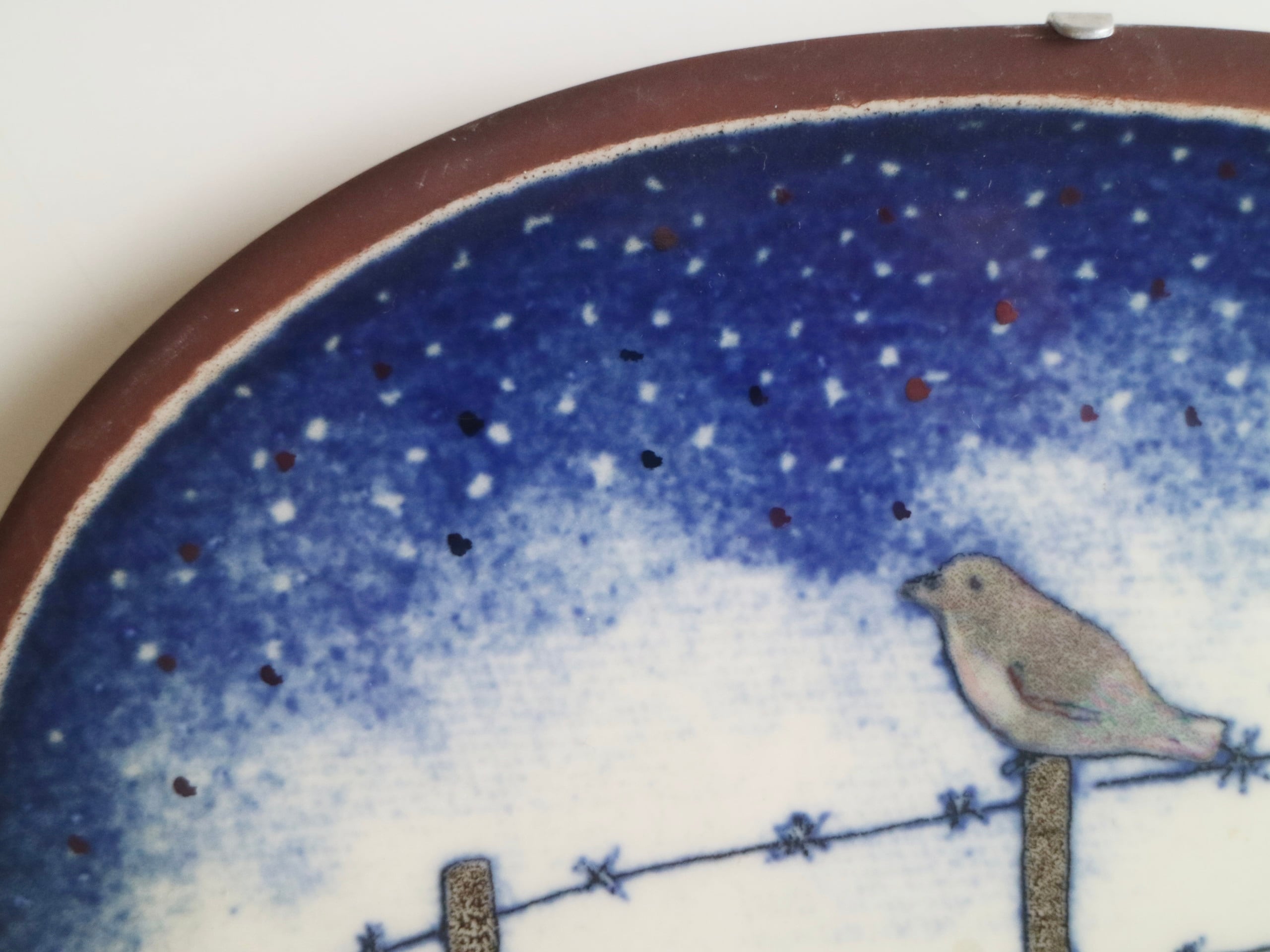 ARABIA社製 Heljä Liukko-Sundström(ヘルヤ・リウッコ・スンドストロム)がデコレートデザインした陶板です。タイトルは「Varpunen(スズメ)」