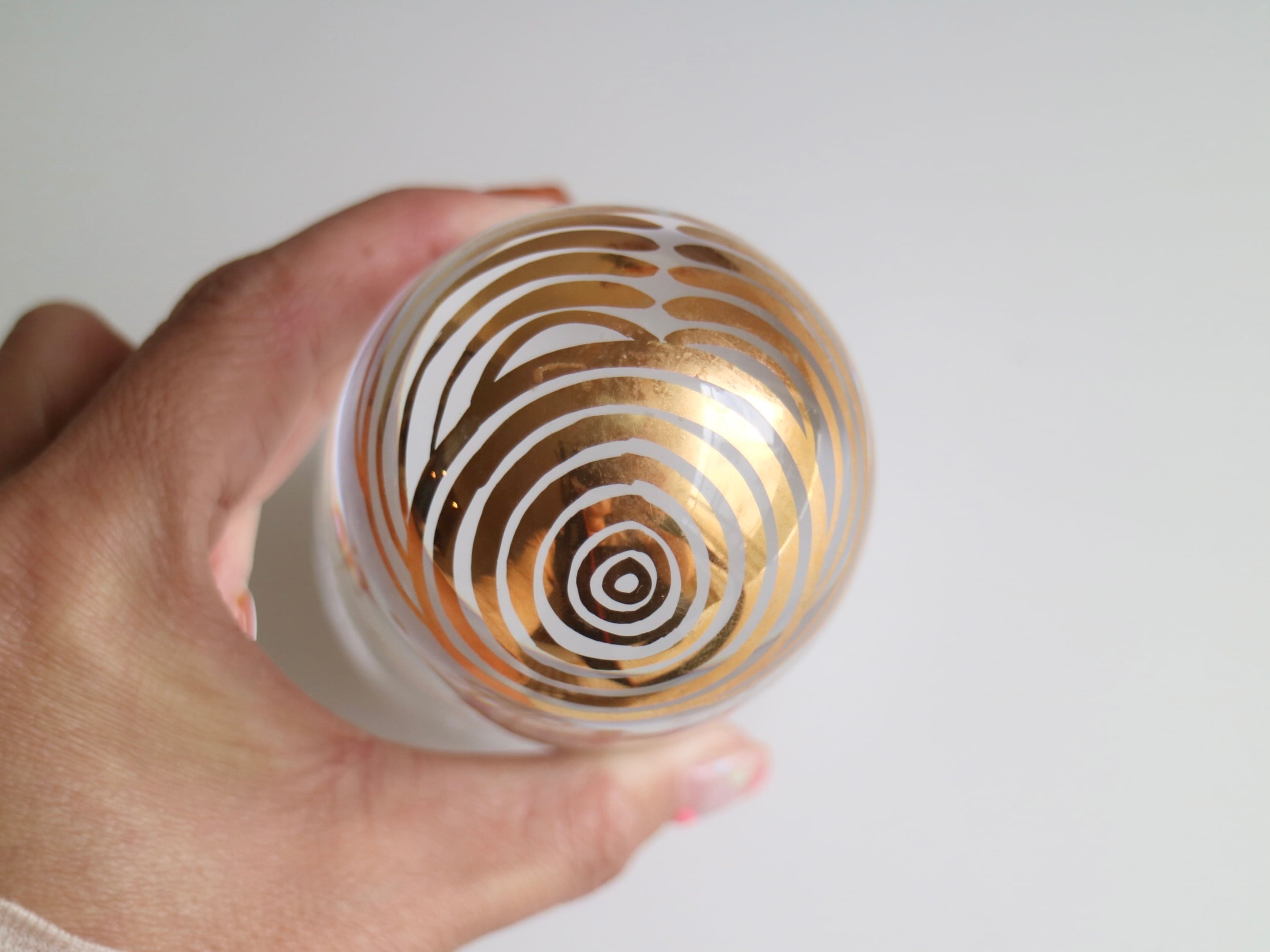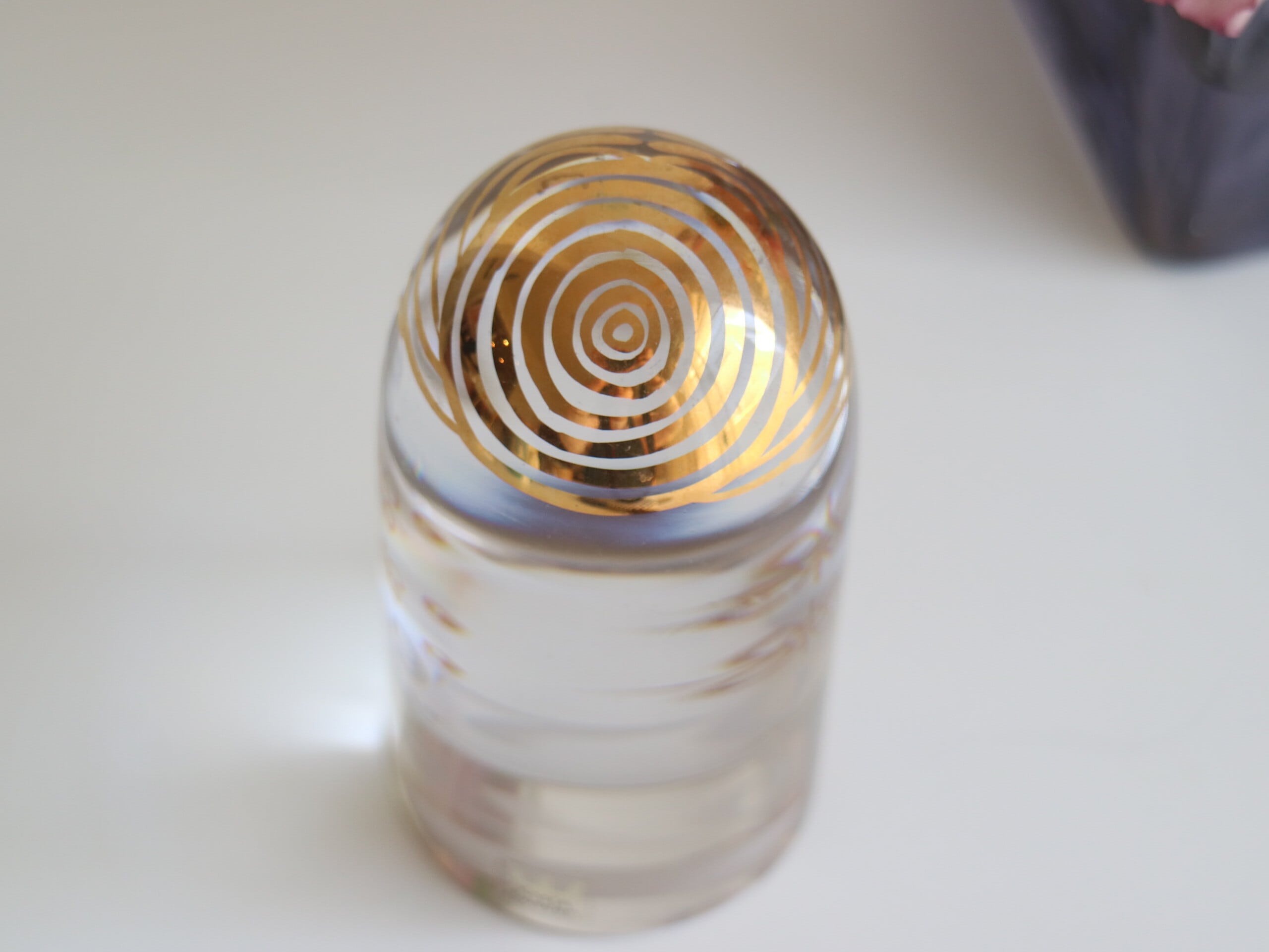 厚みのあるクリスタルガラスに、金彩で描かれた顔や花模様が印象的です。