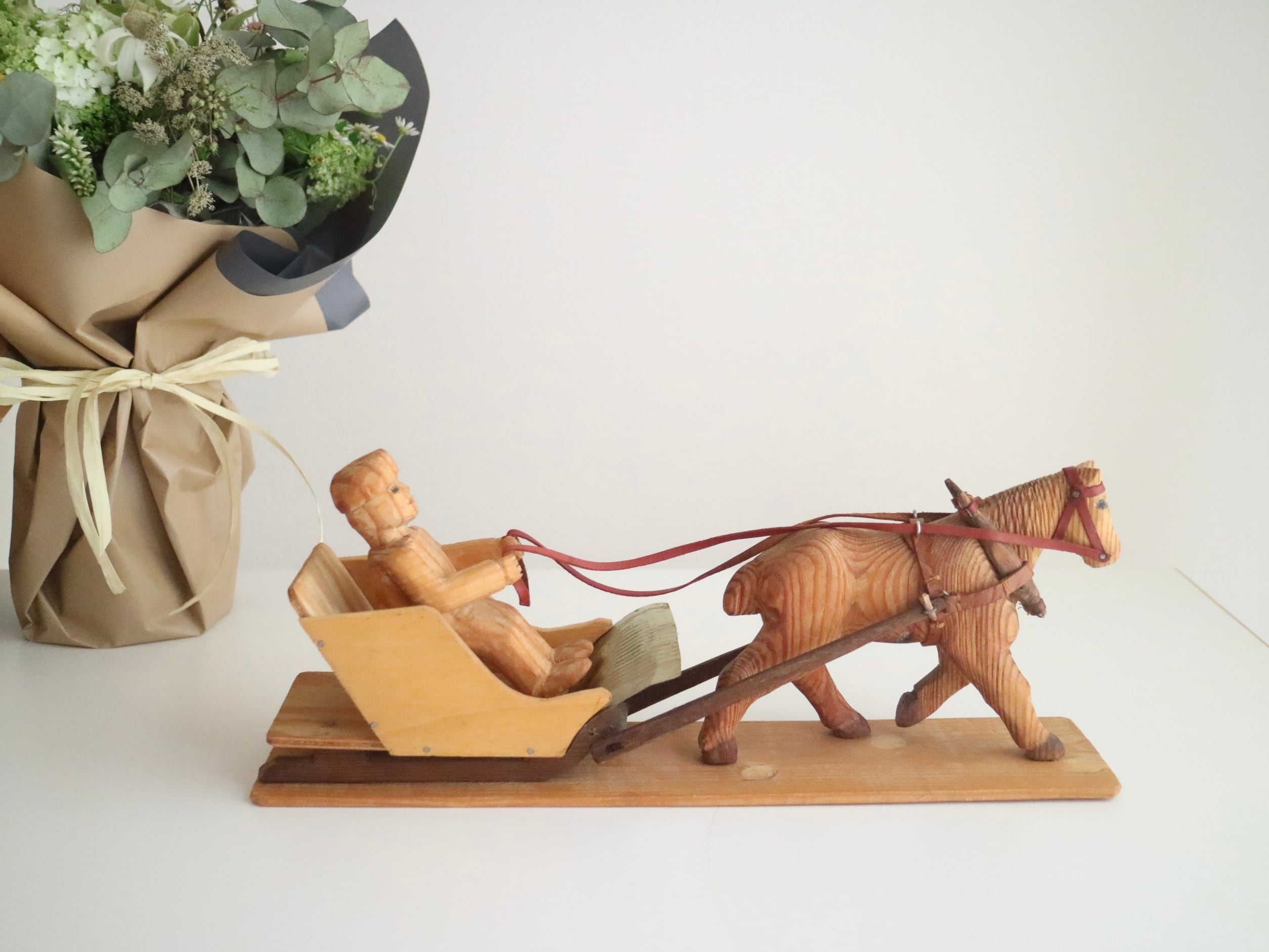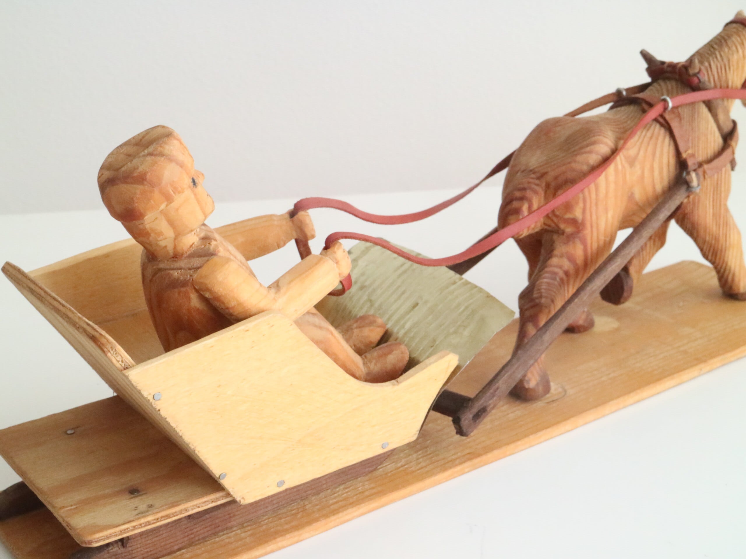 スウェーデンで見つけた木製の馬ソリオブジェ No.5945
