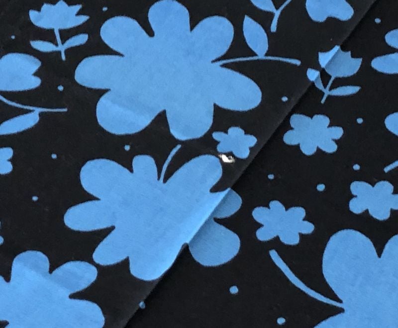 【vintage】Tampella タンペラ / お花のヴィンテージファブリック 黒×水色 144×140 / No.1630