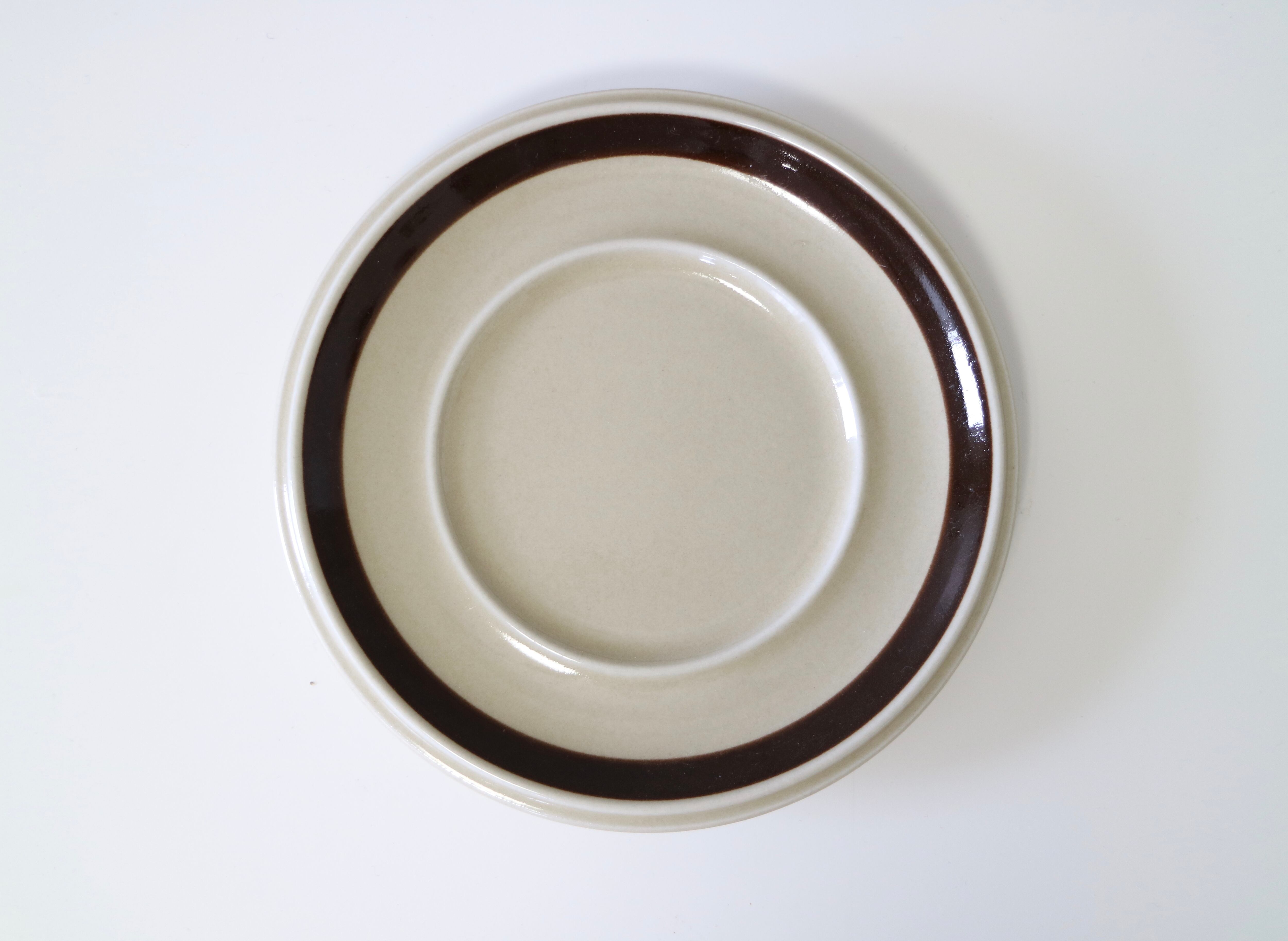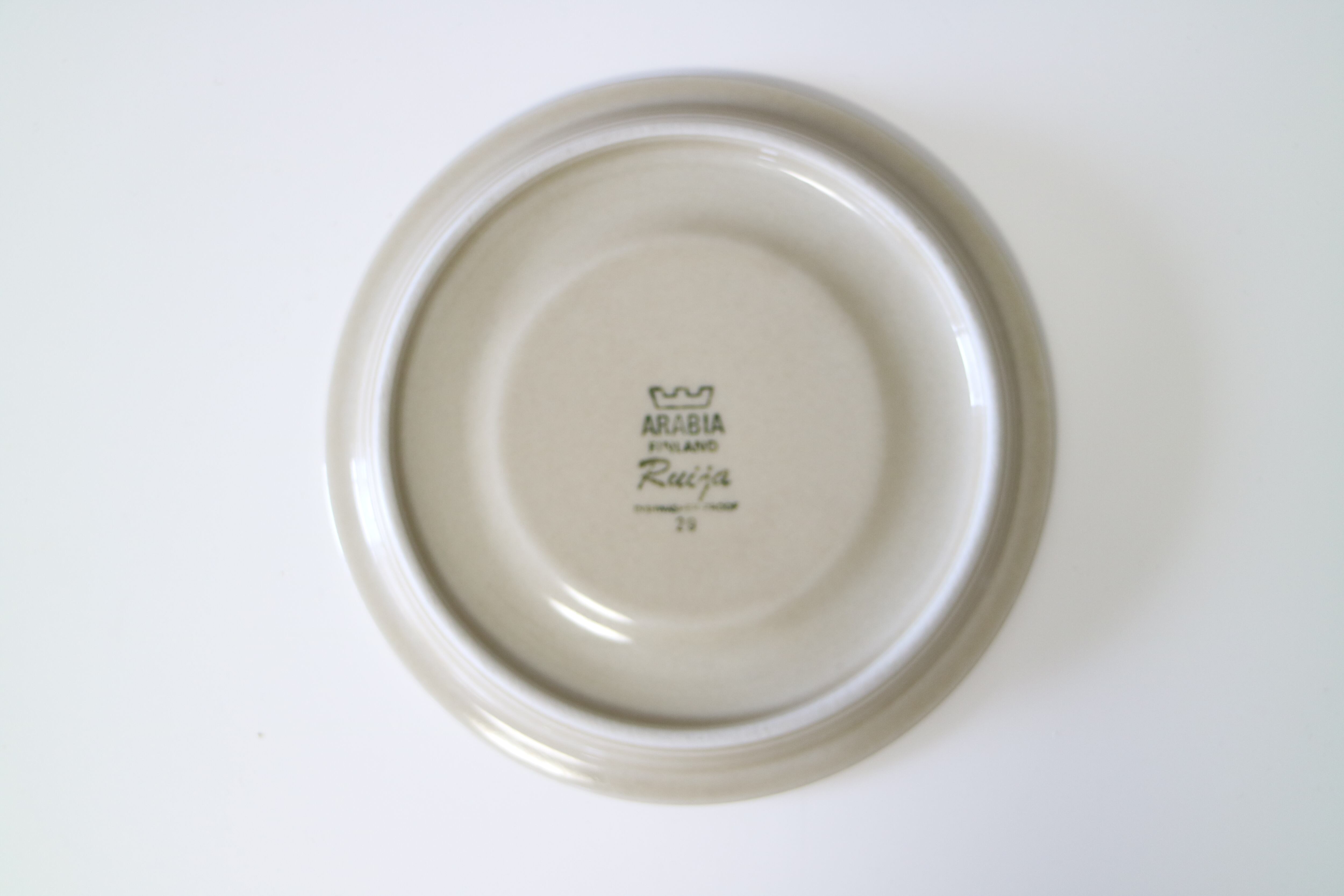 ARABIA社Ruija(ルイヤ)のティーカップ&ソーサーです。ベースのベージュカラーに、ブラウンやグリーンで手描きの葉っぱや実の絵柄が描かれています。
