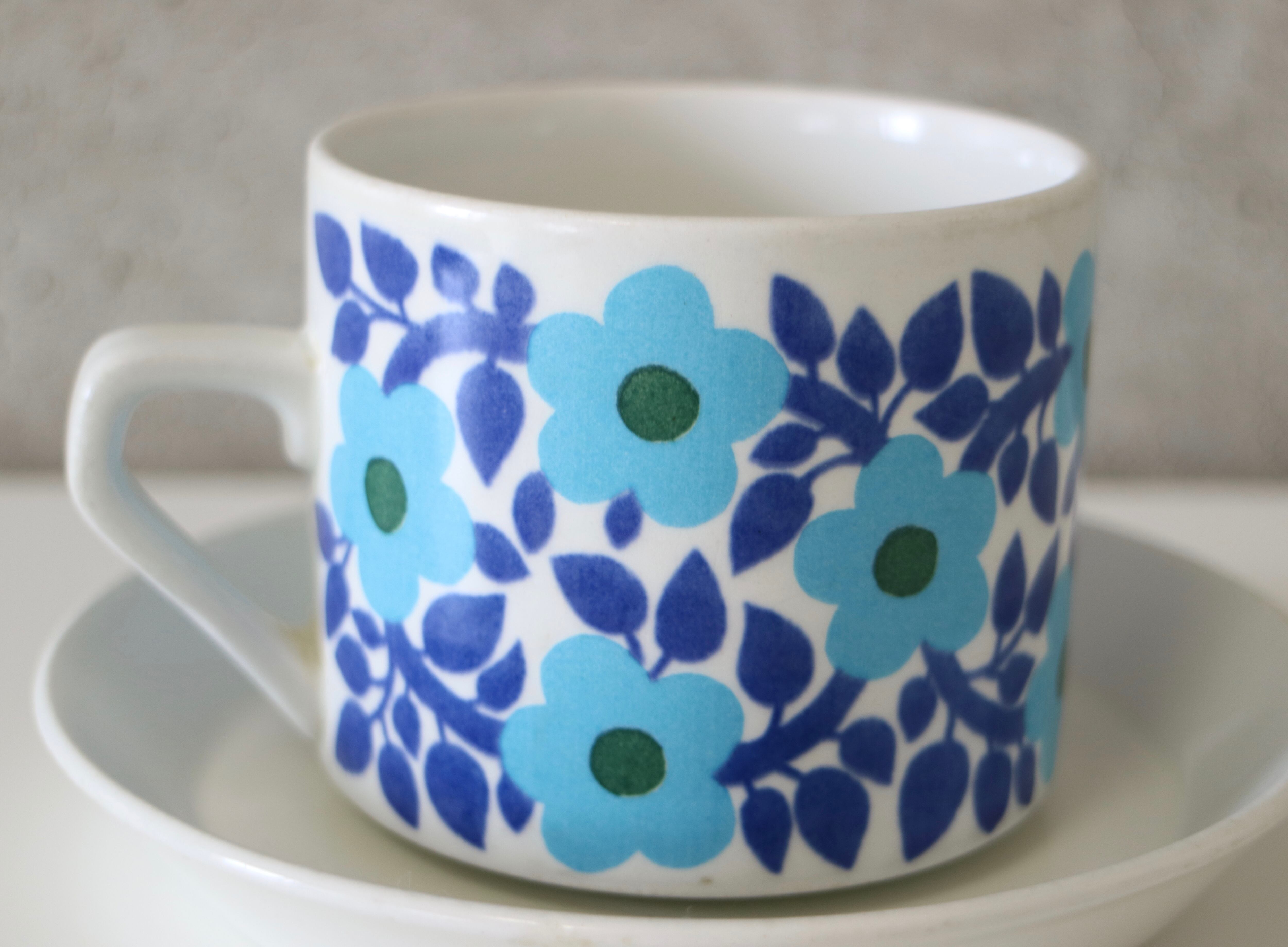 【vintage】ARABIA アラビア / Ahmet ティーカップ&ソーサー お花柄 ブルー