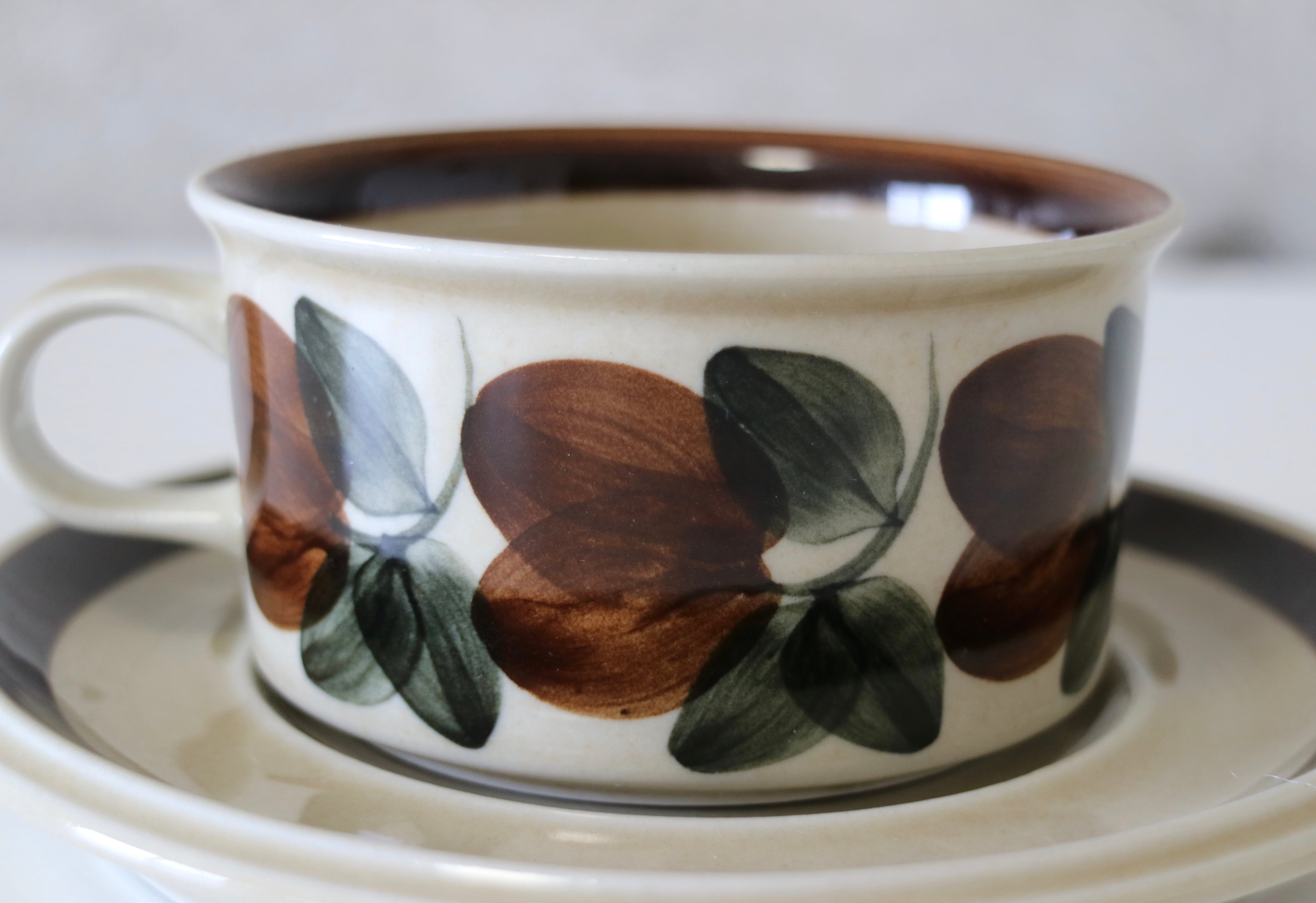 ARABIA社Ruija(ルイヤ)のティーカップ &ソーサーです。デザインはライヤ・ウオシッキネンで、カップに葉がハンドペイントで描かれており、とてもこころ温まる作品です。