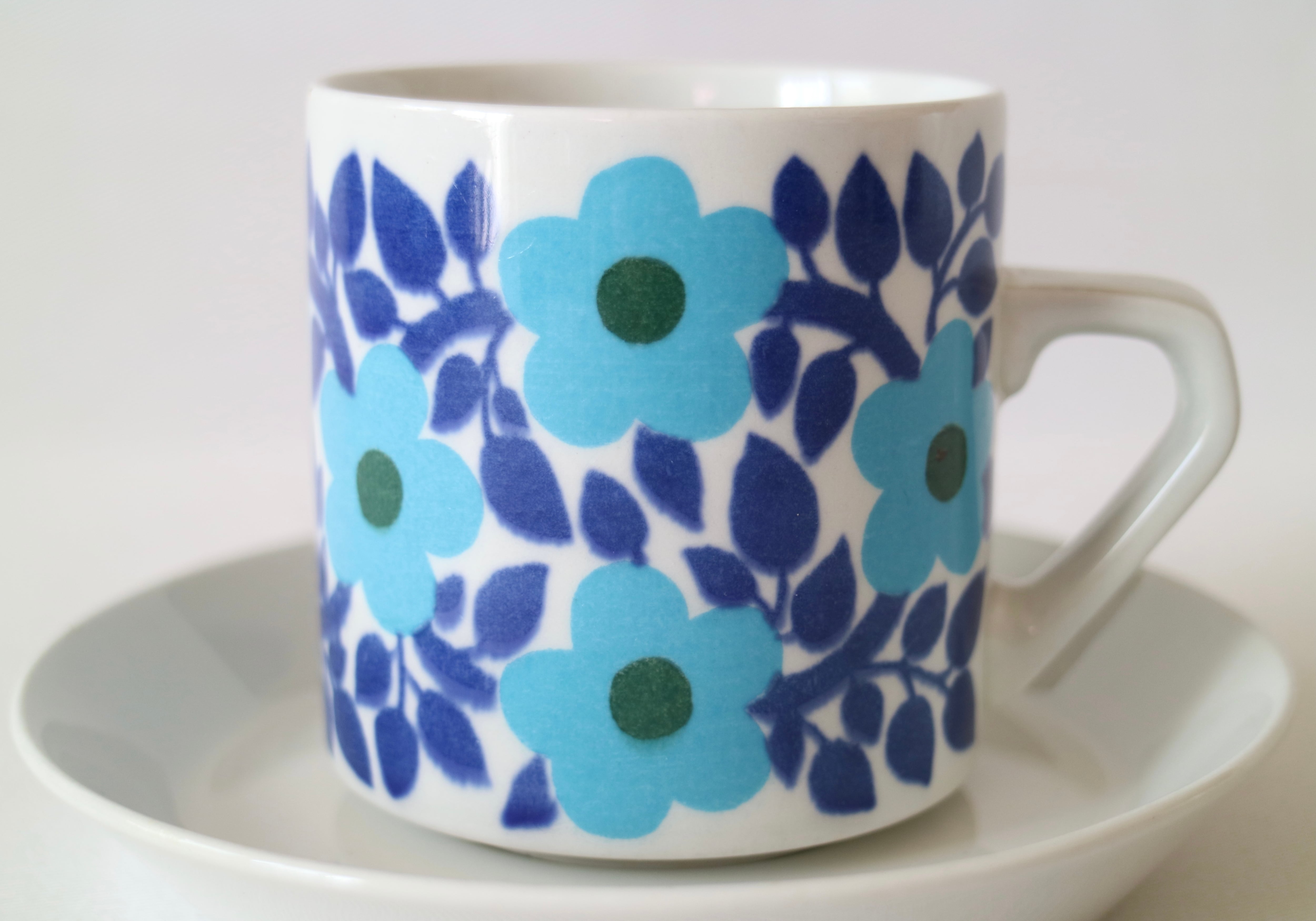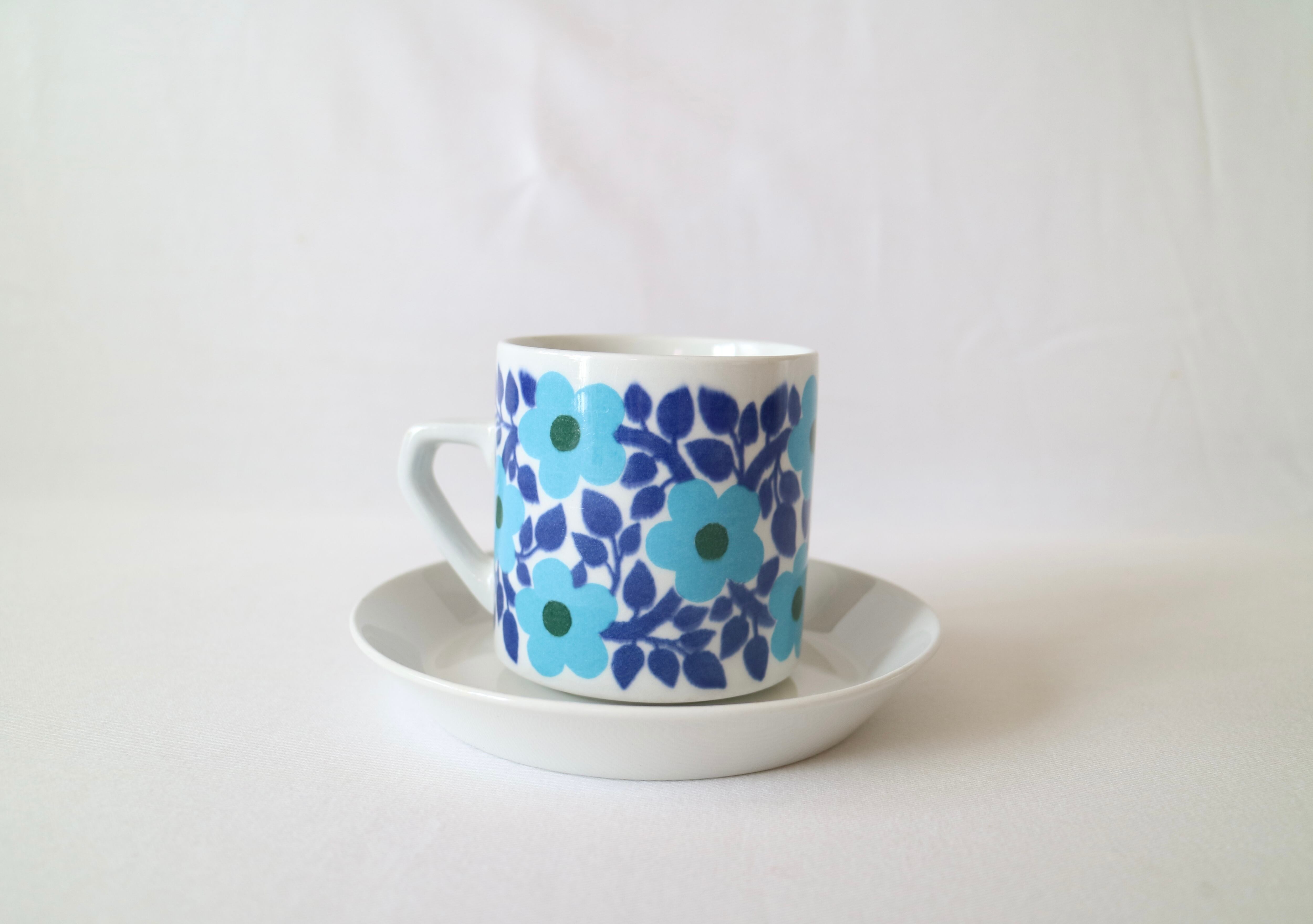 【vintage】ARABIA アラビア / Ahmet コーヒーカップ&ソーサー お花柄 ブルー No.2152