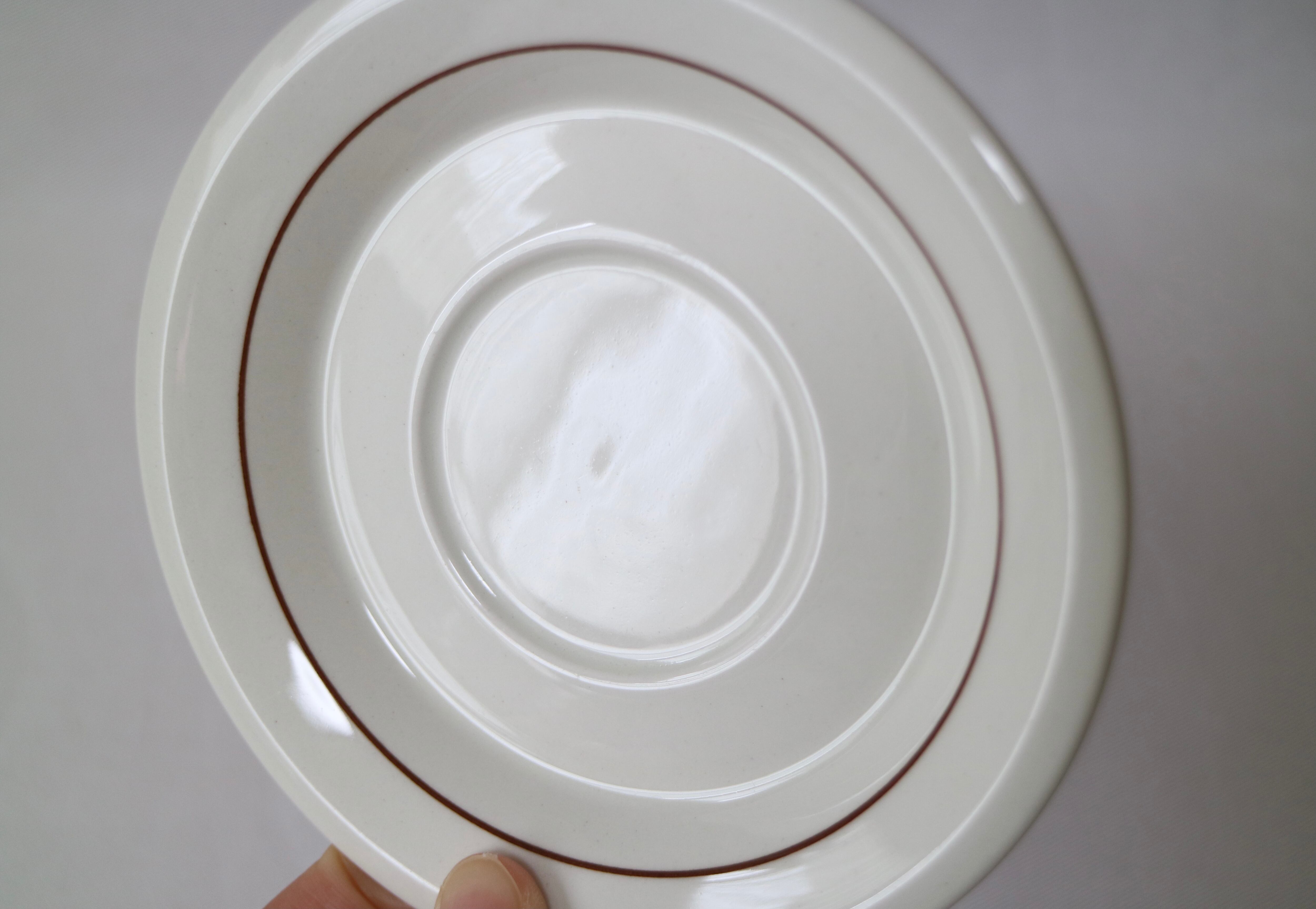 経年使用でカップ裏、高台が茶色くなっていますソーサー裏には目跡が三箇所付いています