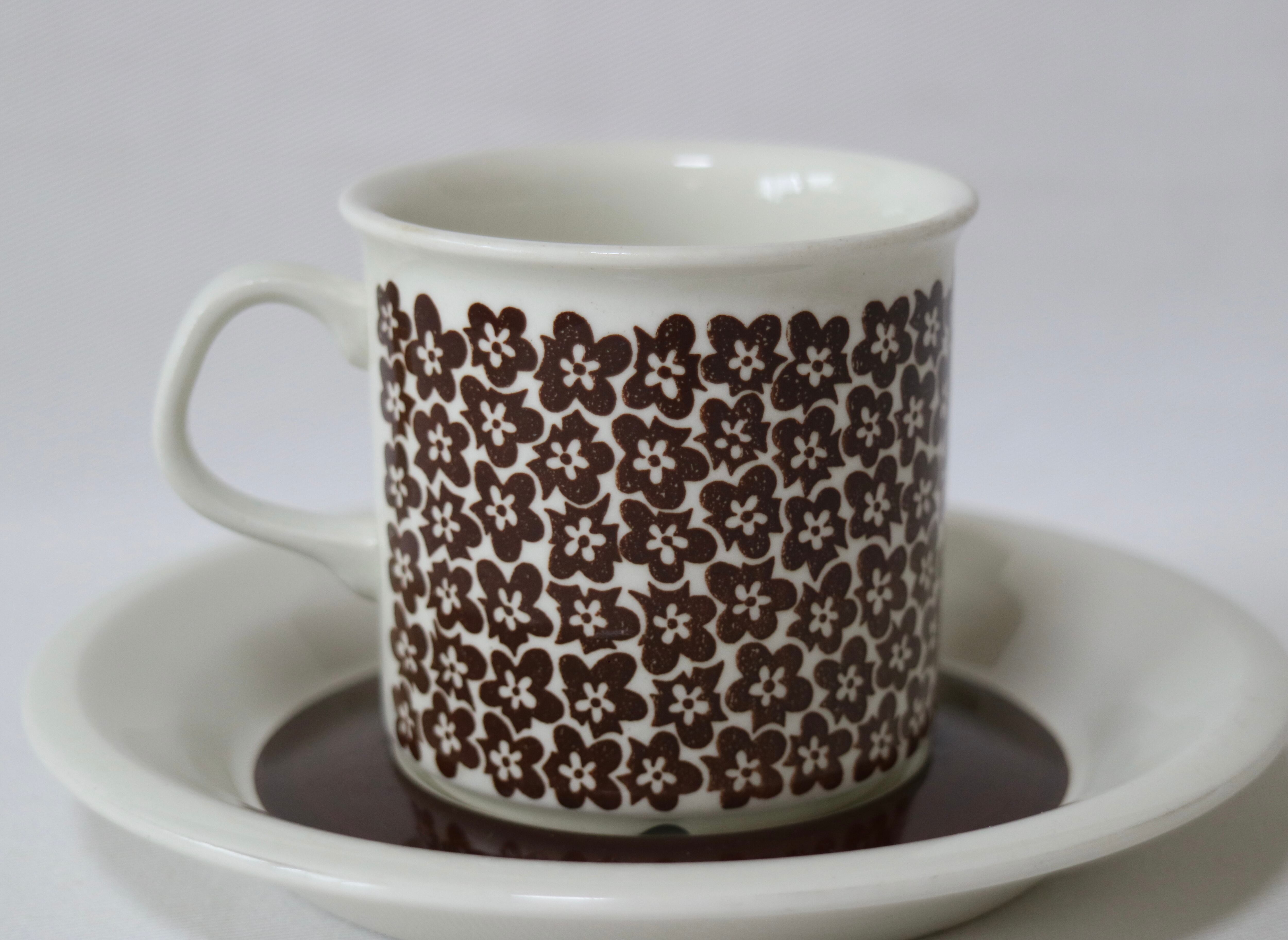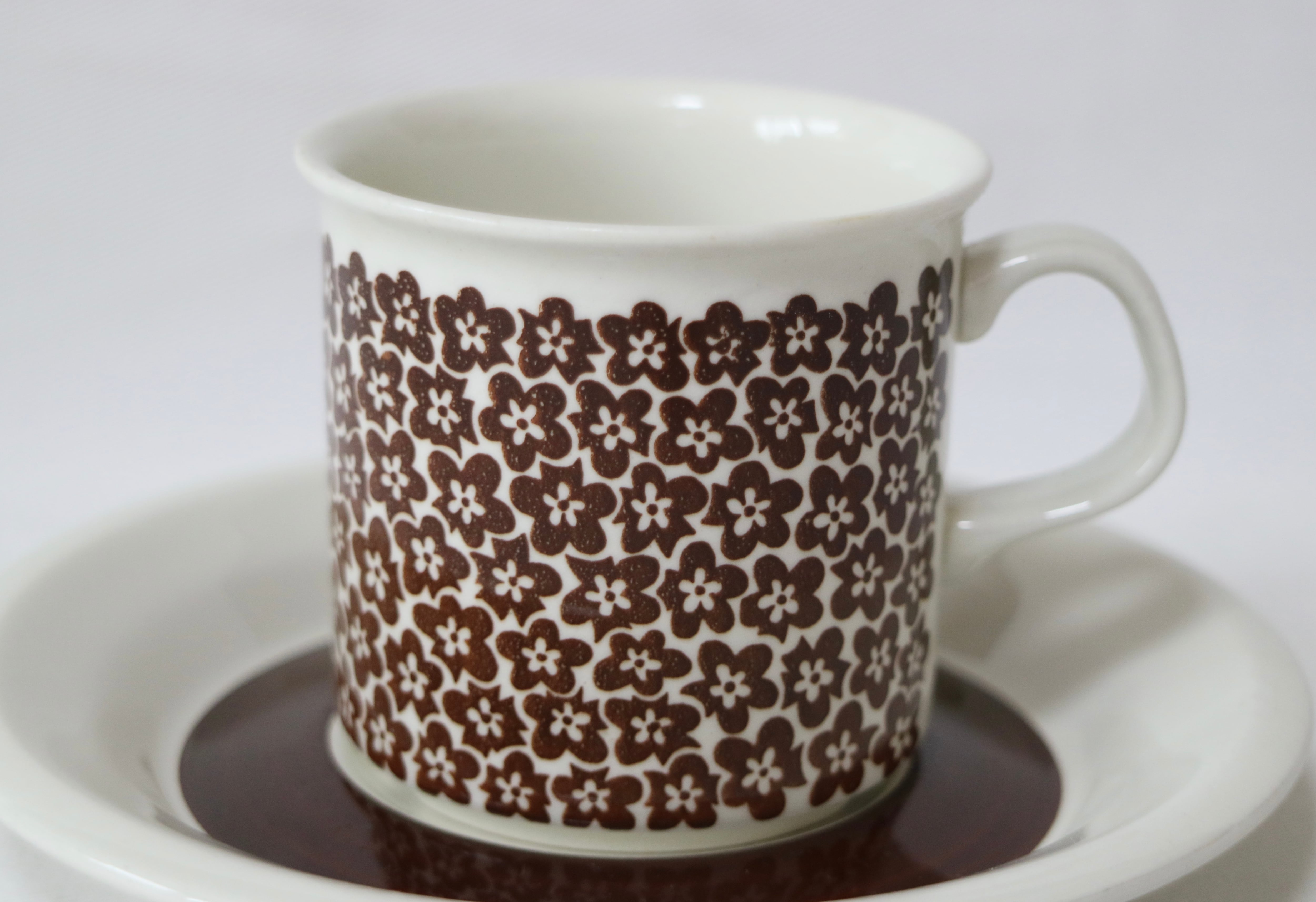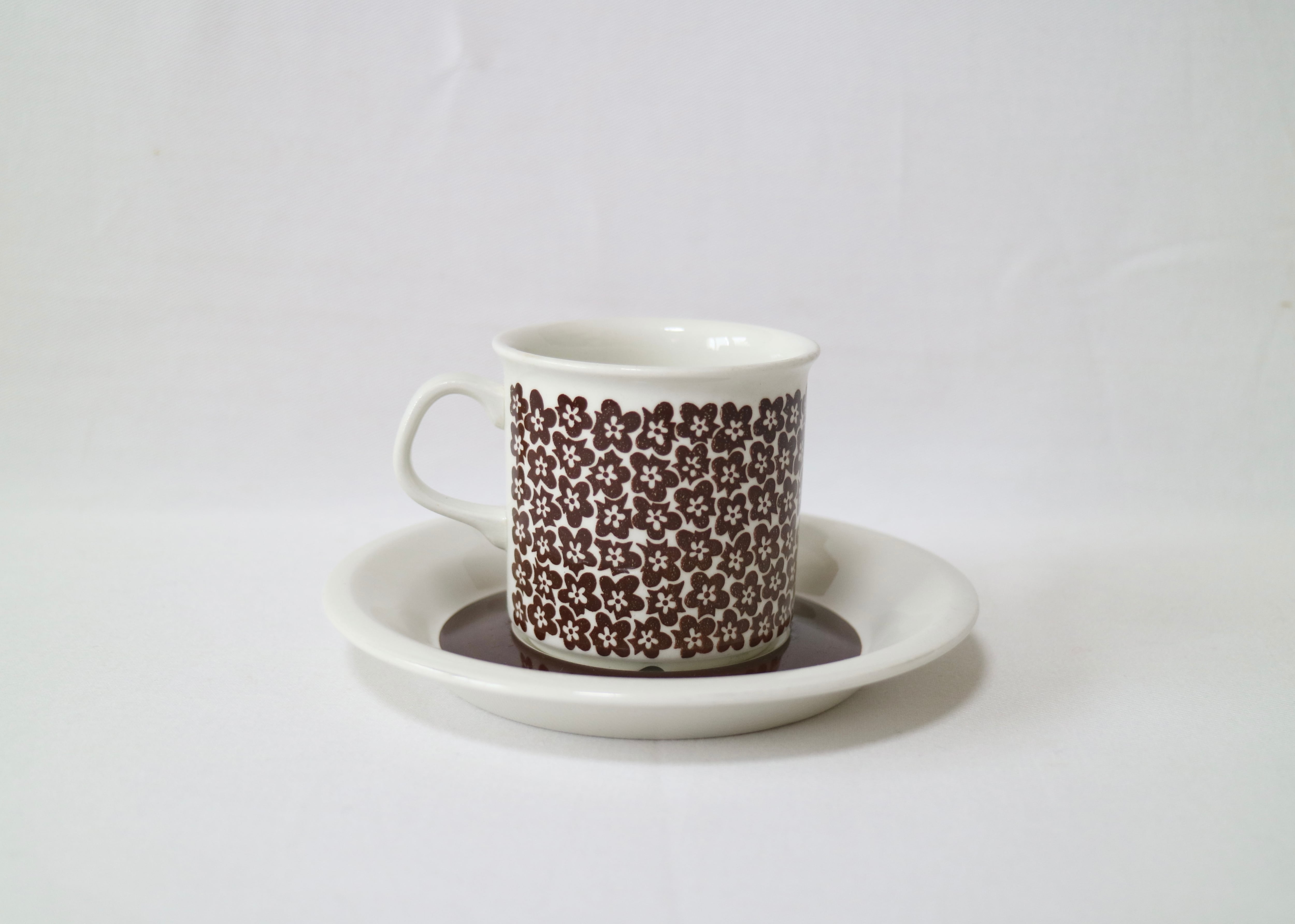 Inkeri Seppala(インケリ・セッパラ)がデコレーションデザインを手掛け、1974年から1979年に製造されました。イタリアのFaenza国際陶芸展で金賞に輝いたことから名付けられた由緒ある作品です。ブラウンの小さな小花がとても愛らしく温かみがある作品です。