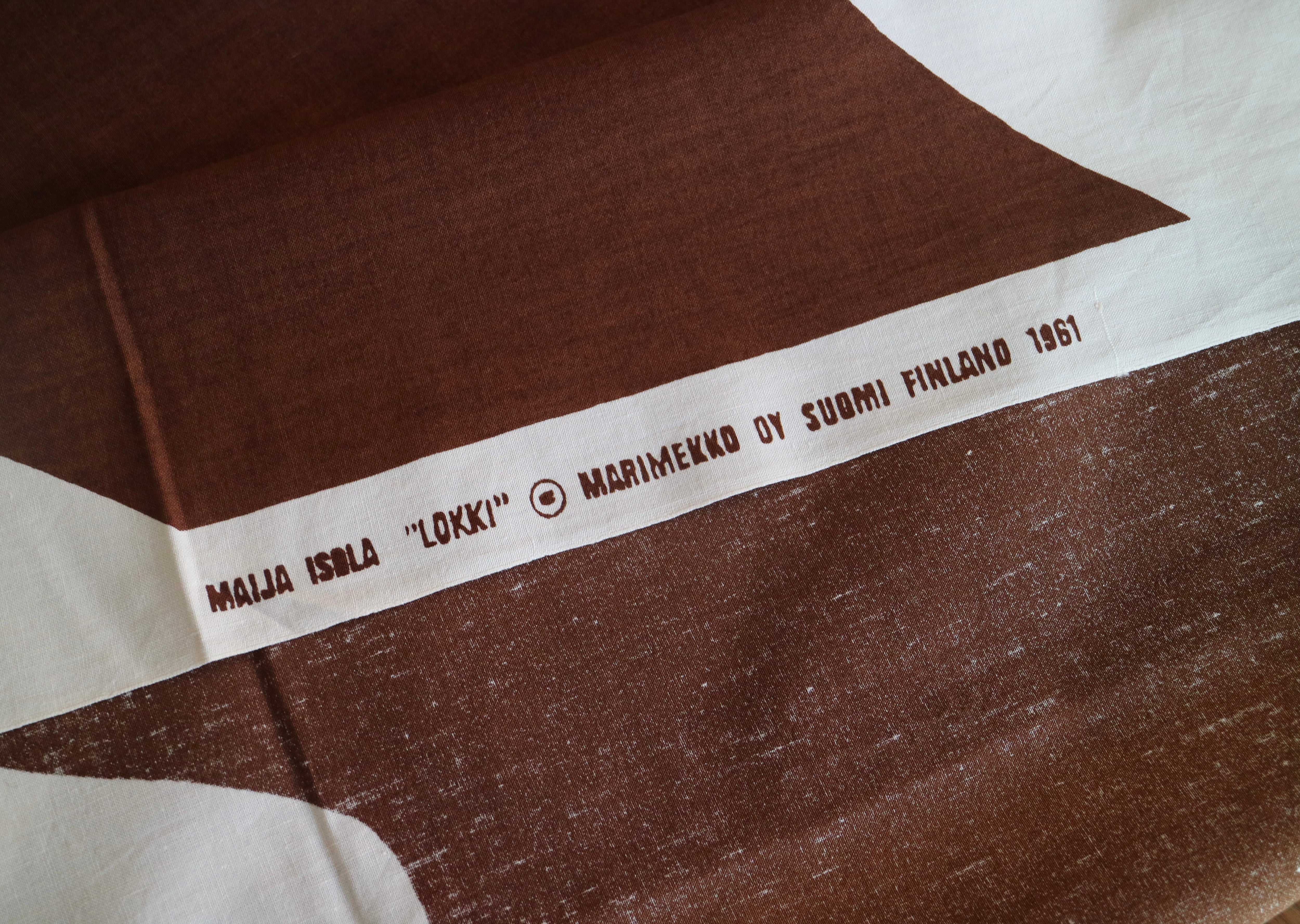 1961年にmaija isola(マイヤ・イソラ)がデザインしたLOKKI(ロッキ)のヴィンテージファブリックが届きました。"Lokki ロッキ"とは、フィンランド語で『かもめ』。落ち着いたブラウンカラーはあたたかな印象でどんなお部屋にも馴染みます。