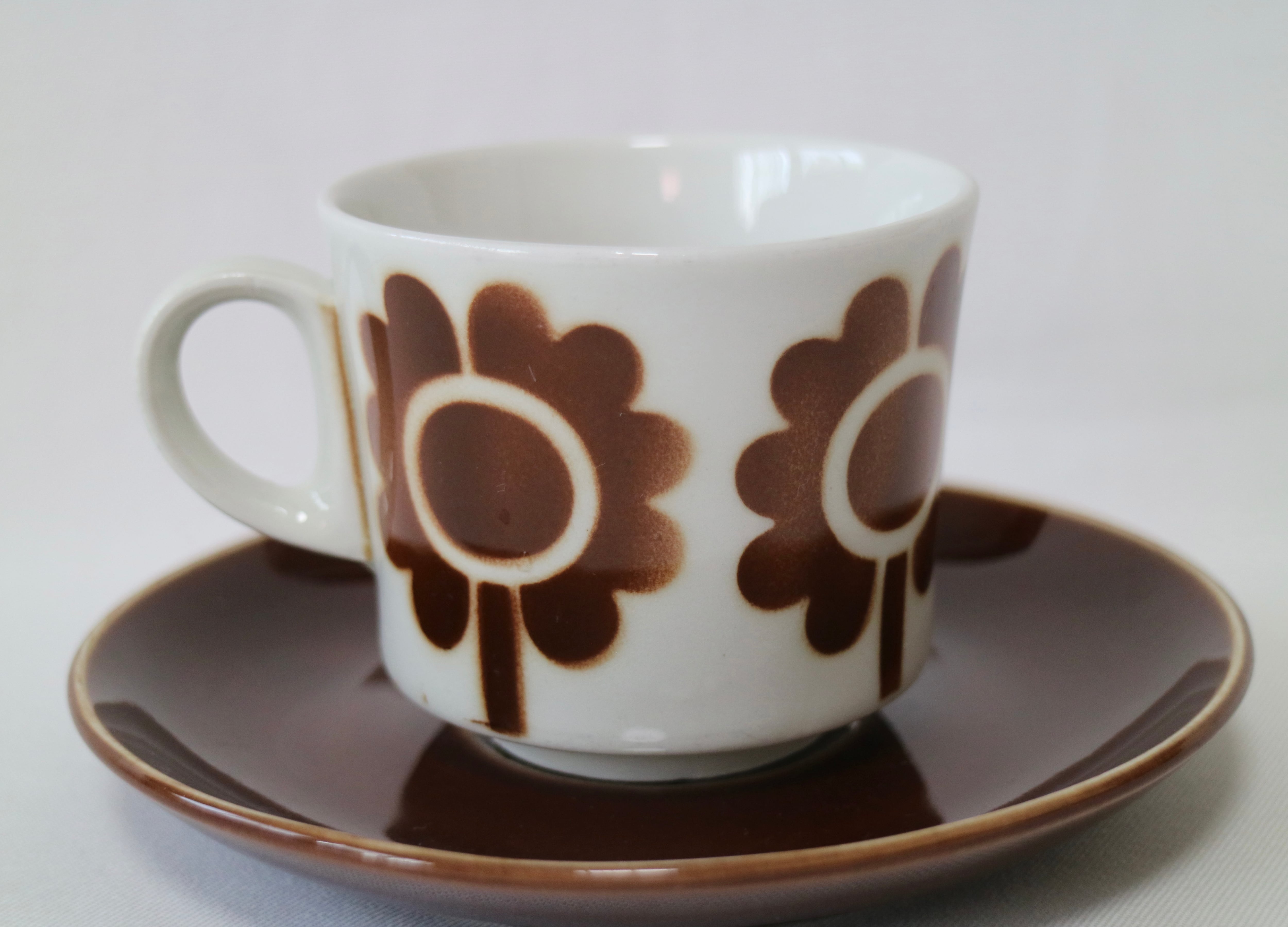 ARABIA社、ステンシルシリーズのカップ&ソーサーです。レトロなお花が並んだ可愛らしいデザインです。フォルムデザインはGoran Back(ゴラン•バック)が手掛けました。