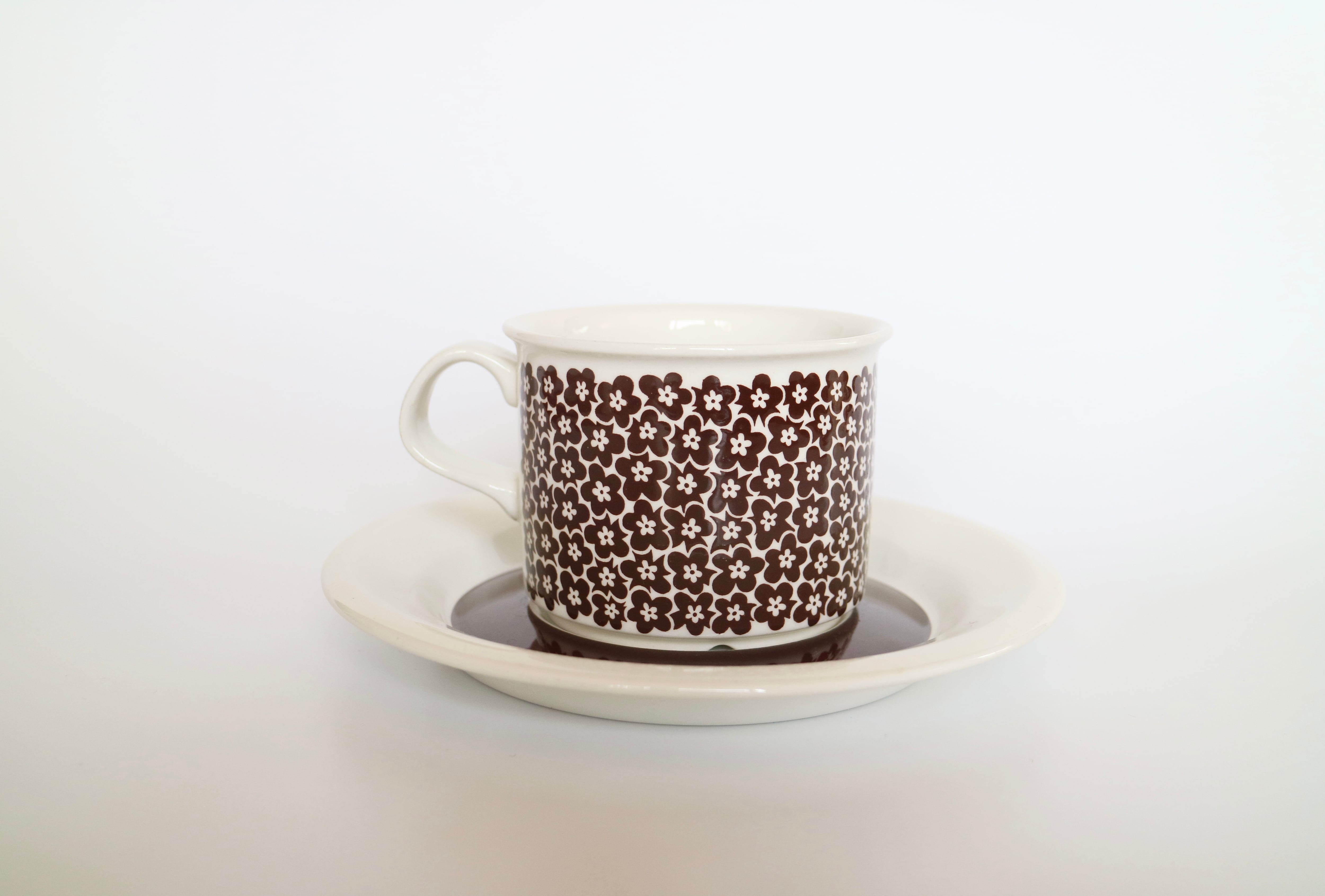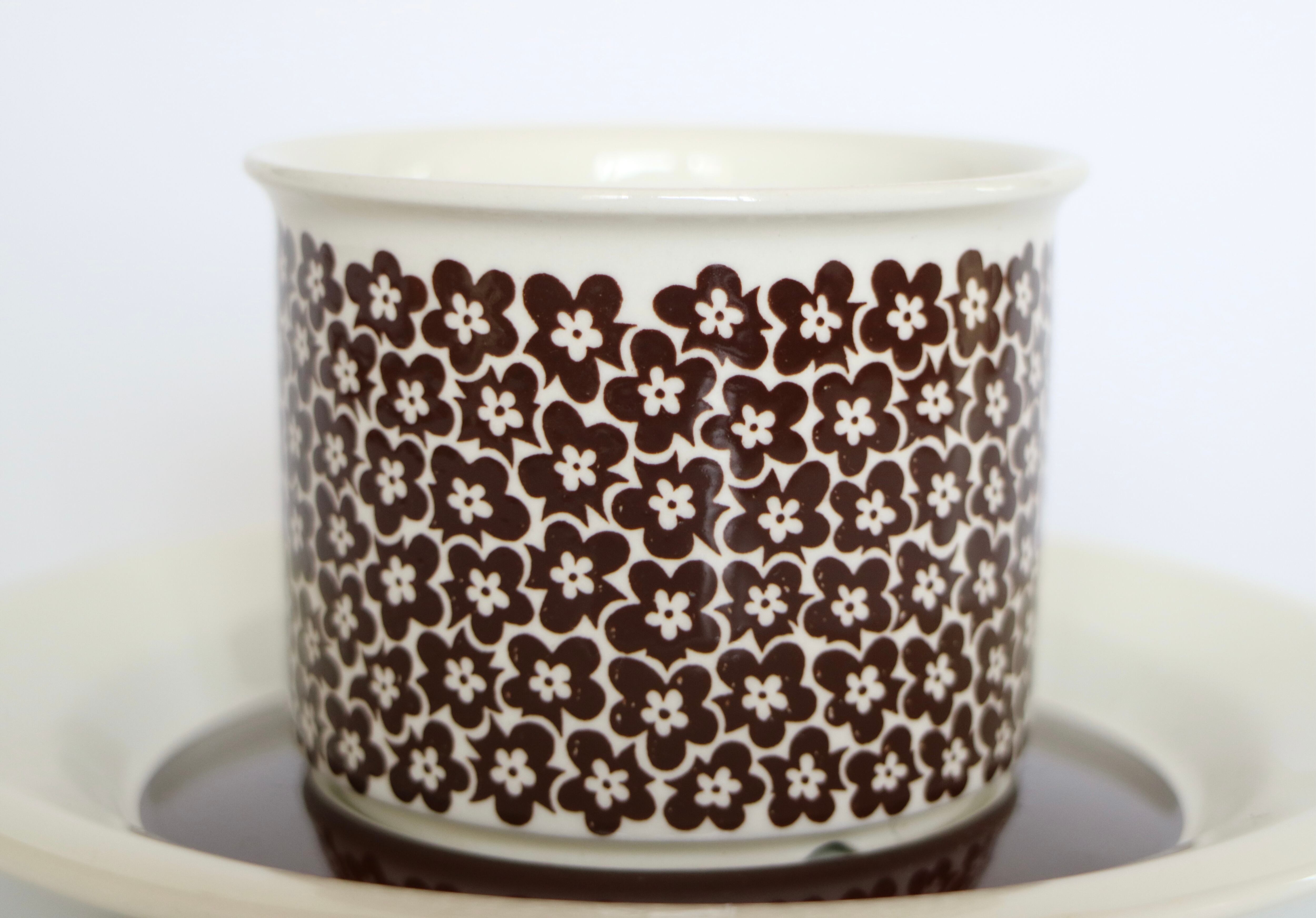Inkeri Seppala(インケリ・セッパラ)がデコレーションデザインを手掛け、1974年から1979年に製造されました。イタリアのFaenza国際陶芸展で金賞に輝いたことから名付けられた由緒ある作品です。ブラウンの小さな小花がとても愛らしく温かみがある作品です。