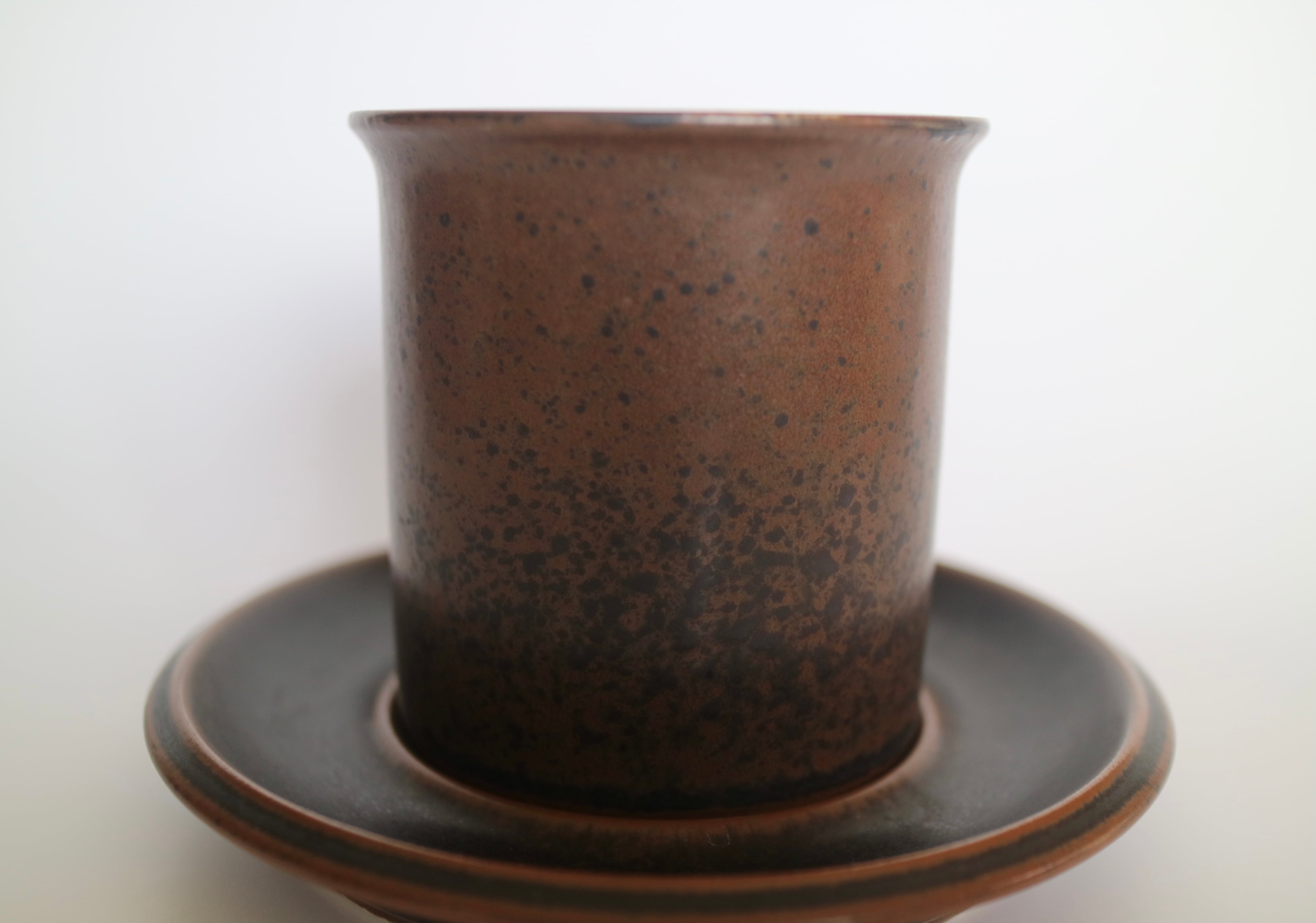 ARABIA社Ruska(ルスカ)のココアカップ&ソーサです。フィンランド語で紅葉を意味します。飽きのないシンプルな佇まい、独特の釉薬により生まれる味わい深い色合いが魅力的です。