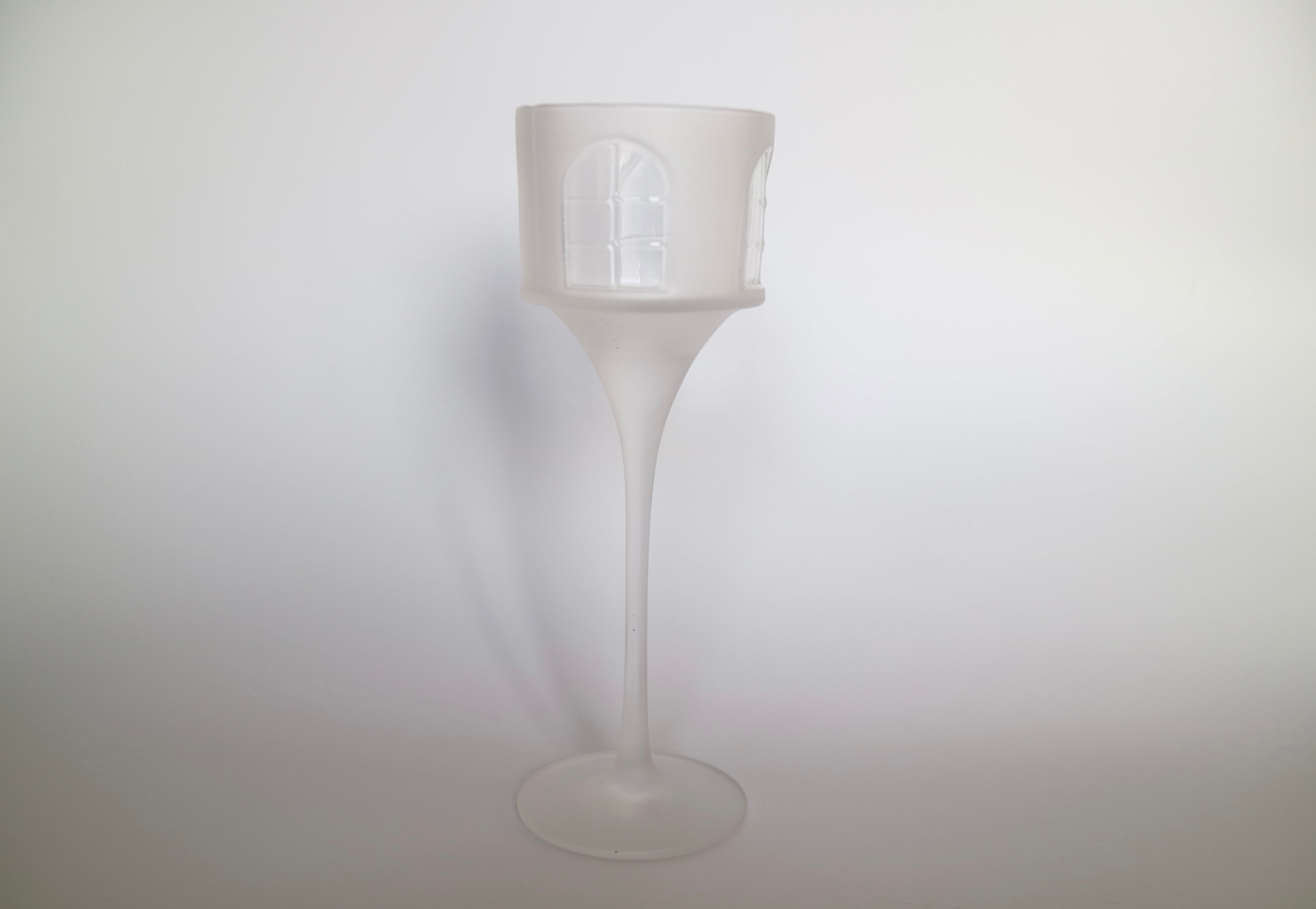フィンランド、イッタラのBalladi(バラディ)のキャンドルホルダー(脚付き)です。キャンドルを灯す部分は家の形を模して、壁は摺りガラス、窓の部分は透明ガラスにして、窓から光がこぼれるようなデザインになっています。