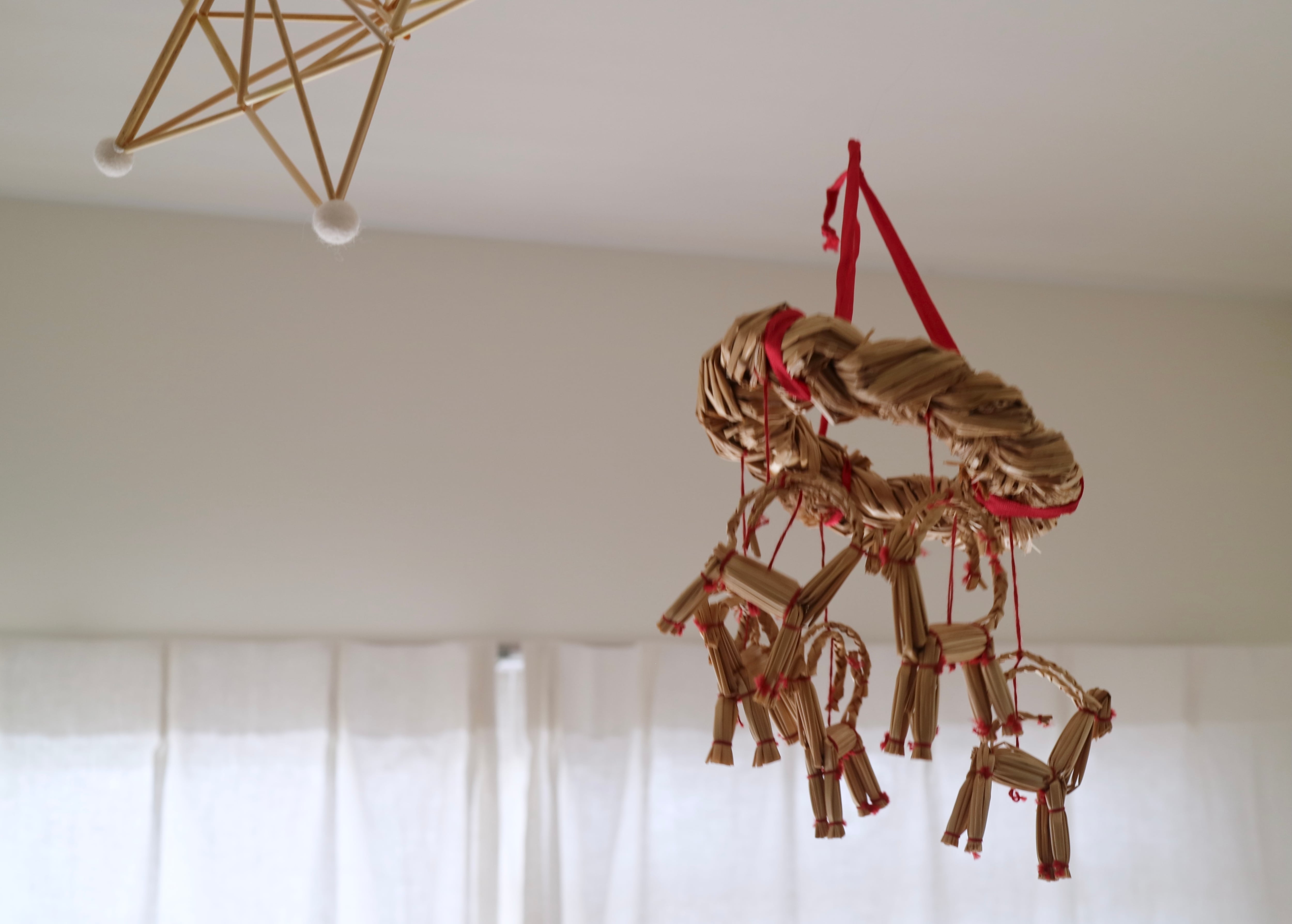 こちらは麦藁で製作されたオルキプッキというヤギの飾りものです。北欧ではクリスマスデコレーションとしてあちらこちらで見かけます。