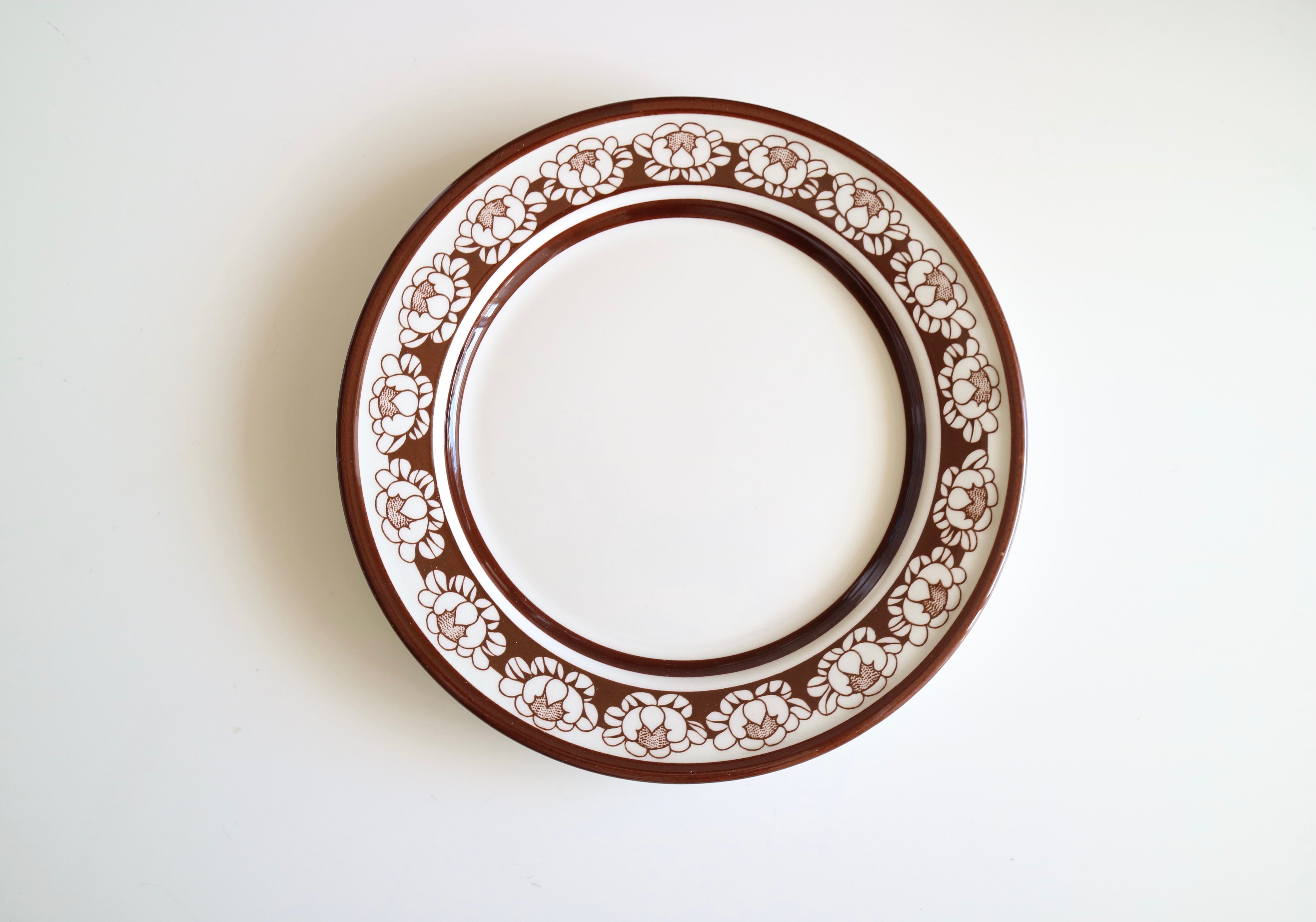 ARABIA(アラビア)Katrilli (カトリーリ)シリーズのデザートプレート(17.5cm)です。プレートにはブラウンカラーで蓮の花がぐるりと描かれており、大人っぽく上品な印象です。