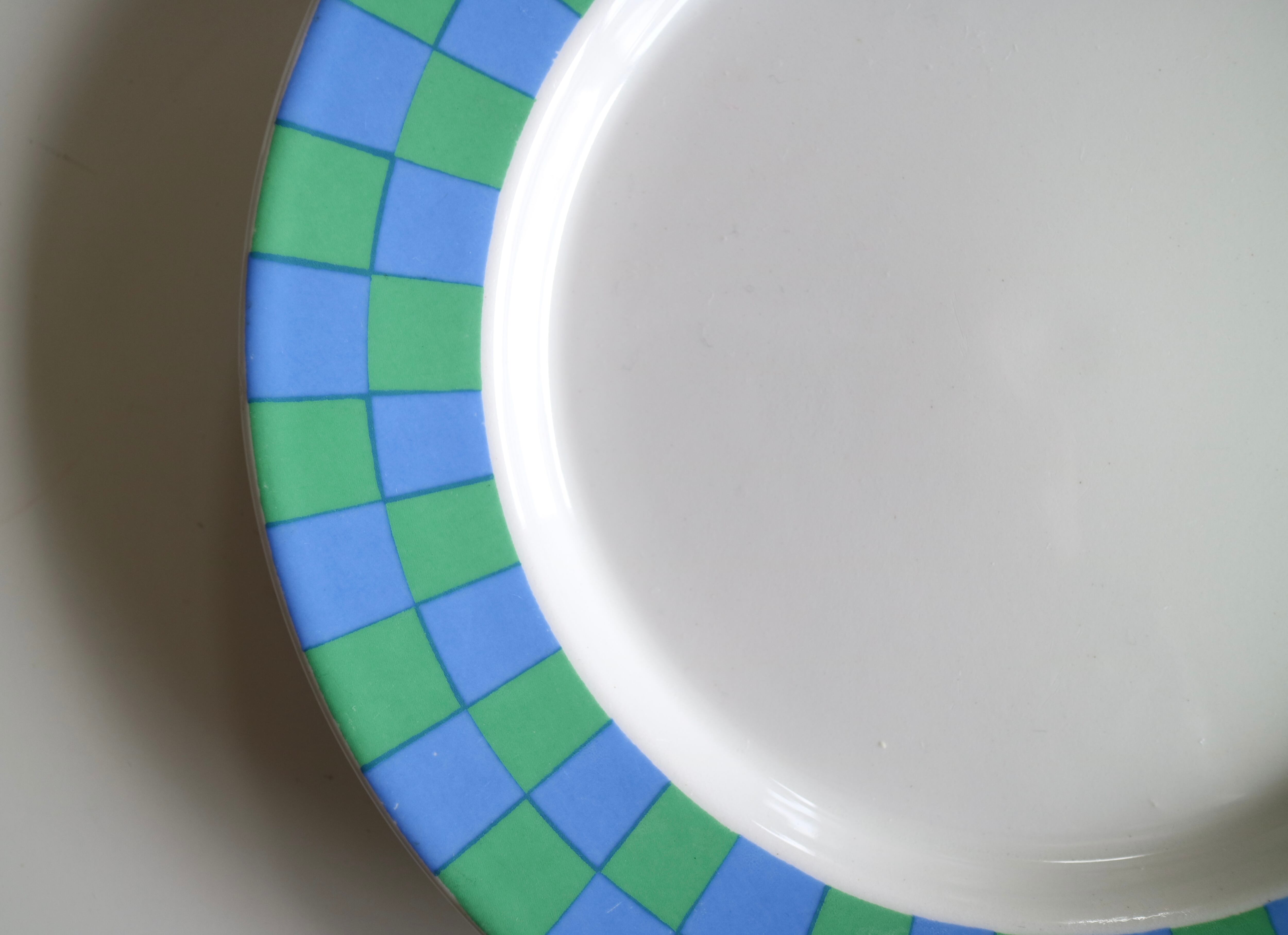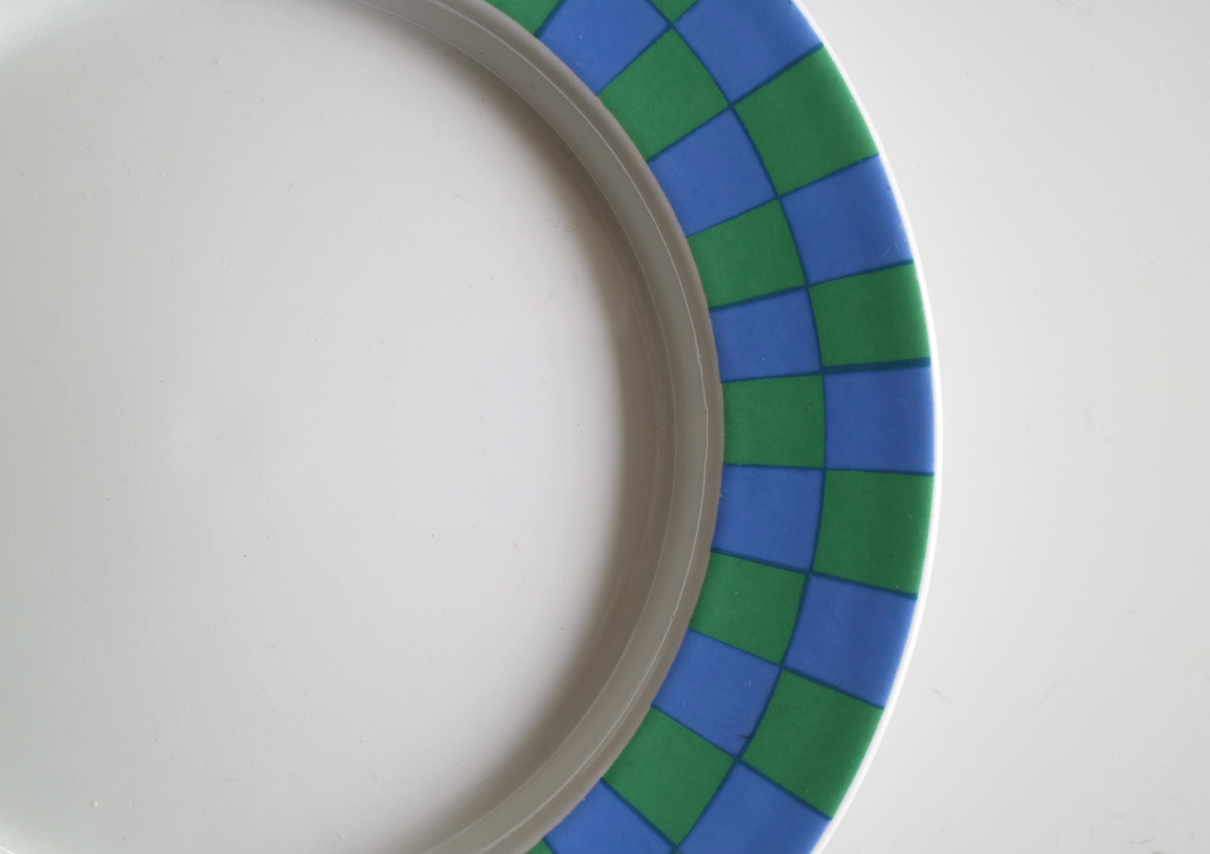 ブルーとグリーンの格子柄はEsteri Tomulaによって手掛けられ、レトロな雰囲気のデザインが素敵な作品です。赤色×青色、緑色×青色の2色展開で、こちらは緑色×青色のお品です。