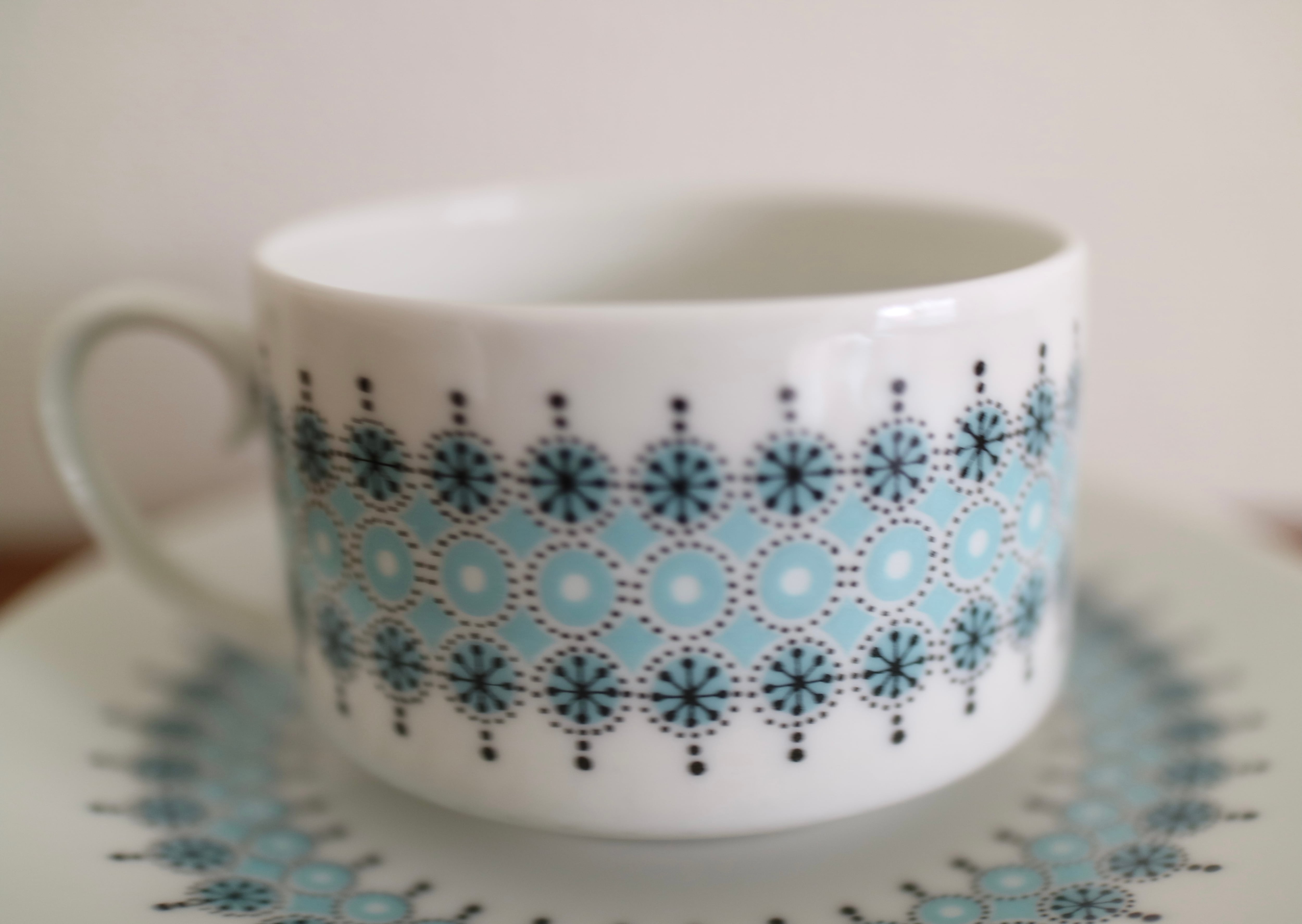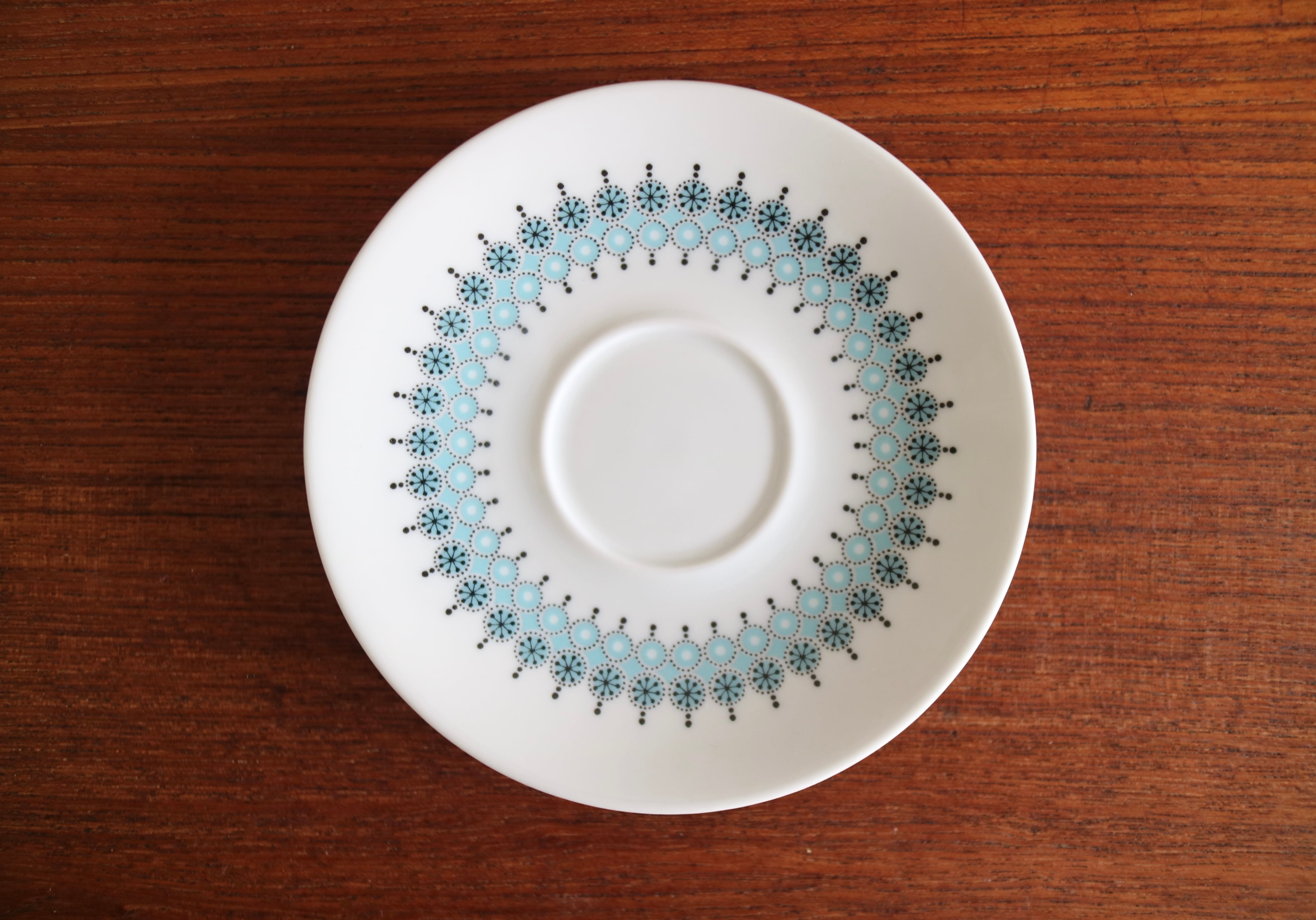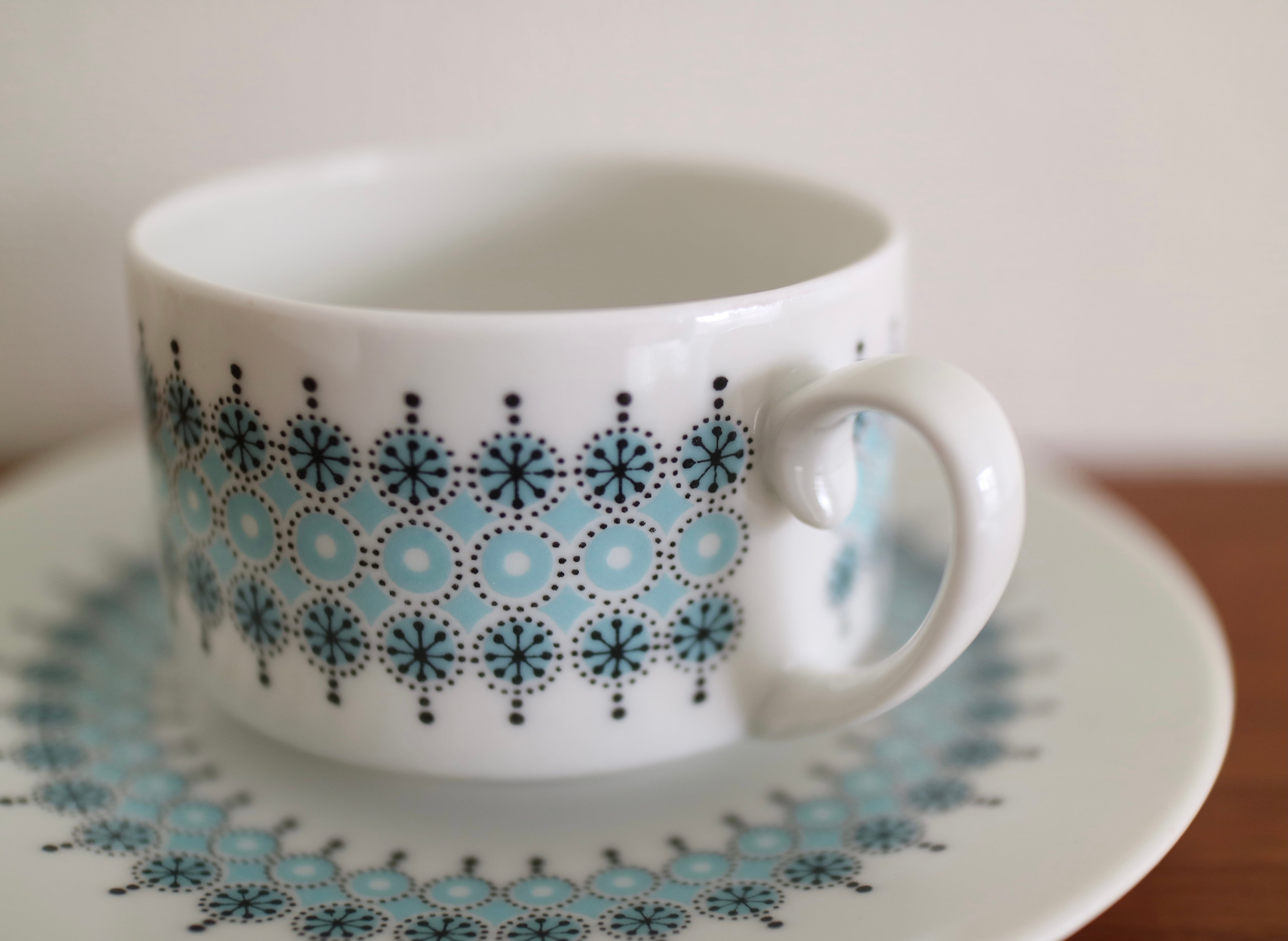 ARABIA社、Louhi(ロウヒ)シリーズのカップ&ソーサーです。デコレートデザインはRaija Uosikkinen(ライヤ・ウオシッキネン)フォルムデザインはRichard Lindh(リカルド・リンド)。結晶のようなアイスブルーの絵柄が爽やかでとても可愛らしい逸品です。