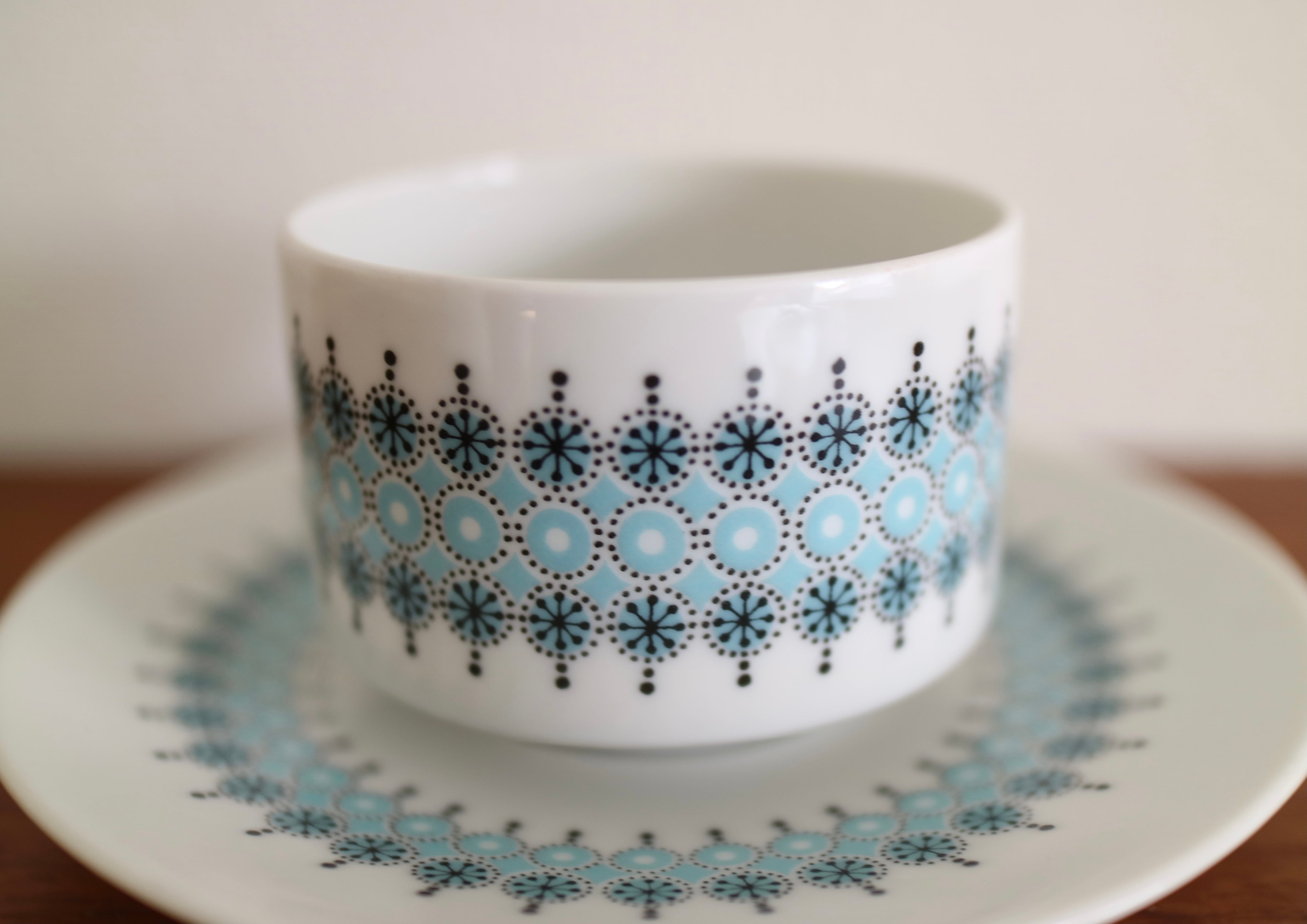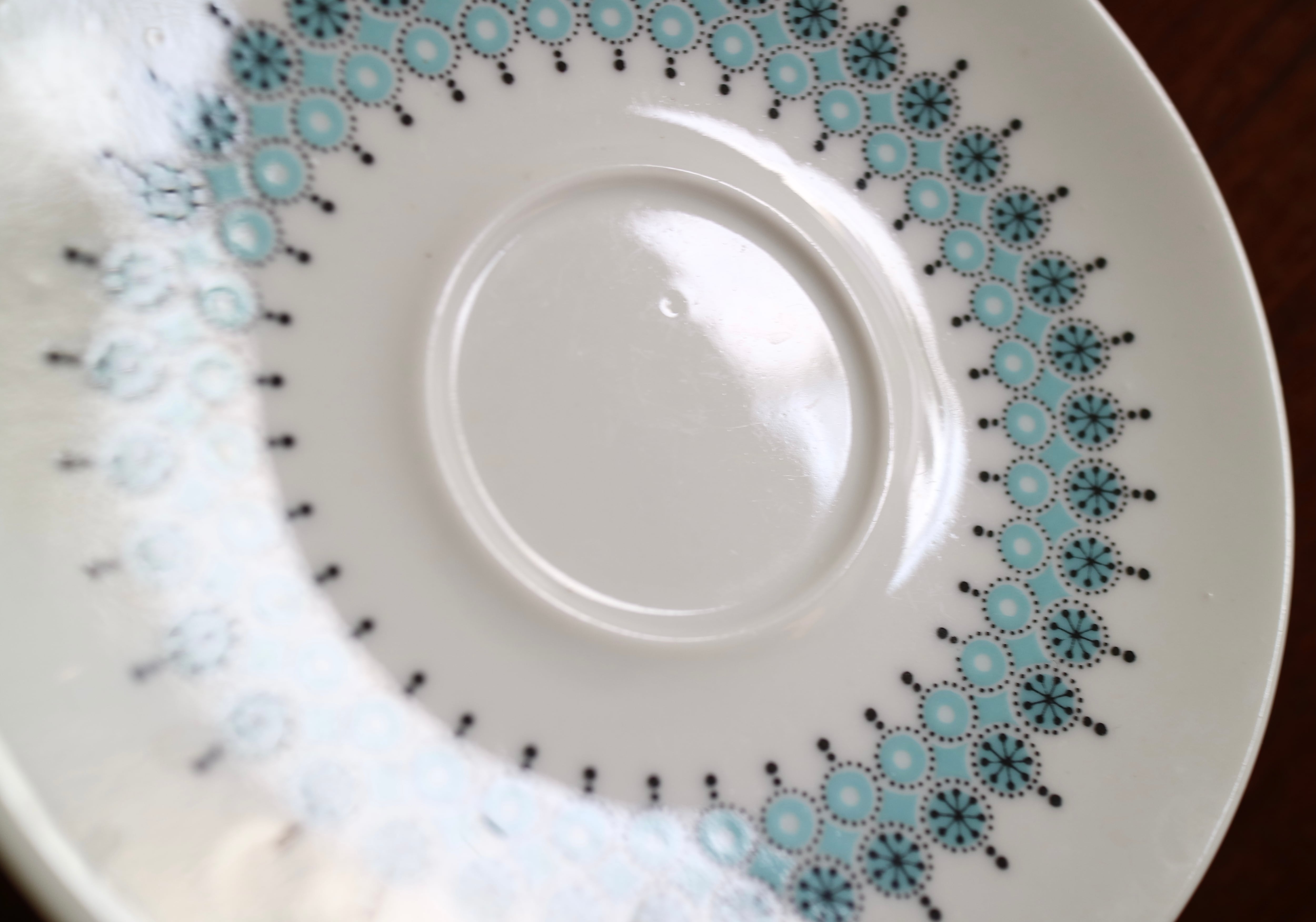 ARABIA社、Louhi(ロウヒ)シリーズのカップ&ソーサーです。デコレートデザインはRaija Uosikkinen(ライヤ・ウオシッキネン)フォルムデザインはRichard Lindh(リカルド・リンド)。結晶のようなアイスブルーの絵柄が爽やかでとても可愛らしい逸品です。