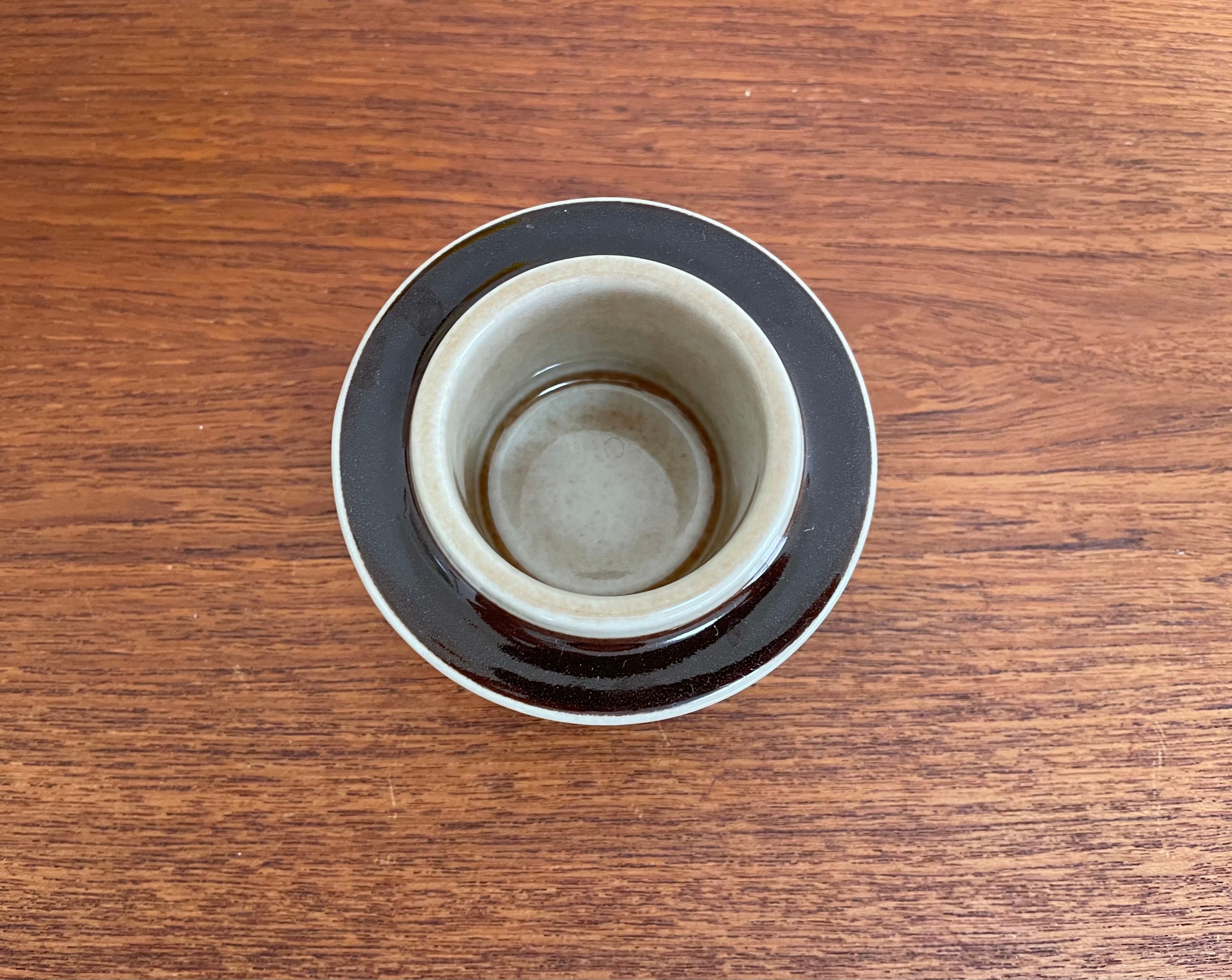 ARABIA社Ruija(ルイヤ)のエッグスタンドが入荷しました。ベースのベージュカラーに、ブラウンやダークグリーンで手描きの葉っぱや実の絵柄が描かれています。 北欧食器のぬくもりを感じられるデザインです。