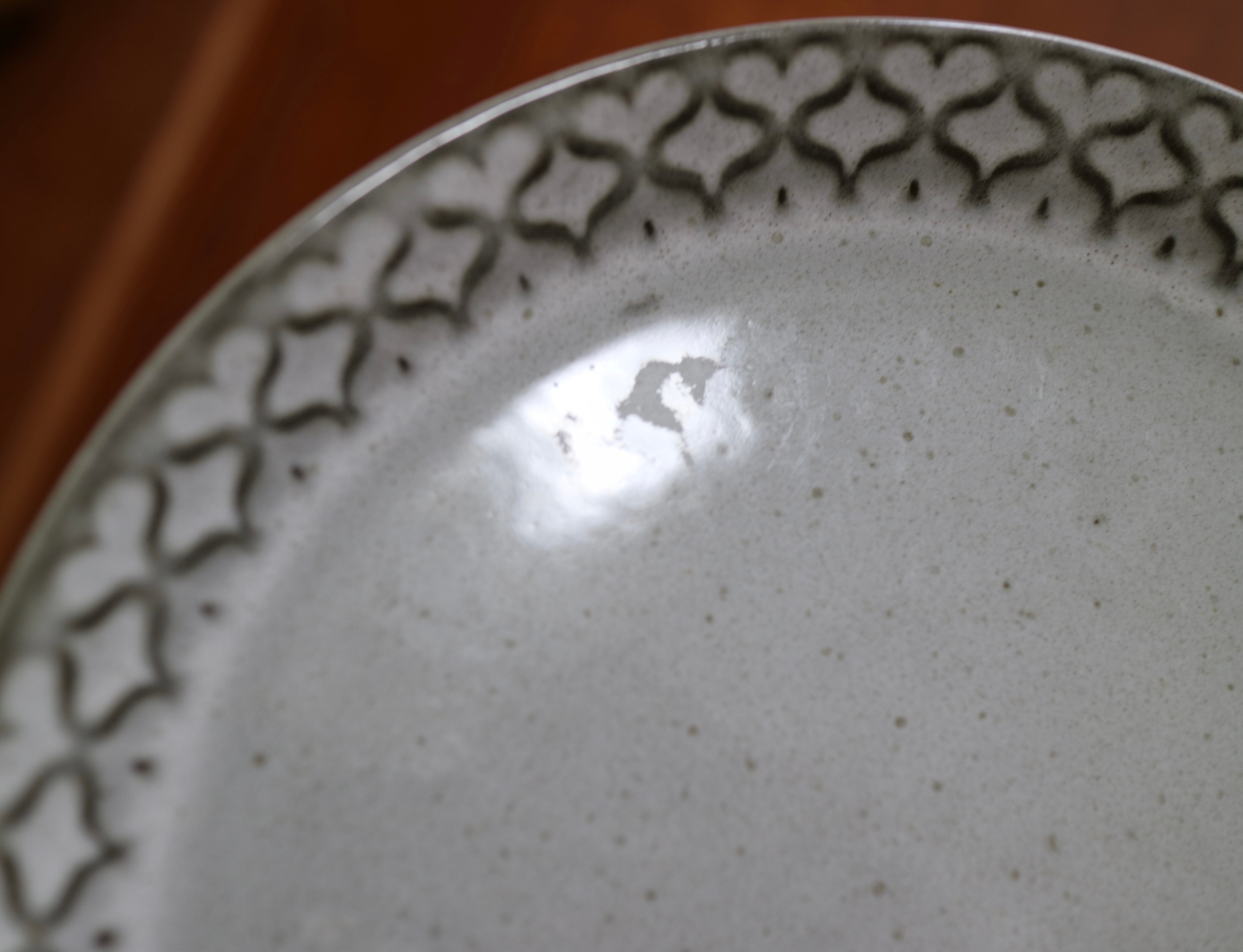 写真9-11枚目 プレート表面、釉薬の剥がれがいくつかございます。その他、製造時から出来た色ムラございますが、欠けやヒビなどの大きなダメージは無く良好なコンディションを保っています。