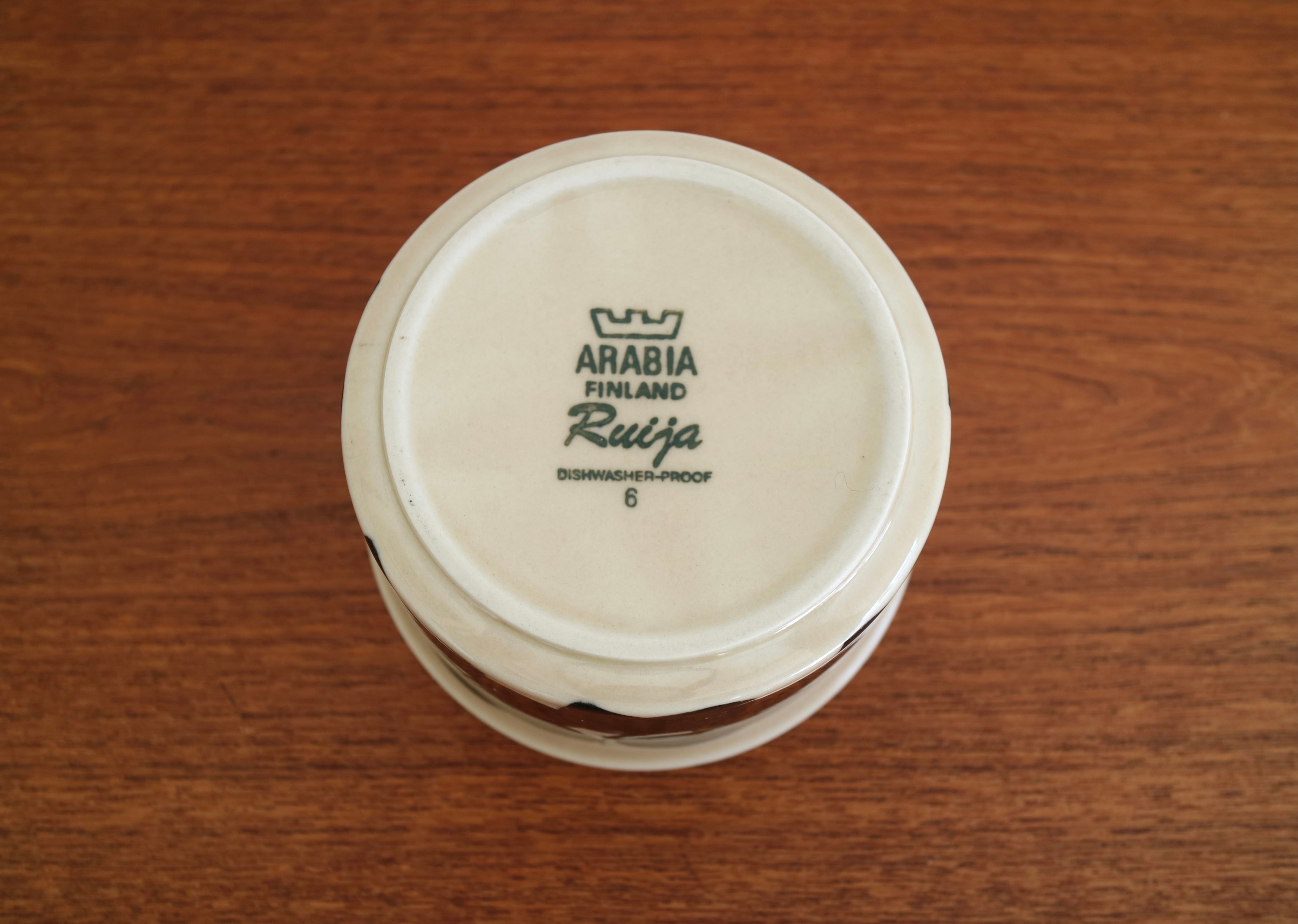 ARABIA社Ruija(ルイヤ)シリーズのシュガーポットです。デザインはライヤ・ウオシッキネンで、カップに葉がハンドペイントで描かれており、心温まる作品です。