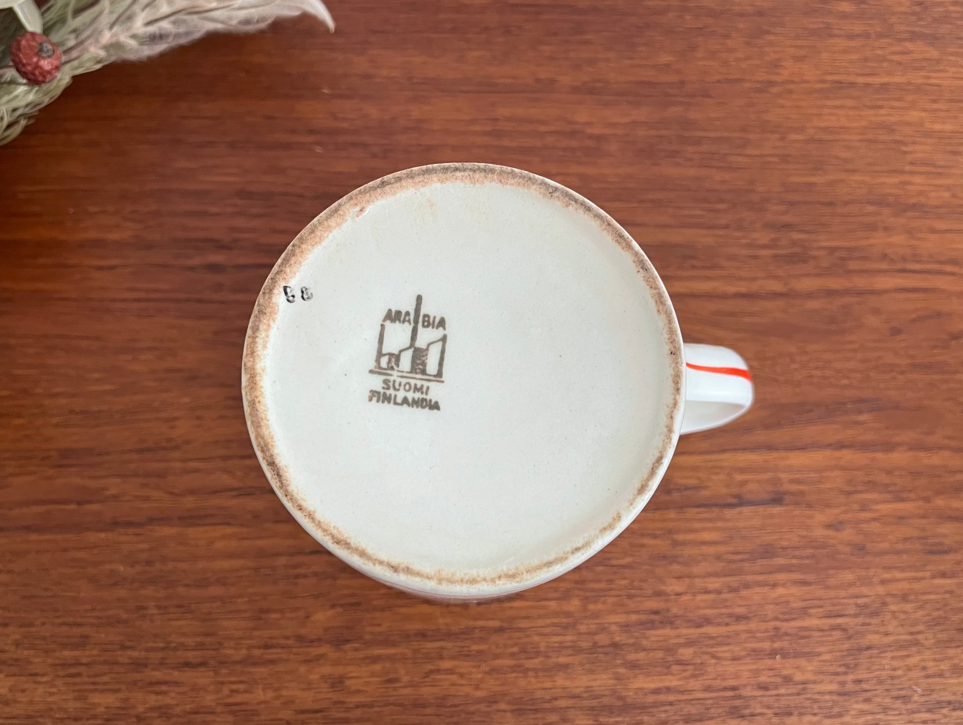 ARABIA社、Walt Disneyのミッキーマウスのマグカップです。ARABIA社は1937年-1945年までディズニーキャラクターの絵付けシリーズも製造していました。こちらのプレートは、1932〜1949年のバックスタンプが刻印されているので当時製造されていたお品と思われます。コレクターズアイテムとしてフィンランドでも入手困難な稀少なマグカップとなっておりますので、お探しだった方は是非ご検討くださいませ。