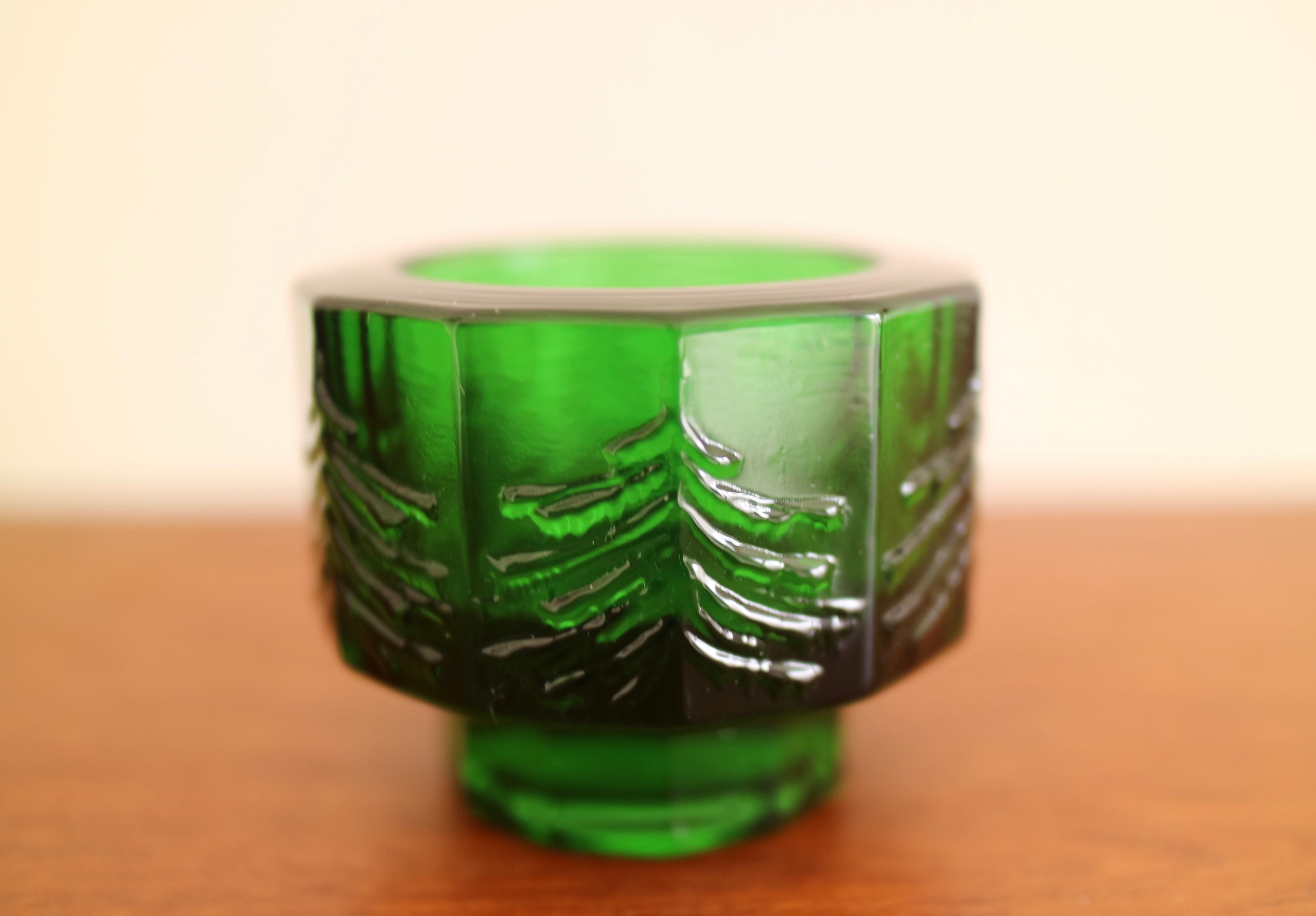 Jorma Vennola (ヨルマ・ヴェンノラ)がデザインした"KUUSI"シリーズのキャンドルホルダー(小サイズ)です。通常はクリアカラーですが、こちらは希少なグリーンカラーのキャンドルホルダーです。