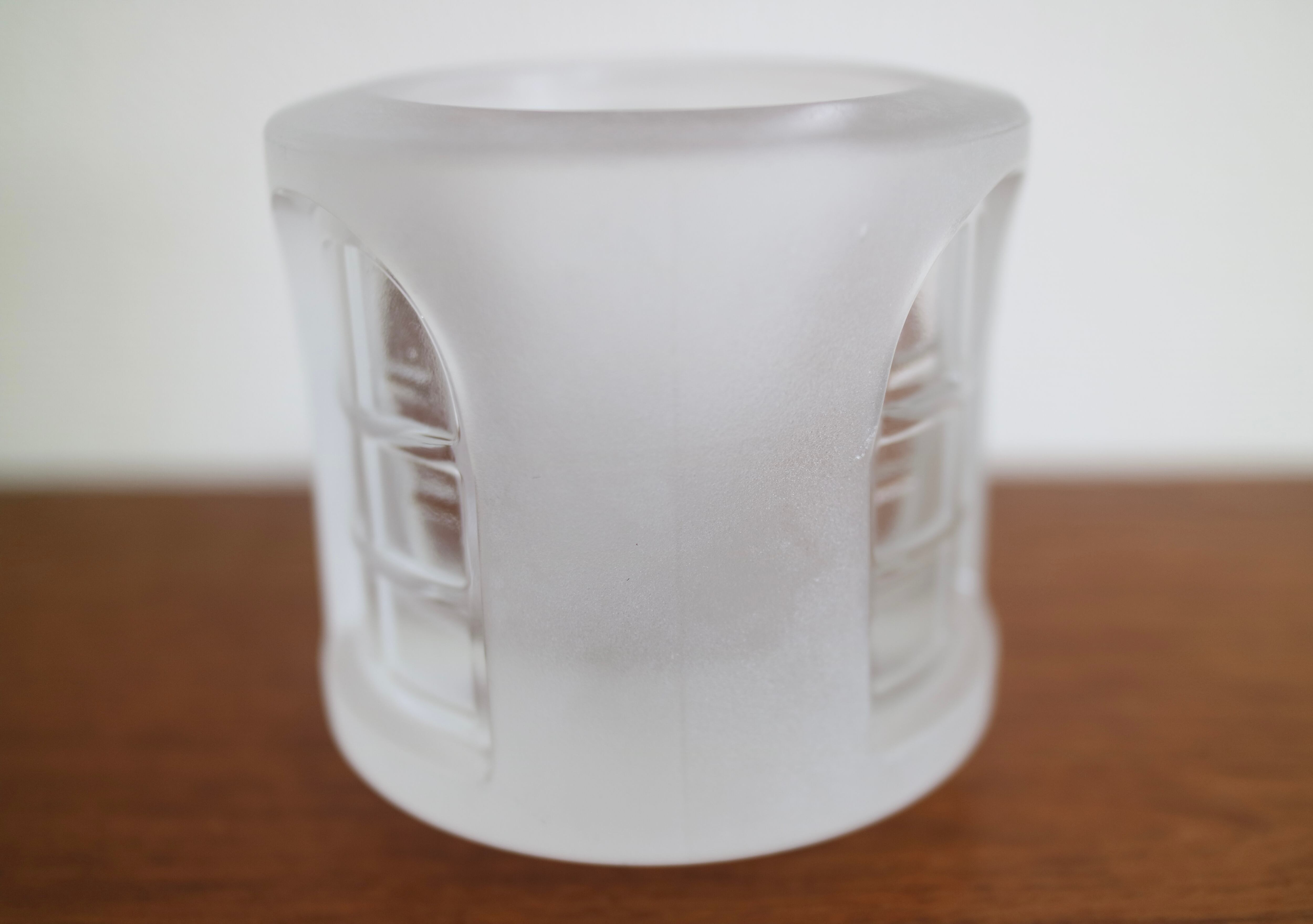 フィンランド、イッタラのBalladi(バラディ)のキャンドルホルダー 大です。バラディとはフィンランド語でバラード(物語るような歌)を意味します。家の形を模して、壁は摺りガラス、窓の部分は透明ガラスにして、光が窓からこぼれる様な演出をしてくれます。デザインはJorma Vennola(ヨルマ・ヴェンノラ)。Balladiシリーズには、吊り下げて使うタイプや背の高いものなど様々な形のキャンドルホルダーがありますが、こちらは卓上タイプです。