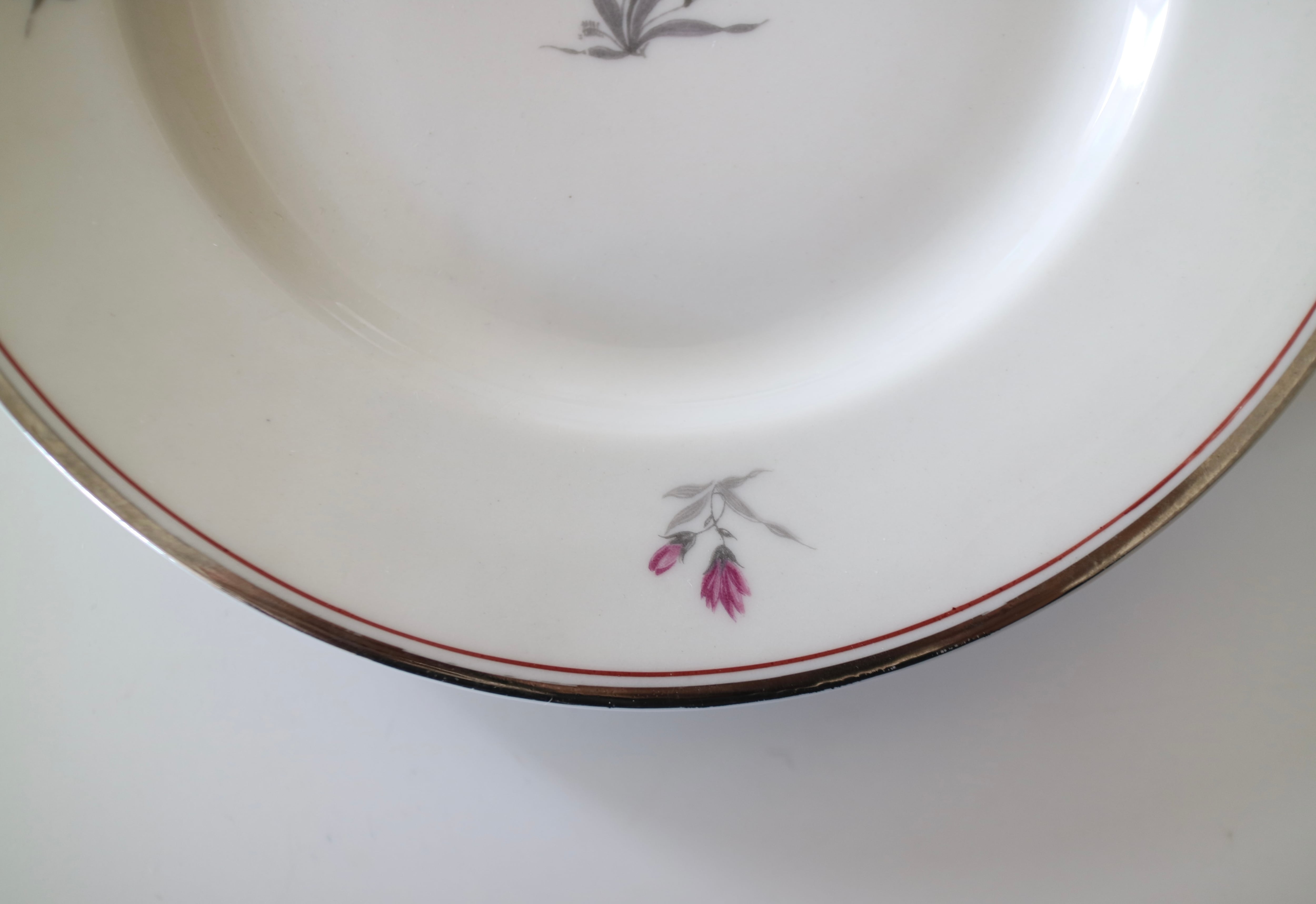 ARABIA社のピンクのお花が描かれたプレートです。お皿の真ん中に1つ、リムに4つ小さな可愛らしいお花が描かれています。