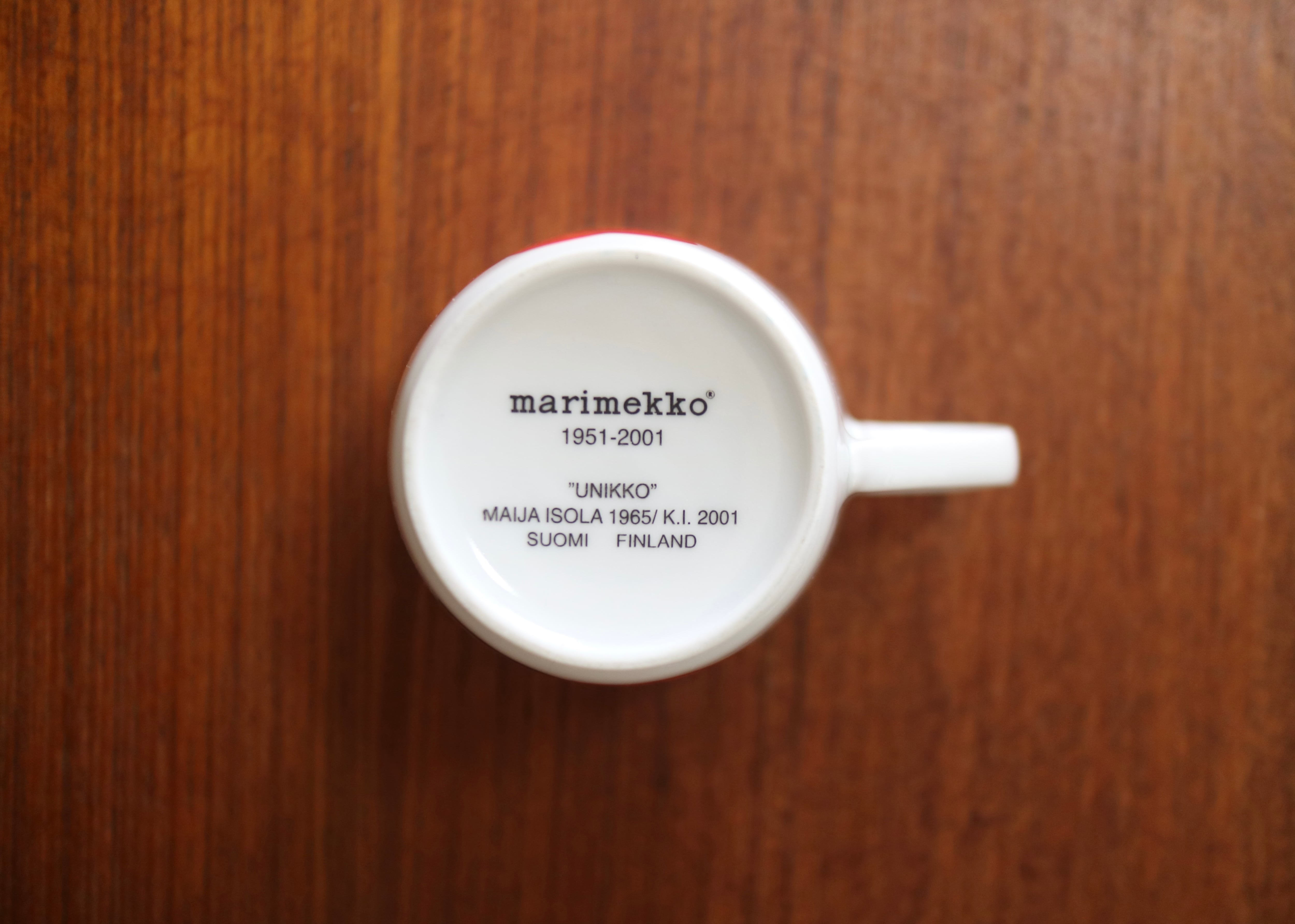 marimekko社、レッドカラーのウニッコカップです。こちらは2001年にウニッコ50周年を記念して限定生産された大変希少なお品です。
