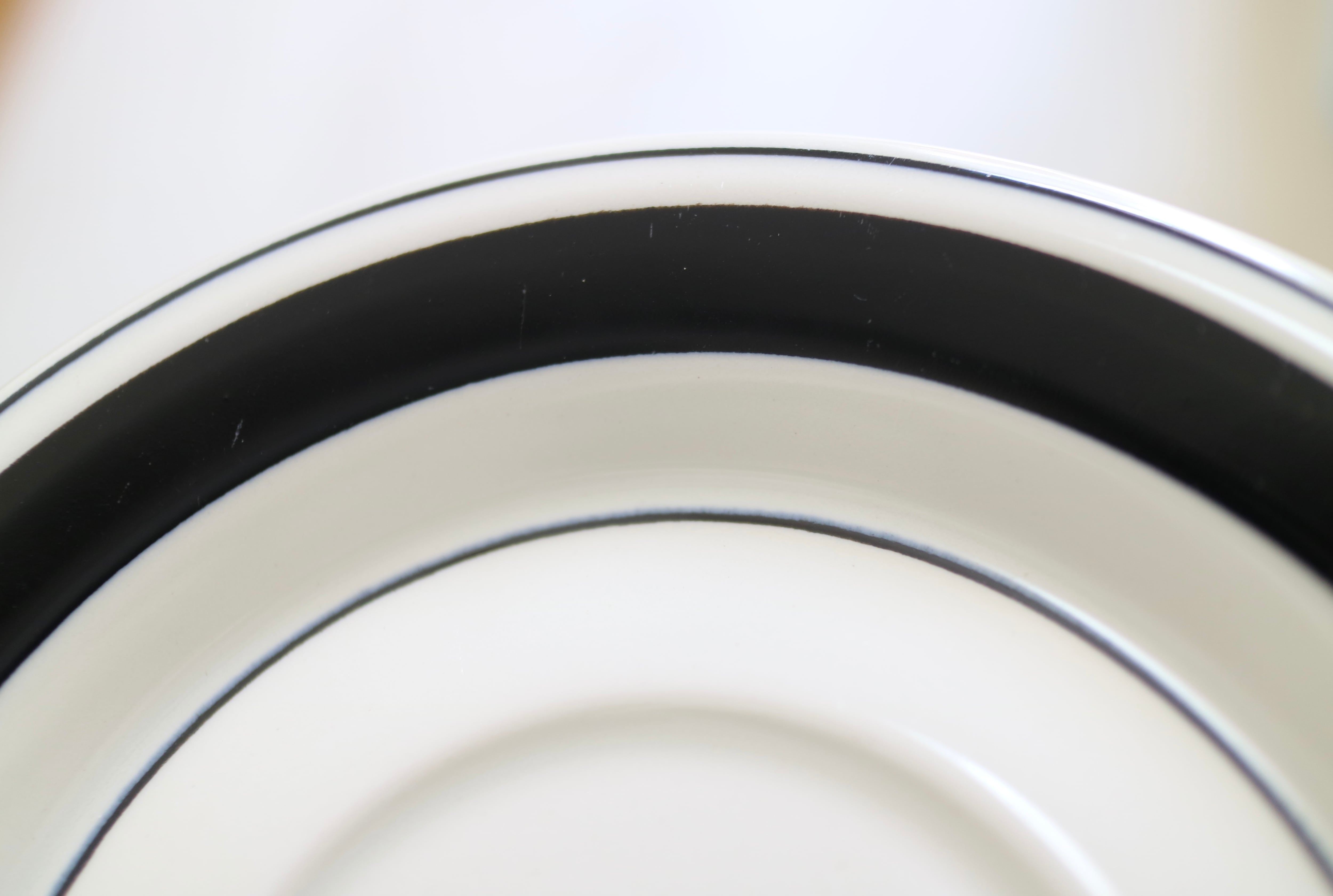 ARABIA社、Faenzaシリーズのコーヒーカップ&ソーサーです。“faenza”と言えば茶色の小花柄のものがよく知られていますが、こちらはブラックのラインが施されたシンプルなデザインのカップ&ソーサーです。