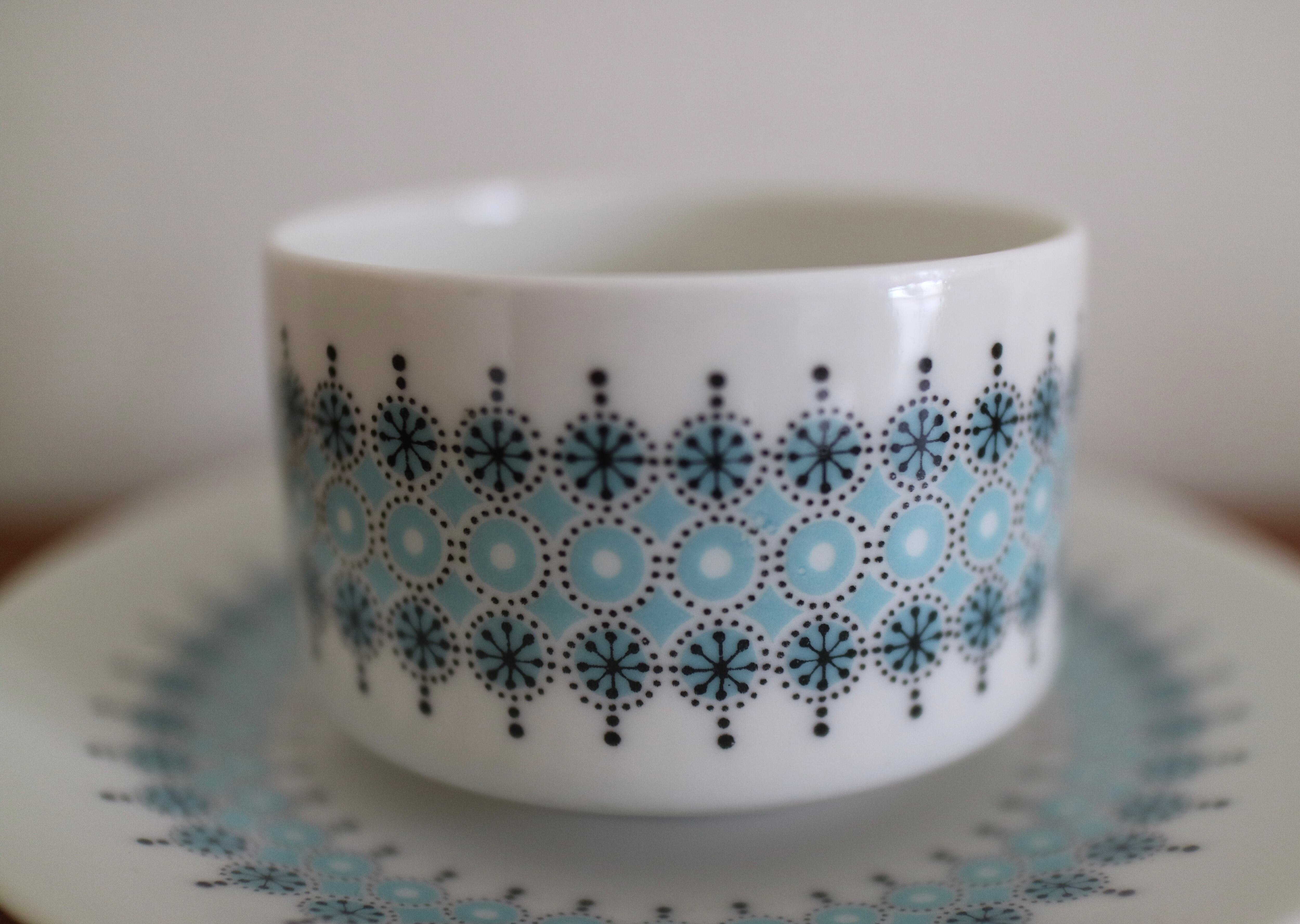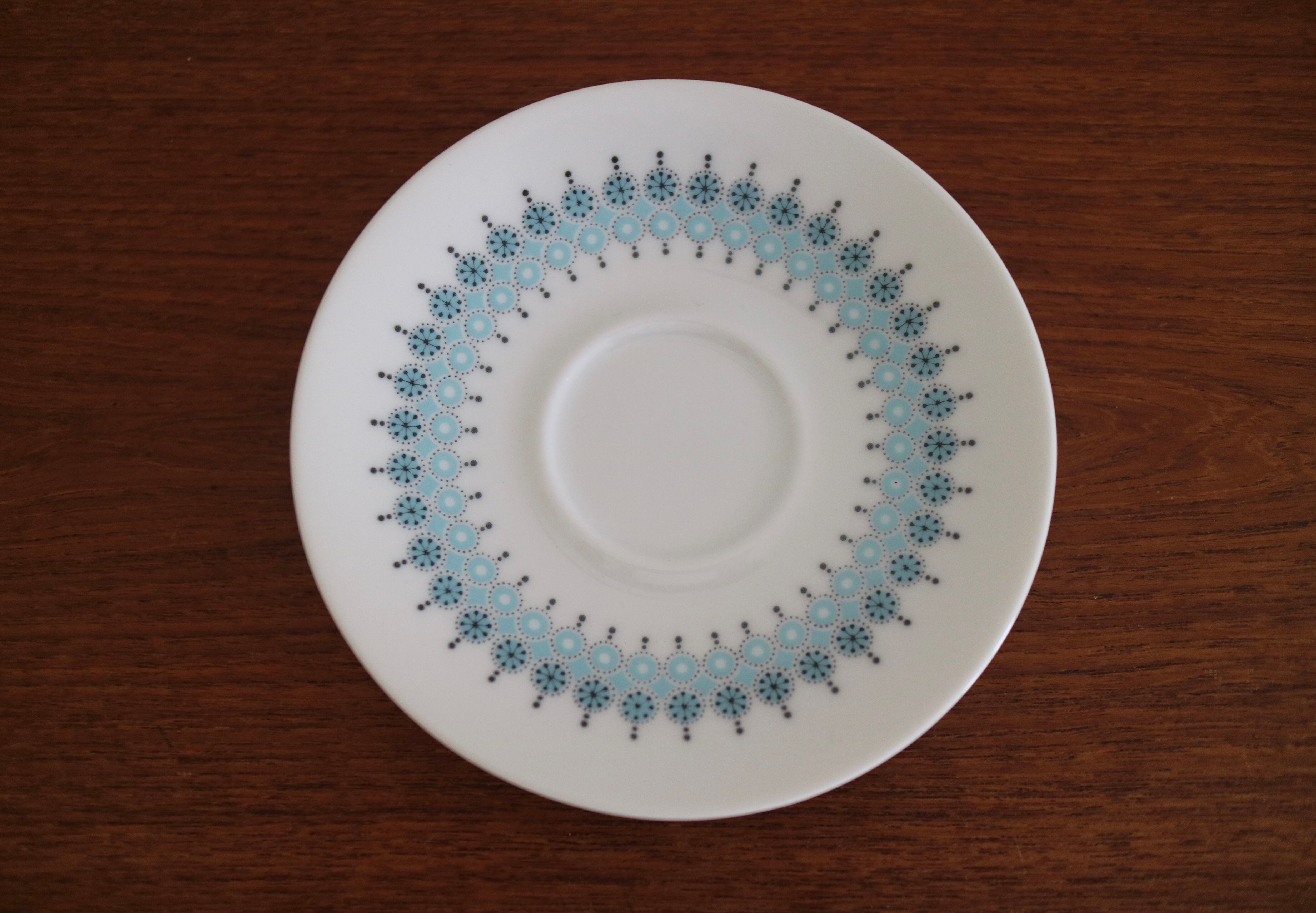 ARABIA社、Louhi(ロウヒ)シリーズのカップ&ソーサーです。デコレートデザインはRaija Uosikkinen(ライヤ・ウオシッキネン)フォルムデザインはRichard Lindh(リカルド・リンド)。結晶のようなアイスブルーの絵柄が爽やかでとても可愛らしい逸品です。