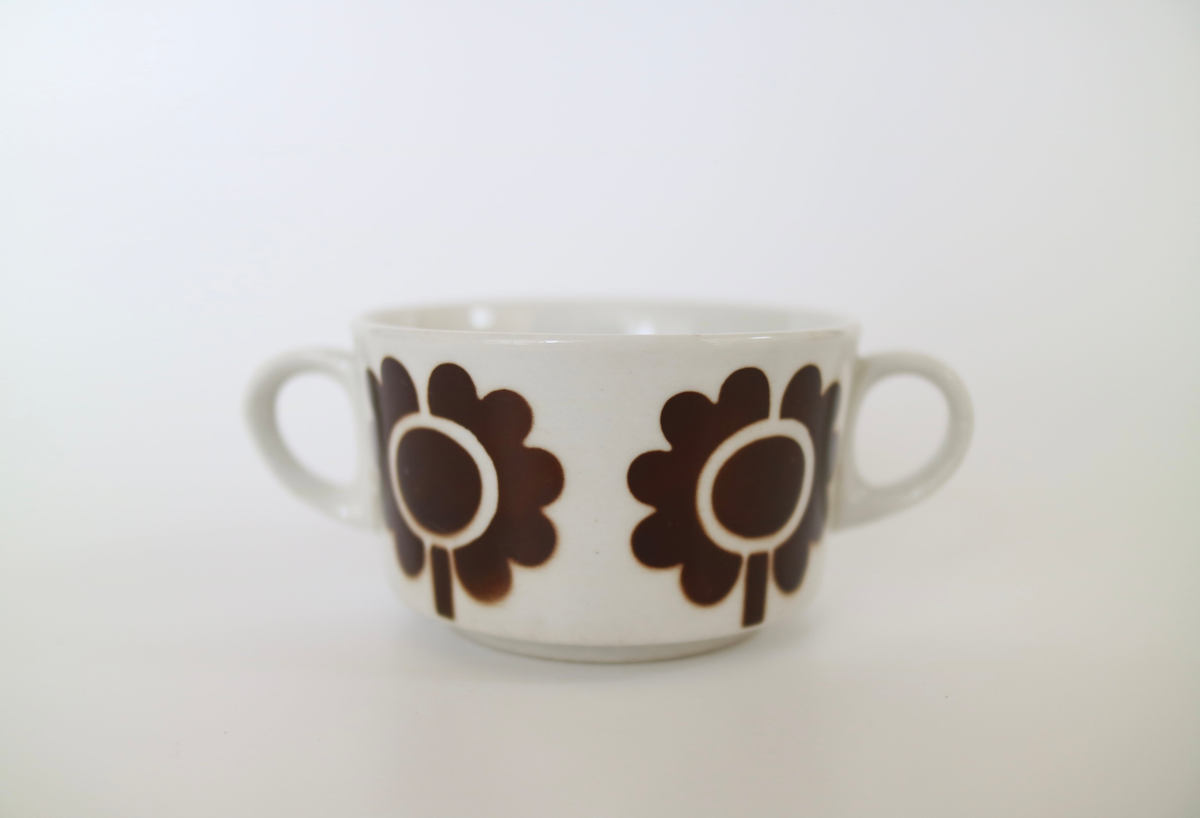 ARABIA社、ステンシルシリーズのシュガーボウルです。レトロなお花が並んだ可愛らしいデザインです。フォルムデザインはGoran Back(ゴラン•バック)が手掛けました。