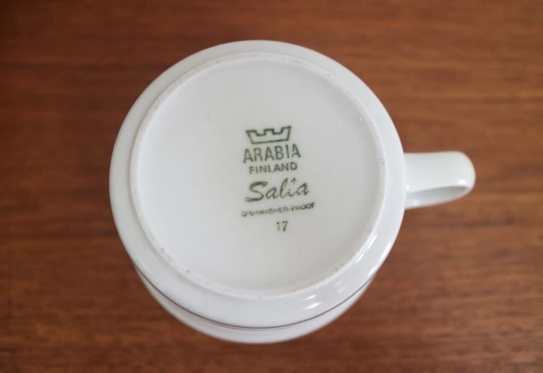 ARABIA社、Salla(サーラ)シリーズのティーカップ&ソーサーです。カップにはホワイト × グレーのラインが描かれておりシンプルですが1つ1つハンドペイントで描かれているため温かさも感じるデザインです。