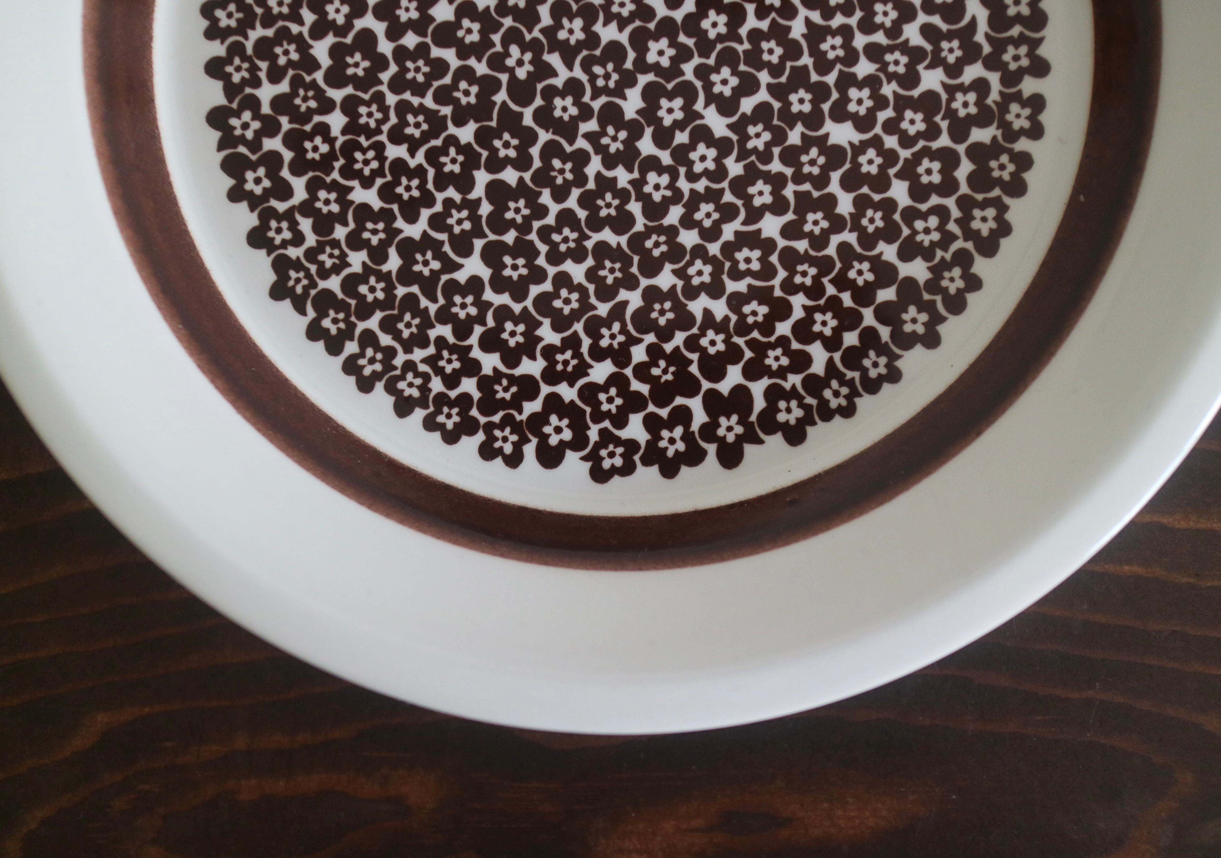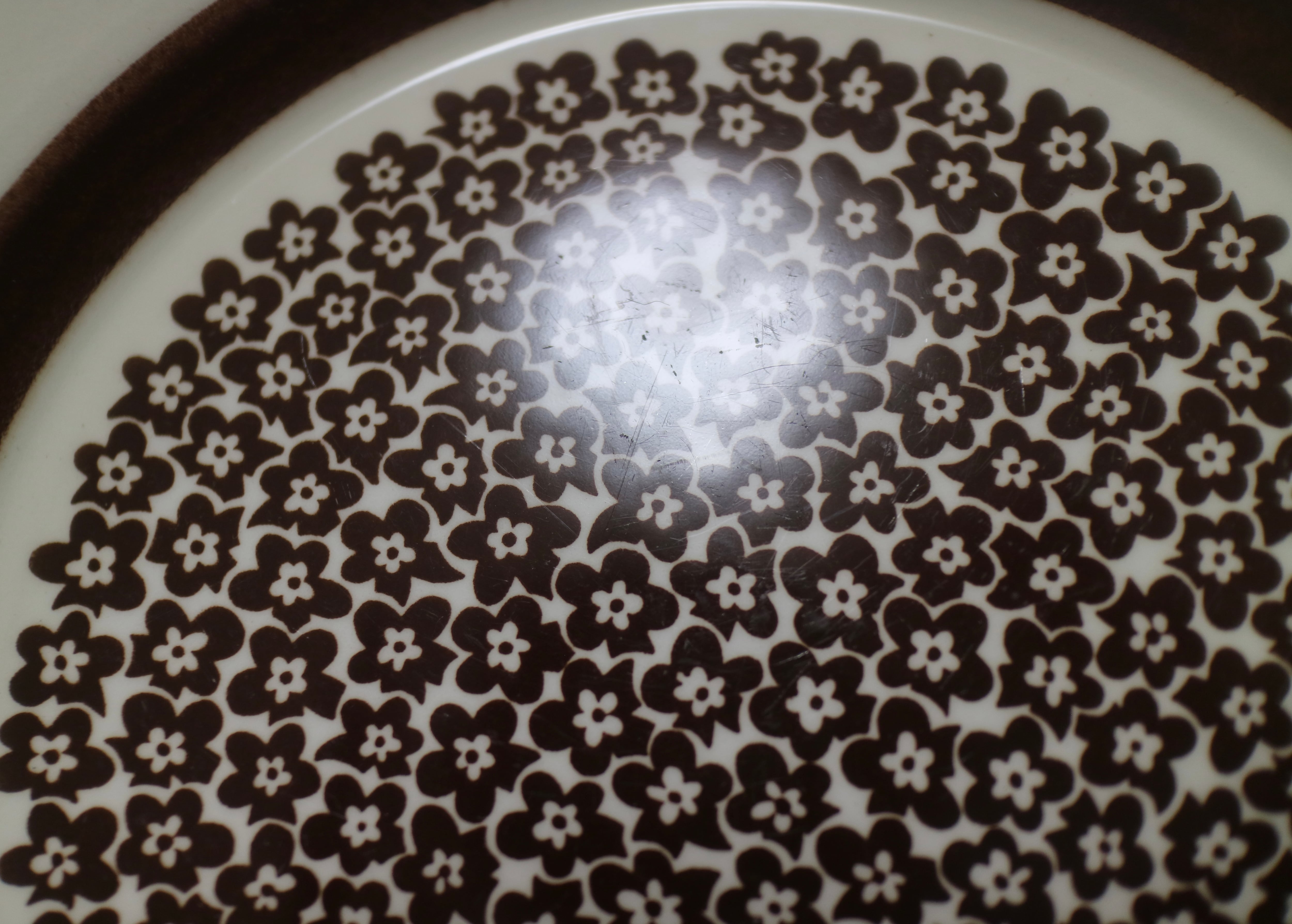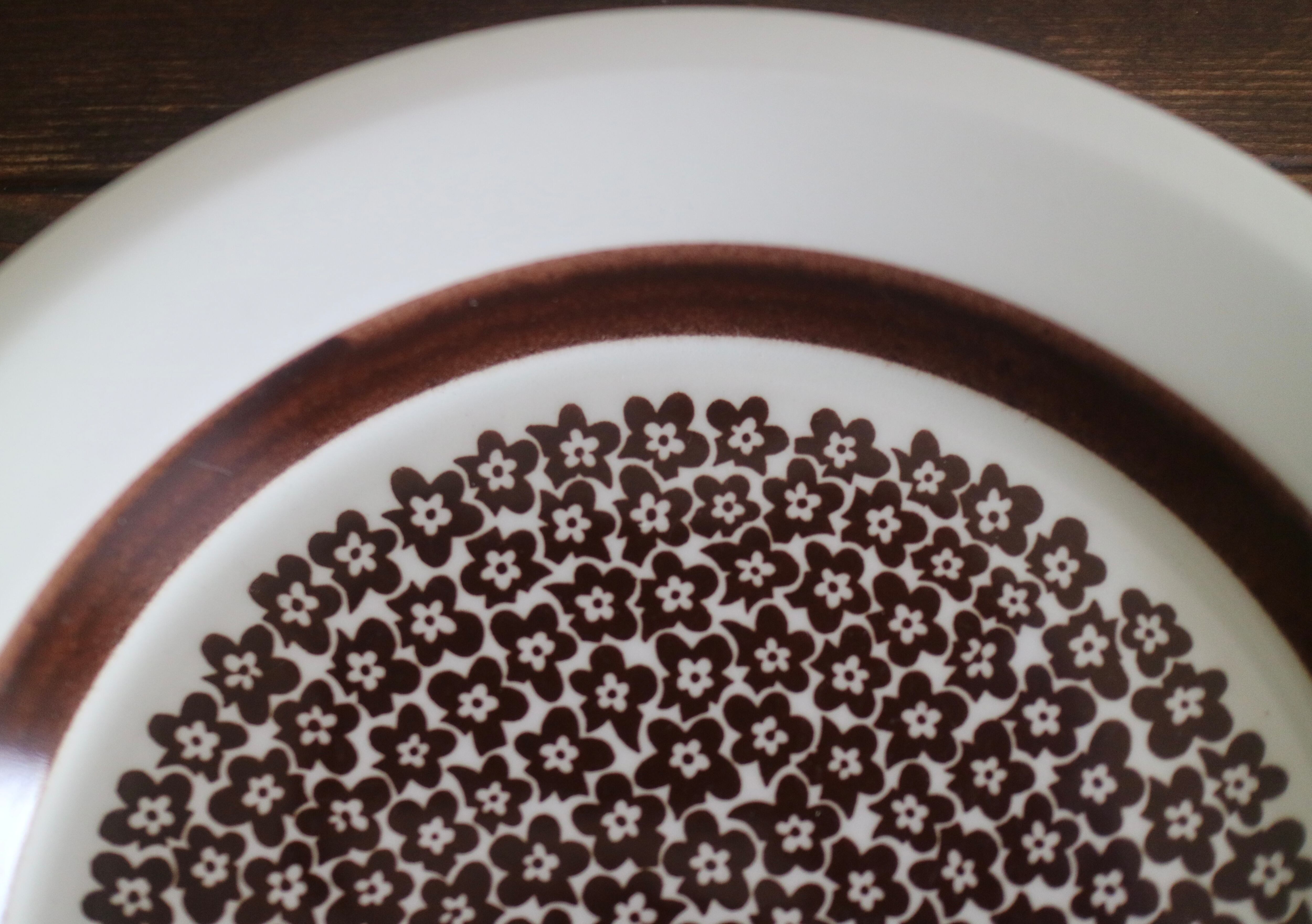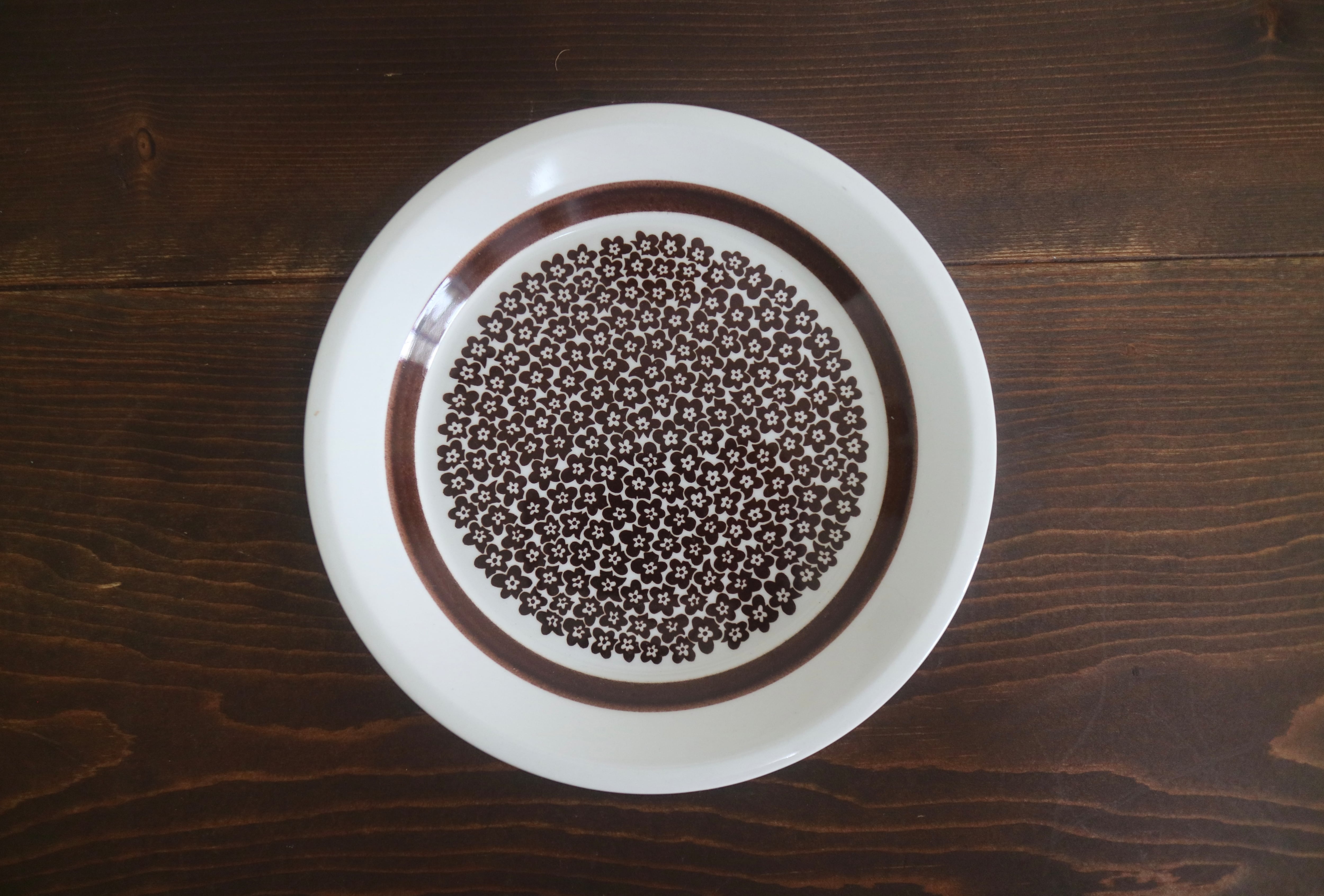 Inkeri Seppala(インケリ・セッパラ)がデコレーションデザインを手掛け、1974年から1979年に製造されました。イタリアのFaenza国際陶芸展で金賞に輝いたことから名付けられた由緒ある作品です。ブラウンの小さな小花がとても愛らしく温かみがある作品です。