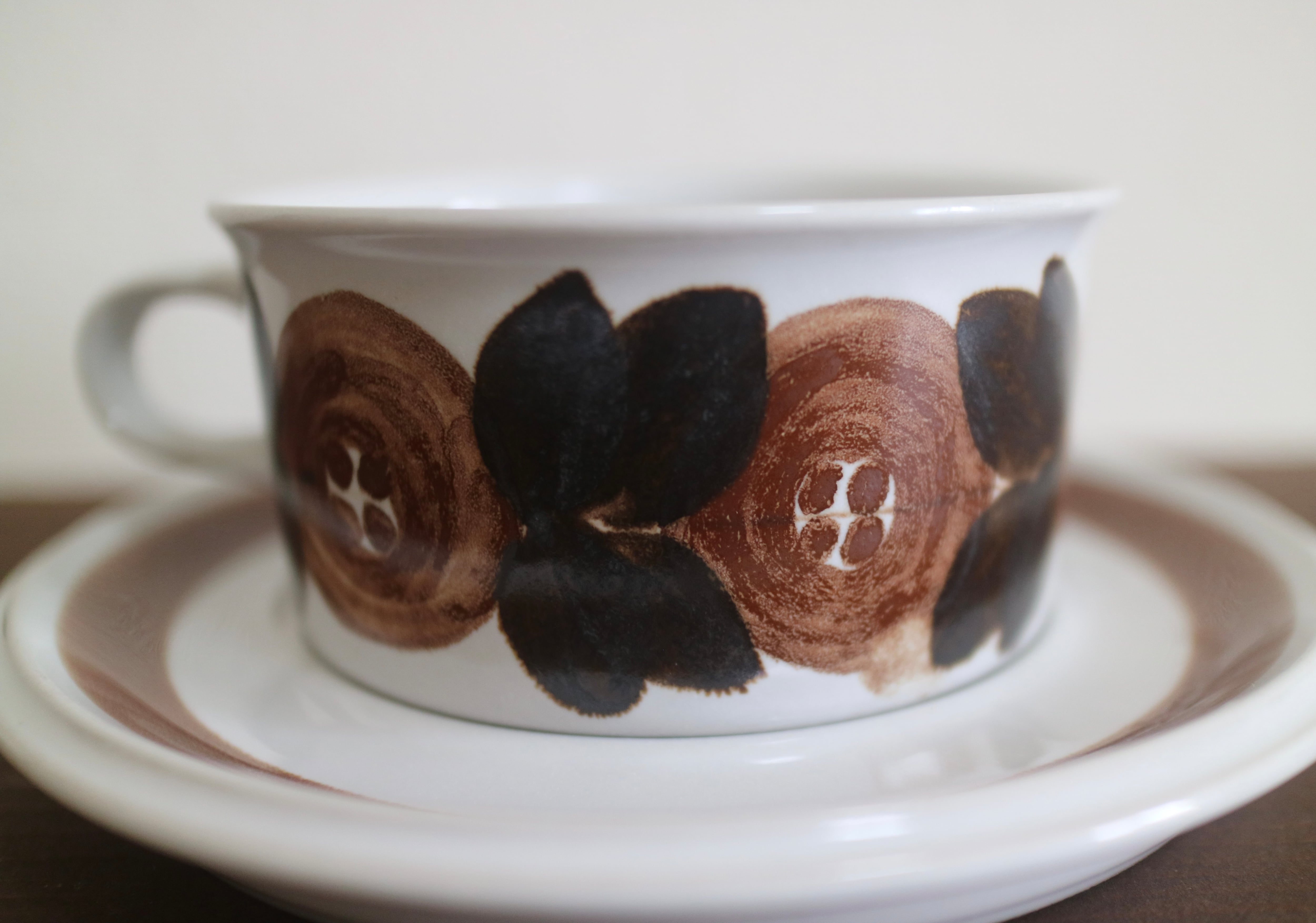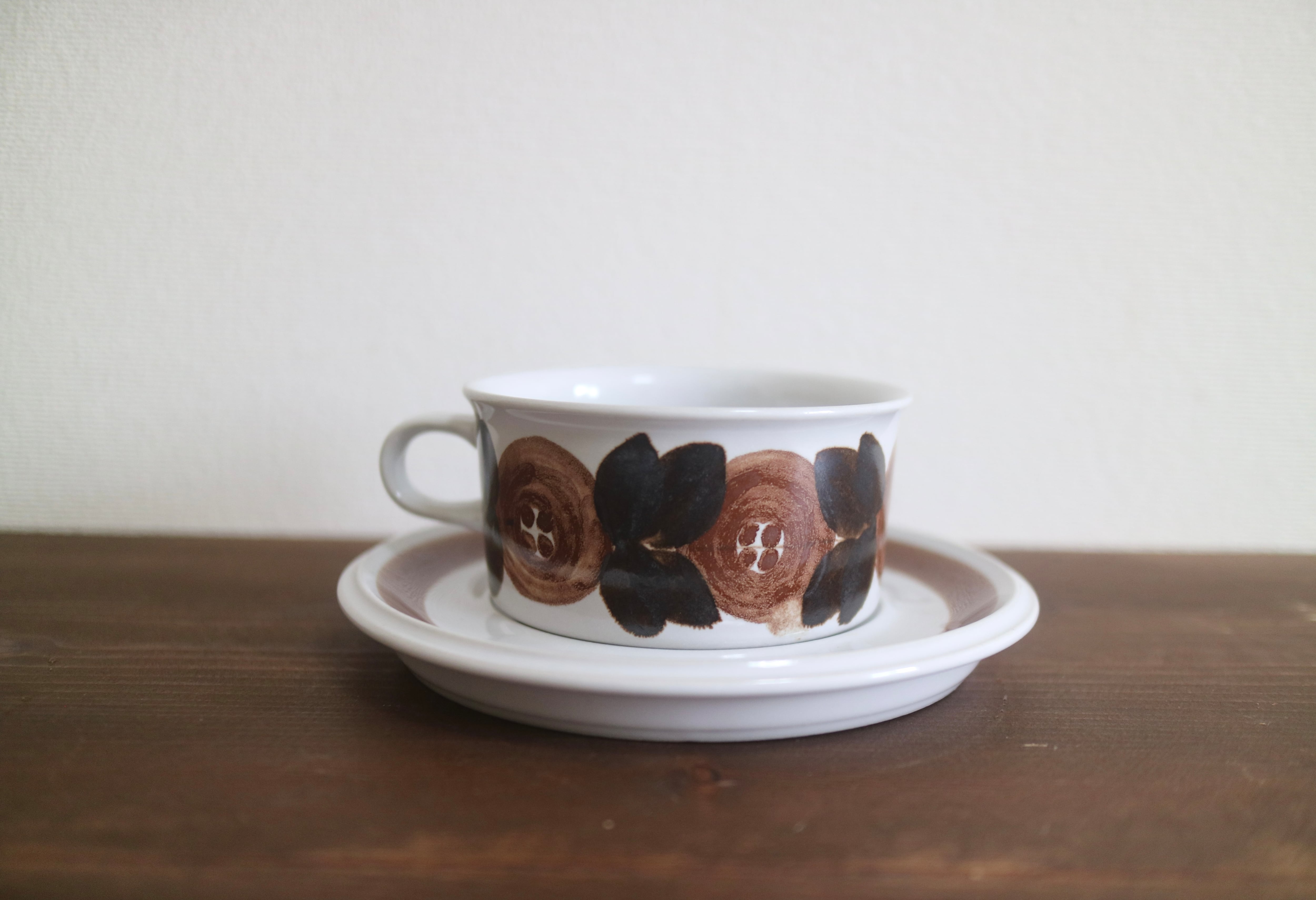 カップには茶色のお花がハンドペイントで描かれており、心温まる作品です。