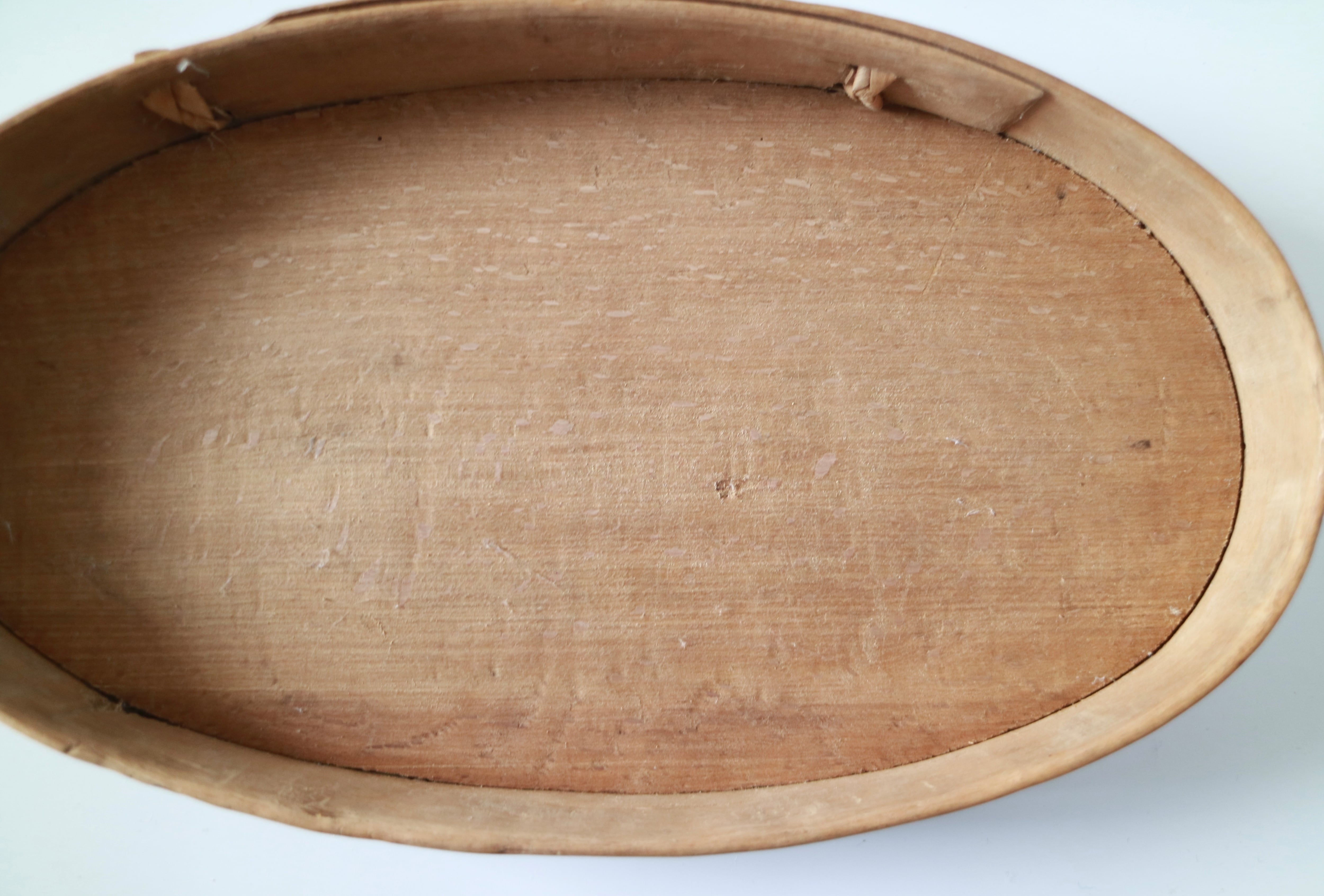 日本でいう曲げわっぱのようなもので、つなぎ目部分を、木根や蔓など使って縫い留めています。