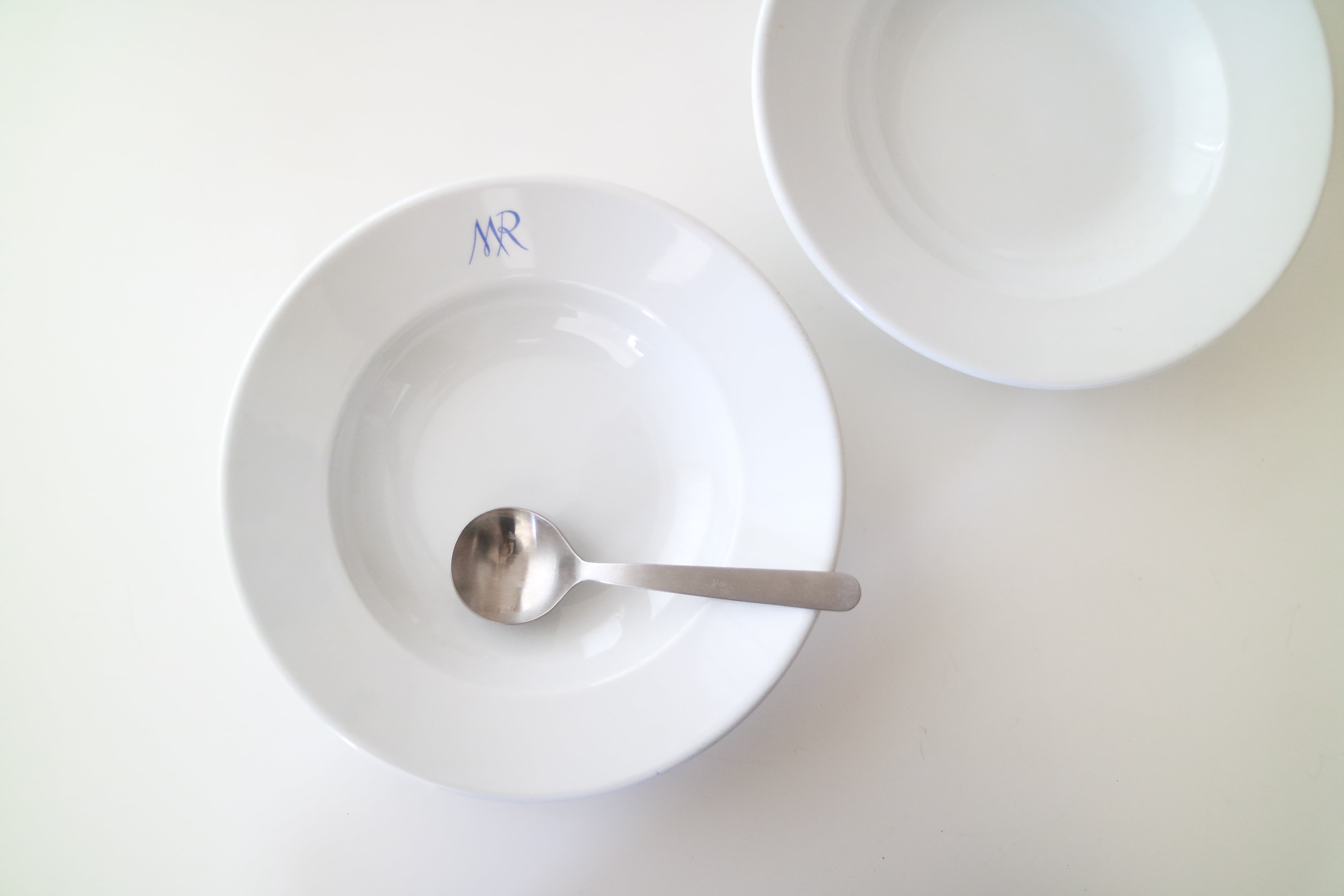 ARABIA社製、企業ロゴ「MR」がプリントされているリムプレートです。